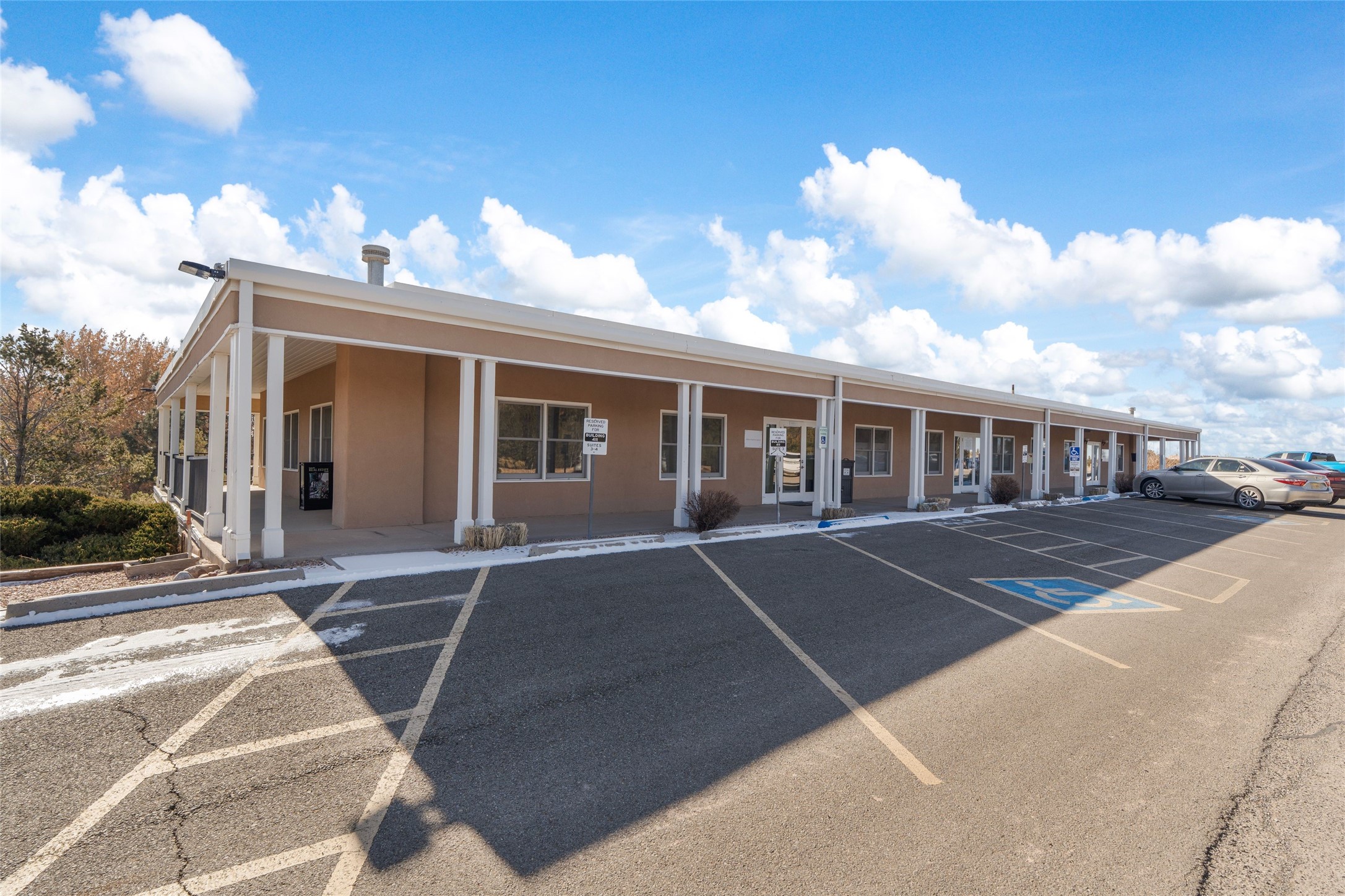 This versatile commercial office suite offers an excellent opportunity for professional, medical or general office use. The layout includes five office rooms, two bathrooms, a supply room with built in cabinetry, and a storage closet, providing plenty of functional space for a variety of business needs. Two exterior entrances offer added accessibility and flexibility. Conveniently located close to the hospital and surrounding business and medical offices, this end-unit space features beautiful mountain views from four of its five private offices and a large reception waiting area. The interior has been refreshed with new flooring throughout the office spaces and warm, calming paint tones. In addition 3 assigned parking spaces and ample overflow parking with a backdrop of the Sangre De Cristo Mountains.With its practical configuration, scenic views, and prime location, this office is ready to support your business's success.