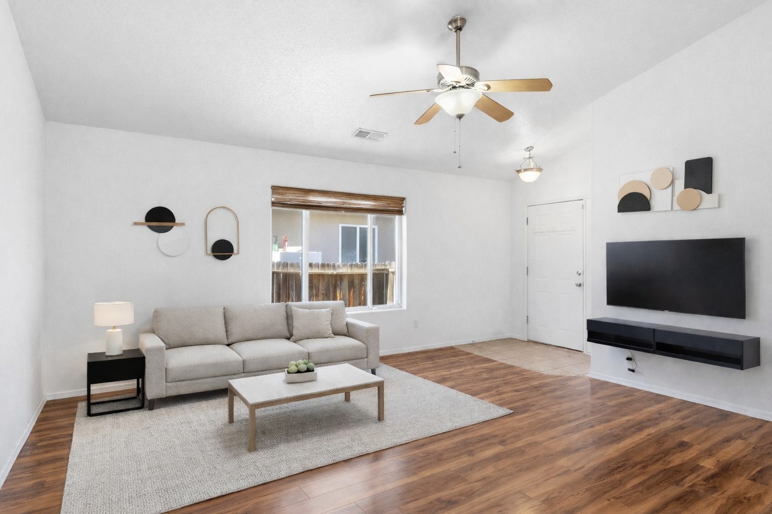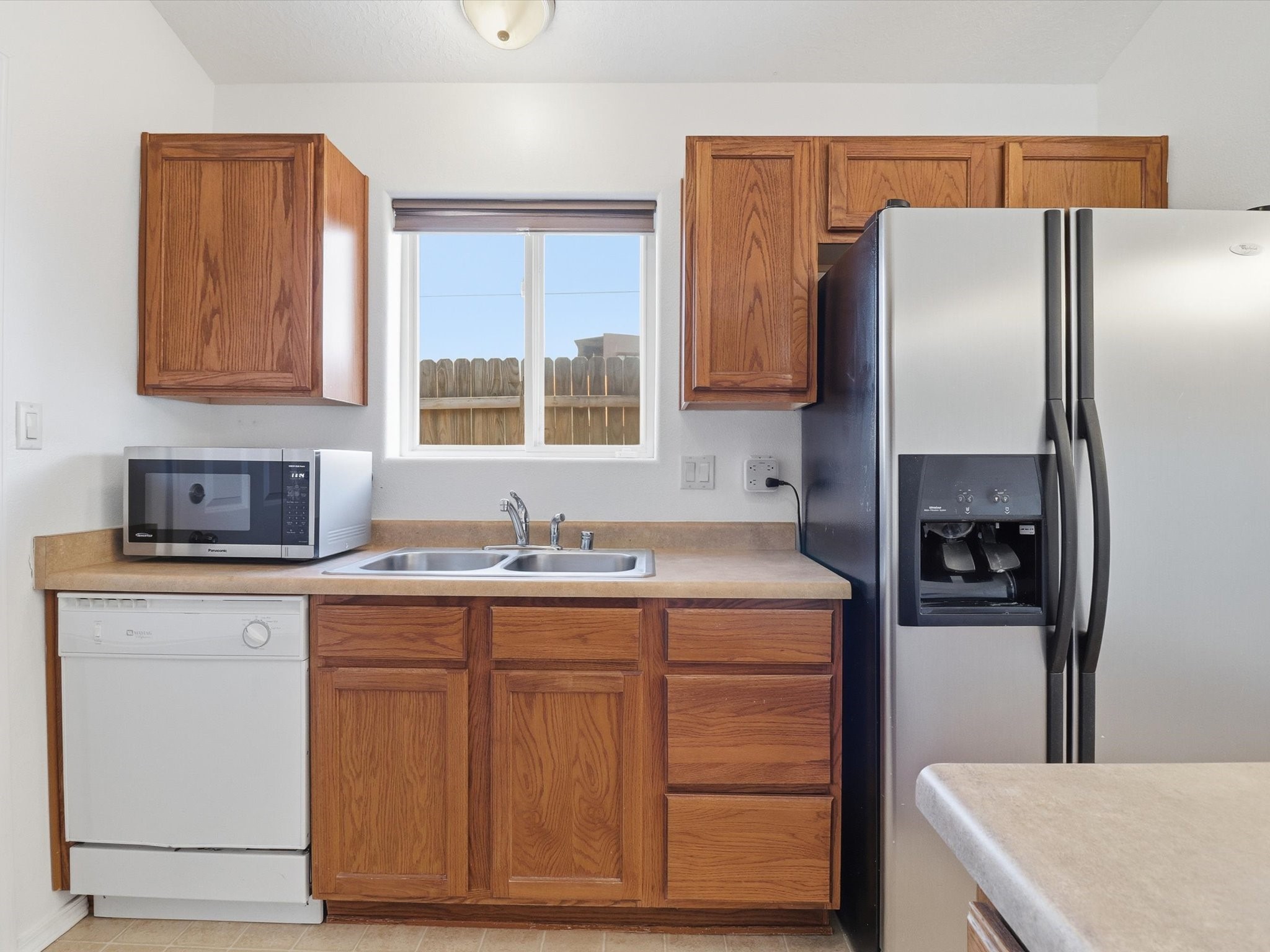 Come view this cozy three-bedroom, two-bathroom, two-car garage home! Nestled in a centrally located neighborhood, this home offers convenient access to main roads, shopping, and nearby bike trails.Step inside to a comfortable, functional layout that balances privacy and openness. The open-concept living and dining area flows seamlessly into the kitchen, which is equipped with appliances for daily use and offers direct access to the garage--perfect for convenience. The primary bedroom features a private ensuite, while the second bedroom is thoughtfully positioned across the hall for privacy. A hallway connects the bedrooms and bathroom, with easy access to the laundry area.Natural light fills the home through large windows, creating a bright, airy atmosphere. The dining area opens directly to the patio, making indoor-outdoor living effortless. Step through the patio doors to a spacious fenced backyard, ideal for relaxing, entertaining, or landscaping without heavy maintenance. Outside, the garage facade faces the road, complementing the home's welcoming, spacious exterior.This home is thoughtfully designed to create a comfortable living space for all, blending style, functionality, and convenience in a prime location. Don't miss your chance to make it yours!