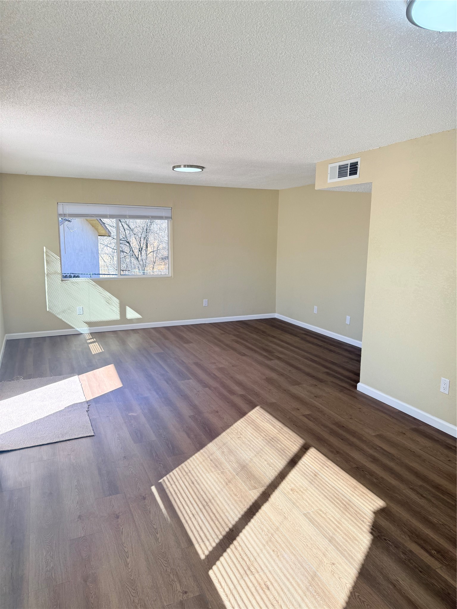 Single Story Home - 3 or 4 bedroom home, 2 baths located at end of cul-de-sac. Fenced yard with access to walking trail in rear. New paint, flooring, cabinets, solid surface countertops, carpet, fixtures. Converted garage may be used as 4th bedroom or large second living area. Refrigerated air. Stainless appliances with stackable washer/dryer located in kitchen area. Fridge will be provided. Large storage/workshop room accessed in backyard separate from home.