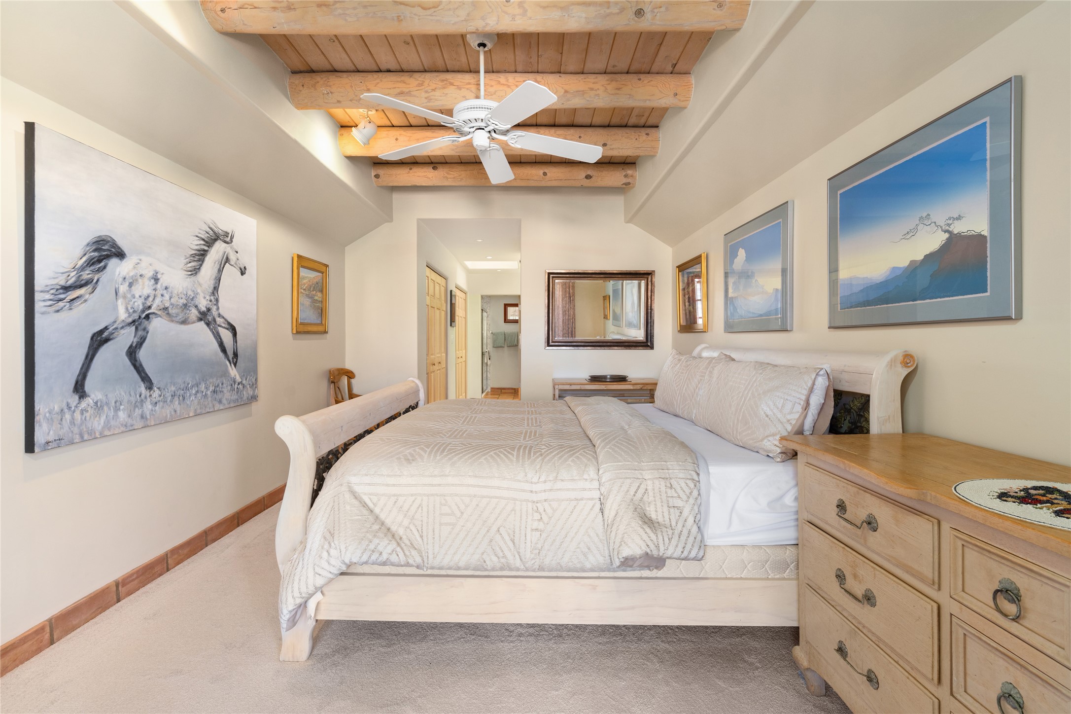 Rarely does a unit offer such a prime, "heart-of-the-community" location. Step out onto your private portal and take in the serene view of the celebrated Bear Sculpture, one of the community's most cherished landmarks. This isn't just a home; it's a front-row seat to the beauty and tranquility that define this 103-acre gated oasis.Unbeatable Proximity & Convenience Forget the long walks across the complex. From this front-door location, you are mere moments away from Quail Run's world-class amenities. Whether you are heading to a morning session at the state-of-the-art fitness center, a refreshing dip in the 65-foot indoor ozone-purified pool, or a fast-paced game on the tennis and pickleball courts, everything is right at your fingertips.Southwestern Elegance Meets Modern Comfort Inside, the home radiates warmth and light. The thoughtfully designed floor plan offers an ideal separation of bedrooms, providing maximum privacy for you and your guests. High ceilings, classic Santa Fe architectural details, and large windows create an inviting atmosphere that is both grand and cozy.PGA-Rated Golf: A challenging 9-hole course just steps away.Clubhouse Dining: Enjoy gourmet Southwestern fare at the on-site Bar & Grill.Low Maintenance: Lock-and-leave convenience just minutes from the Historic Santa Fe Plaza.