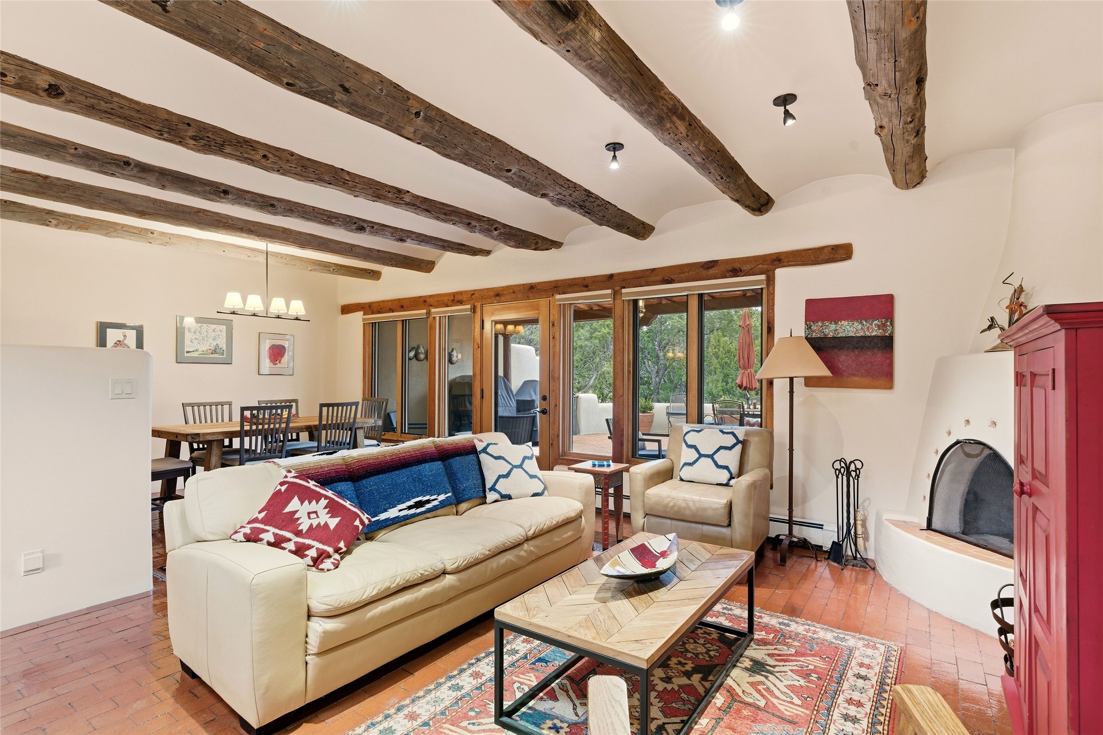 Nestled on a quiet cul-de-sac in Santa fe's coveted North side, minutes to the plaza, lies this beautifully updated compound located on 1.56 acres. Full of Santa Fe charm - including 5 fireplaces, vigas and latillas, the main residence features 2 bedrooms and 2.5 bathrooms, complemented by a very private and separate 1-bedroom, 1-bath casita--ideal for guests or rental income. A spacious attached two-car garage is supplemented by an additional detached and heated two-car garage, currently utilized as a studio/gym (not included in the square footage).The home was substantially remodeled in 2013 including a new roof, most windows, an additional car bay, a redesigned kitchen, and has been impeccably maintained. More recent improvements include a new gas water heater (2022), new boiler (2022), new double oven range (2025), and new washer and dryer (2025). This special property is not to be missed!!