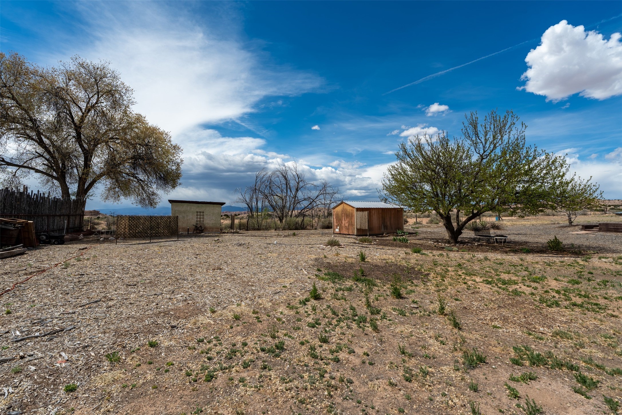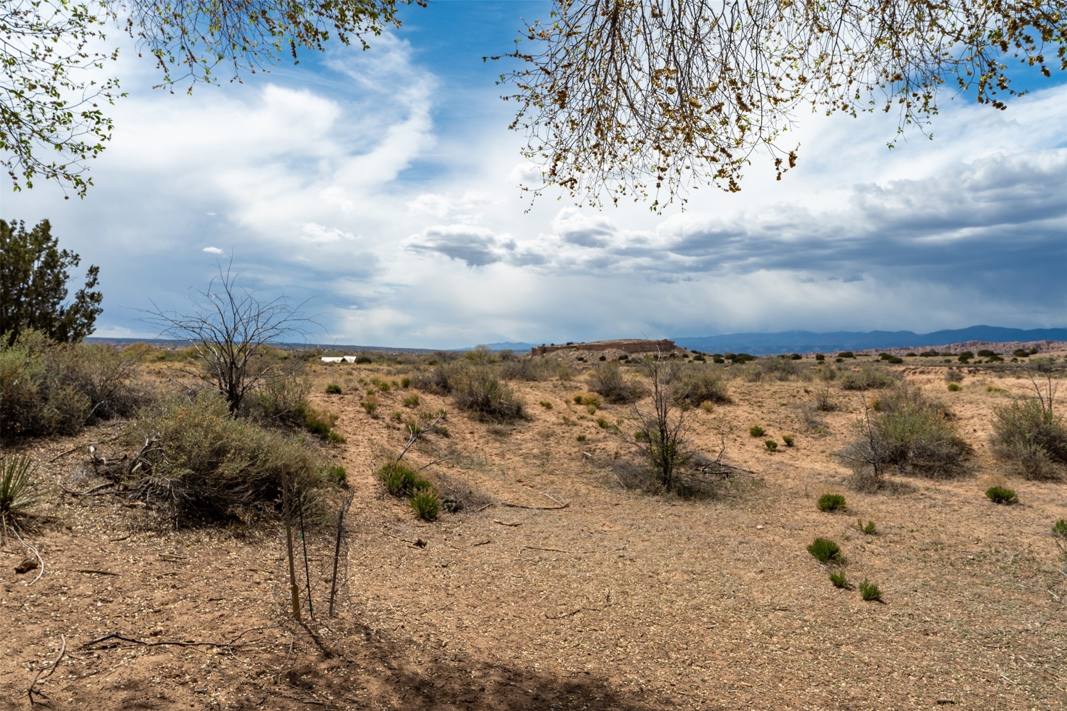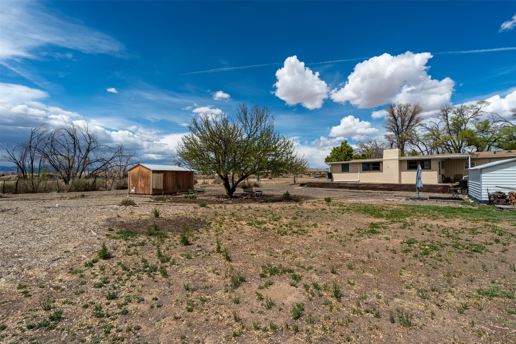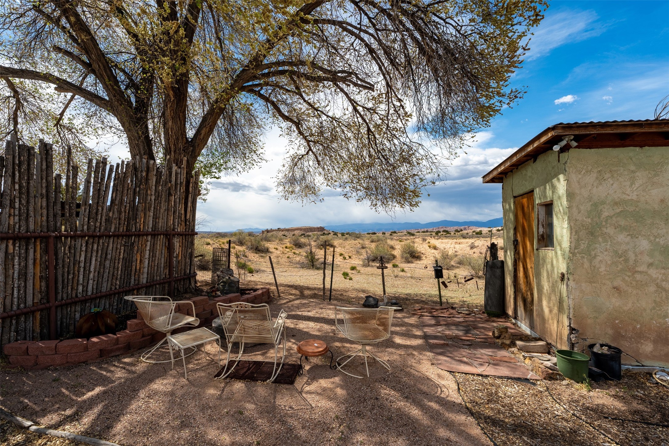 Set on 1+ acres in Namb, 1 Calle Andreita opens to a wide horizon--Pueblo lands stretching out to the West, the Jemez Mountains rising in the distance, and the Sangre de Cristo Mountains to the East, catching the evening light as the sun sets. It's a tranquil setting that feels quiet and grounded, with a daily rhythm shaped by sky, high desert vistas, and the occasional visit from horses at the fence line, drawn in by water, snacks, or human companionship.The property is configured as a duplex, totaling approximately 1,750 square feet, offering flexibility for a range of uses. The main residence, approximately 960sq/ft, includes three bedrooms and two bathrooms. A fully screened, private portal faces north--an easy place to settle in with a book, share a meal, or take in the surrounding landscape while protected from the heat of the afternoon sun. The attached guest house, approximately 790sq/ft, provides two additional bedrooms and a full bathroom, with its own portal oriented toward the Sangre de Cristos, with morning light and open views.Both living spaces have been updated with refreshed kitchens and bathrooms, and each includes its own washer and dryer. The land itself offers room to expand into outdoor living--gardens, gathering spaces, or simply open ground to enjoy as-is. A quiet corner of the property, bordering Pojoaque Pueblo land with outstanding views, is the perfect spot for a morning coffee, an evening cocktail, or a blissful meditation. Mature trees, including apple, apricot, and peach, add texture and seasonal color, while surface irrigation rights and a private well support long-term stewardship of the land.Additional improvements include three storage sheds and a double carport with extra storage. Despite the quiet, unhurried rhythm of life in Namb, the location remains practical--roughly 25 minutes to the Santa Fe Plaza and under 30 minutes to Los Alamos and the National Laboratory.