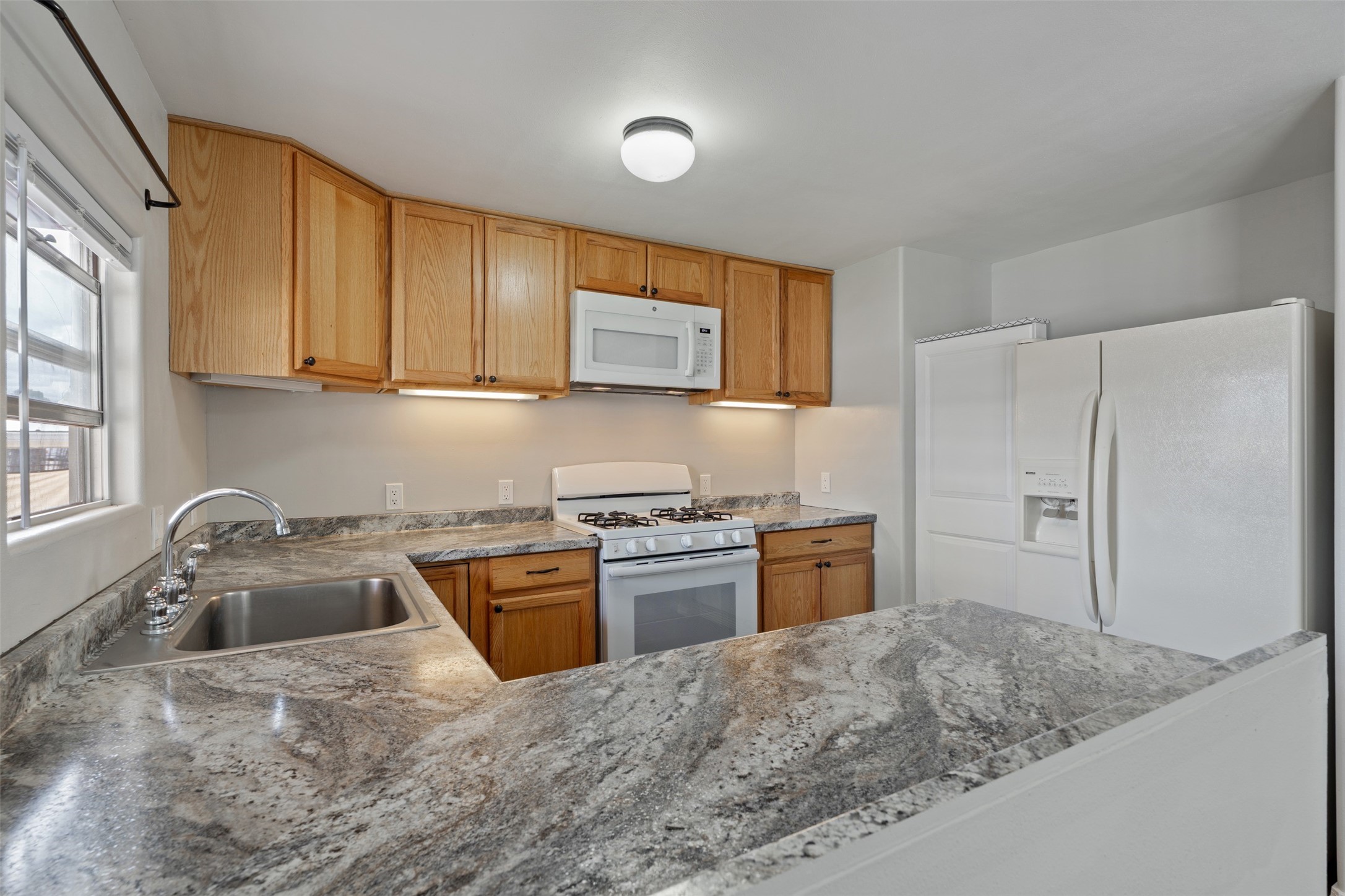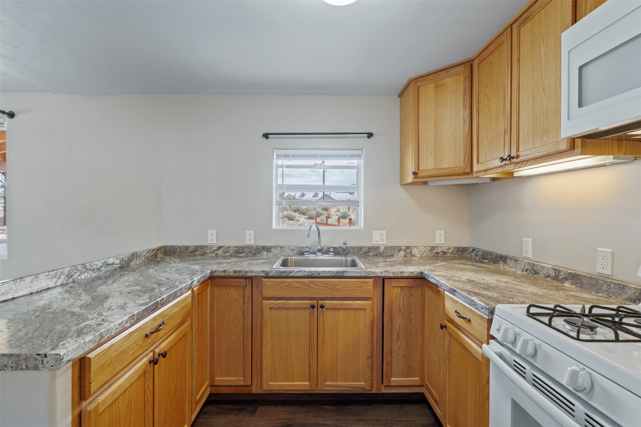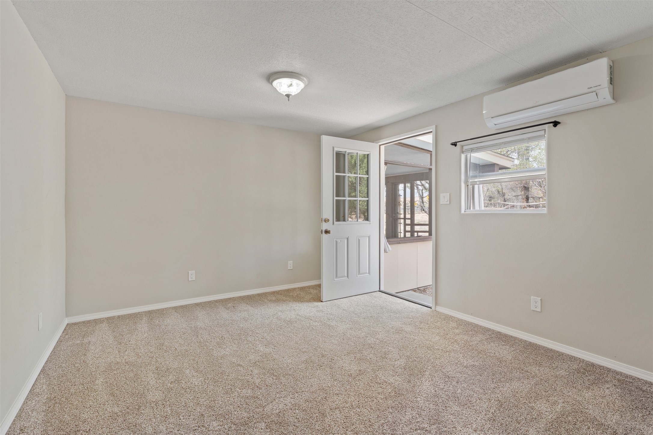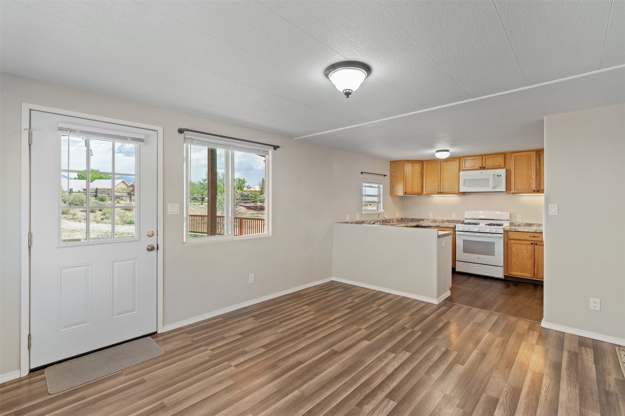 Set on 1+ acres in Namb, 1 Calle Andreita opens to a wide horizon--Pueblo lands stretching out to the West, the Jemez Mountains rising in the distance, and the Sangre de Cristo Mountains to the East, catching the evening light as the sun sets. It's a tranquil setting that feels quiet and grounded, with a daily rhythm shaped by sky, high desert vistas, and the occasional visit from horses at the fence line, drawn in by water, snacks, or human companionship.The property is configured as a duplex, totaling approximately 1,750 square feet, offering flexibility for a range of uses. The main residence, approximately 960sq/ft, includes three bedrooms and two bathrooms. A fully screened, private portal faces north--an easy place to settle in with a book, share a meal, or take in the surrounding landscape while protected from the heat of the afternoon sun. The attached guest house, approximately 790sq/ft, provides two additional bedrooms and a full bathroom, with its own portal oriented toward the Sangre de Cristos, with morning light and open views.Both living spaces have been updated with refreshed kitchens and bathrooms, and each includes its own washer and dryer. The land itself offers room to expand into outdoor living--gardens, gathering spaces, or simply open ground to enjoy as-is. A quiet corner of the property, bordering Pojoaque Pueblo land with outstanding views, is the perfect spot for a morning coffee, an evening cocktail, or a blissful meditation. Mature trees, including apple, apricot, and peach, add texture and seasonal color, while surface irrigation rights and a private well support long-term stewardship of the land.Additional improvements include three storage sheds and a double carport with extra storage. Despite the quiet, unhurried rhythm of life in Namb, the location remains practical--roughly 25 minutes to the Santa Fe Plaza and under 30 minutes to Los Alamos and the National Laboratory.