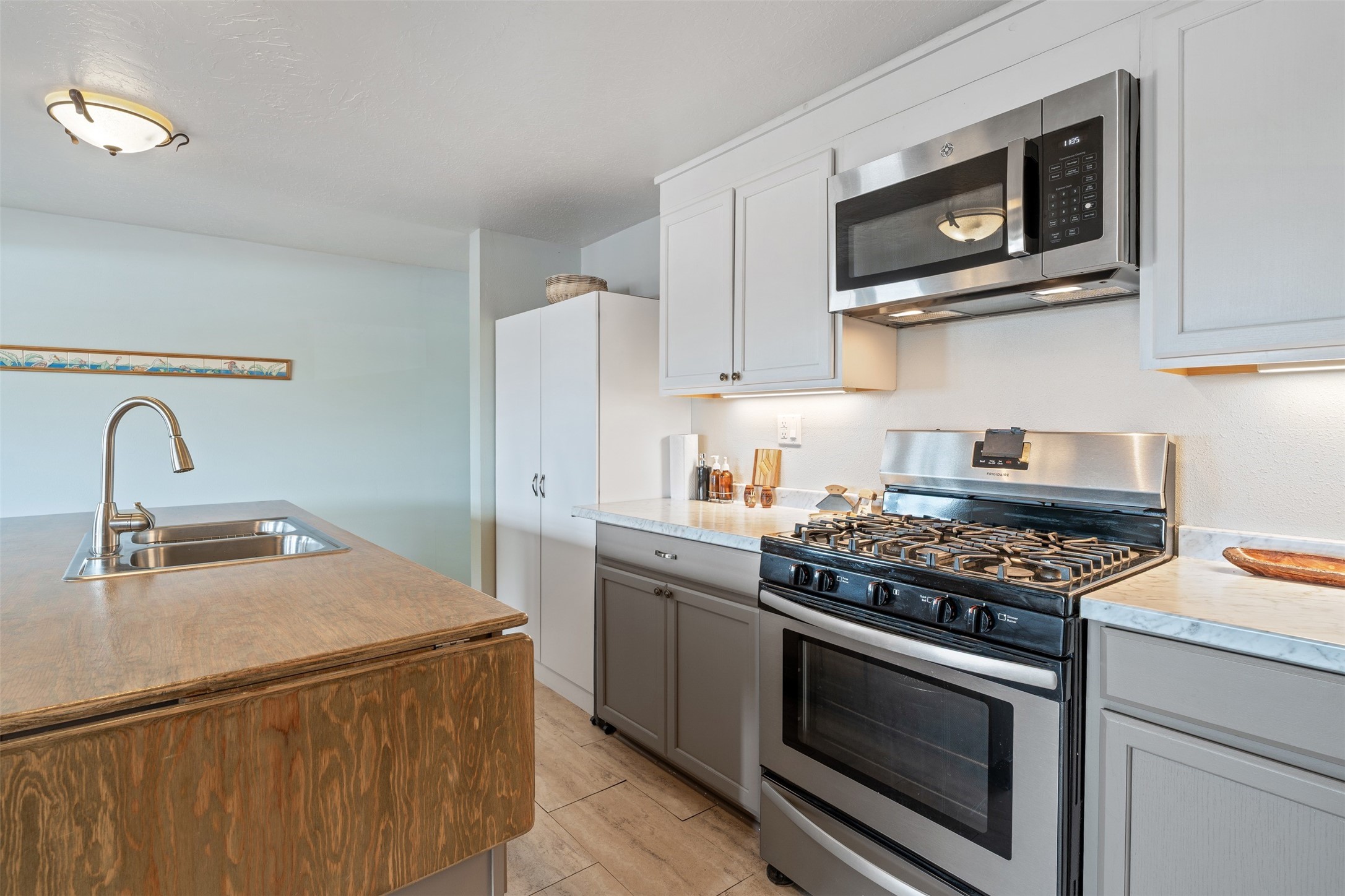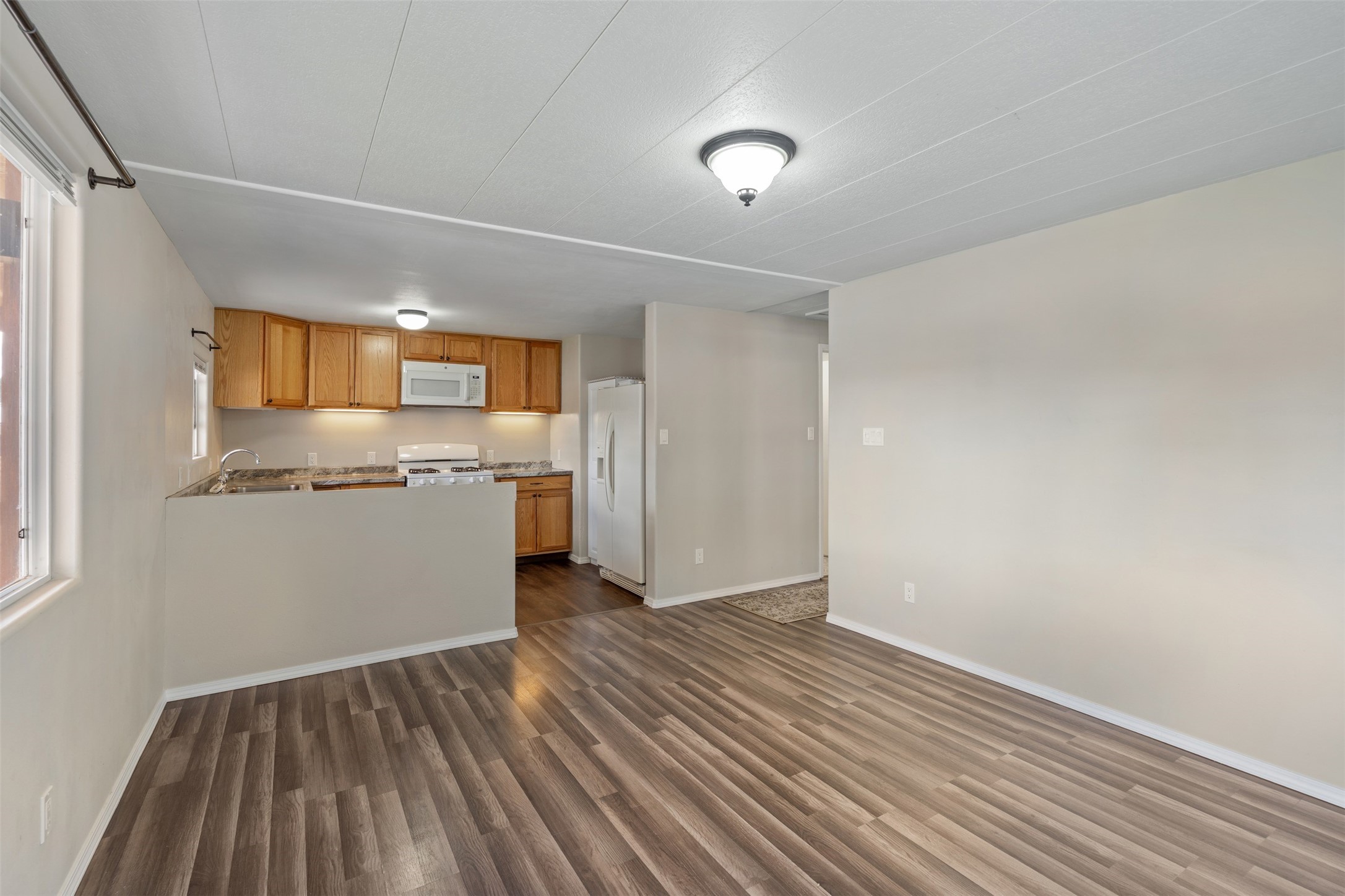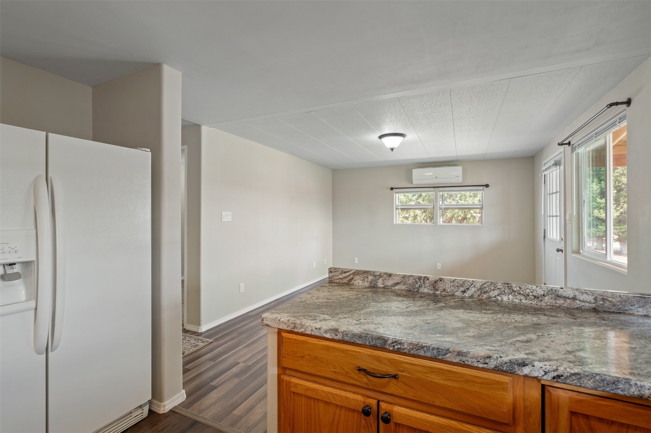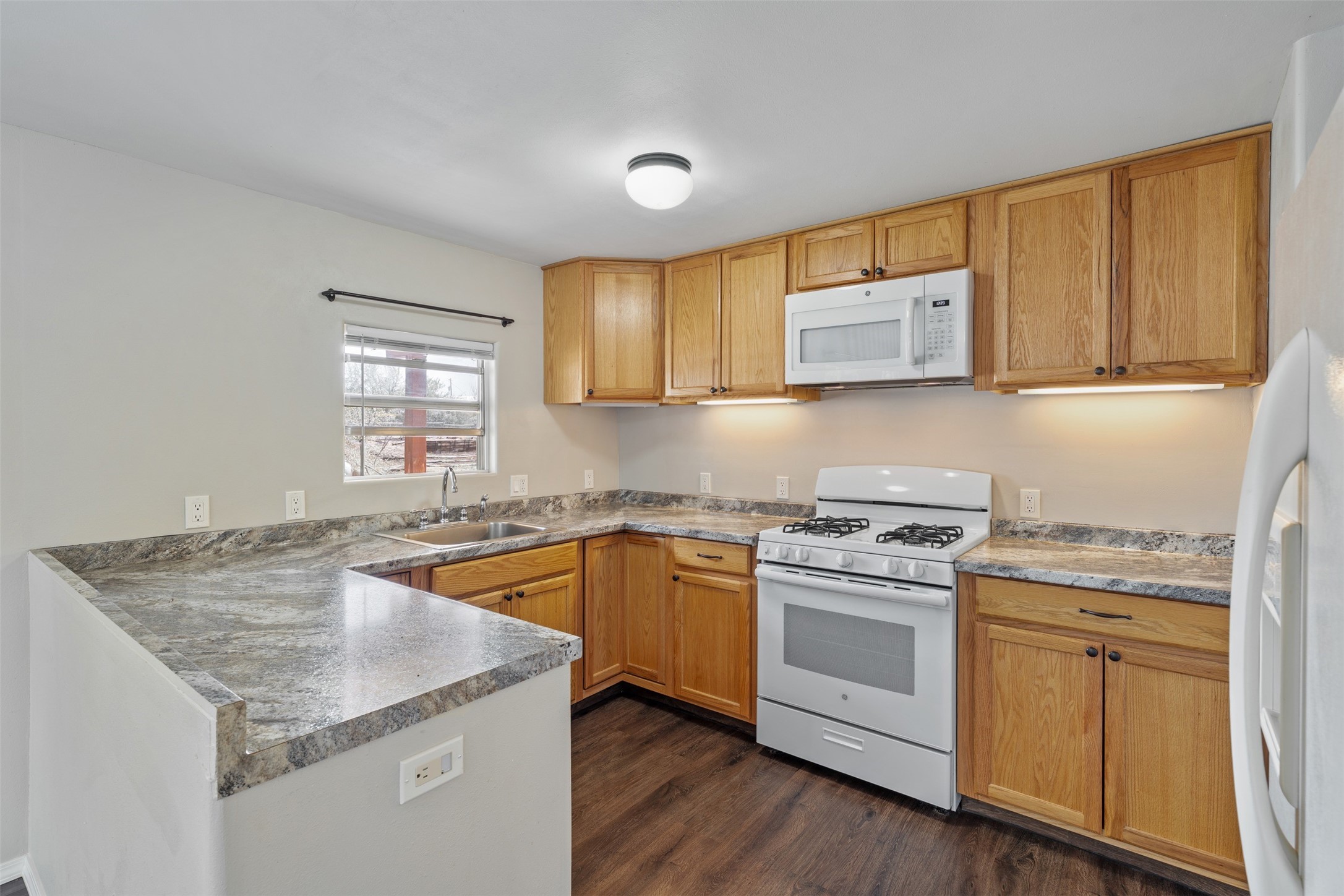 Set on 1+ acres in Namb, 1 Calle Andreita opens to a wide horizon--Pueblo lands stretching out to the West, the Jemez Mountains rising in the distance, and the Sangre de Cristo Mountains to the East, catching the evening light as the sun sets. It's a tranquil setting that feels quiet and grounded, with a daily rhythm shaped by sky, high desert vistas, and the occasional visit from horses at the fence line, drawn in by water, snacks, or human companionship.The property is configured as a duplex, totaling approximately 1,750 square feet, offering flexibility for a range of uses. The main residence, approximately 960sq/ft, includes three bedrooms and two bathrooms. A fully screened, private portal faces north--an easy place to settle in with a book, share a meal, or take in the surrounding landscape while protected from the heat of the afternoon sun. The attached guest house, approximately 790sq/ft, provides two additional bedrooms and a full bathroom, with its own portal oriented toward the Sangre de Cristos, with morning light and open views.Both living spaces have been updated with refreshed kitchens and bathrooms, and each includes its own washer and dryer. The land itself offers room to expand into outdoor living--gardens, gathering spaces, or simply open ground to enjoy as-is. A quiet corner of the property, bordering Pojoaque Pueblo land with outstanding views, is the perfect spot for a morning coffee, an evening cocktail, or a blissful meditation. Mature trees, including apple, apricot, and peach, add texture and seasonal color, while surface irrigation rights and a private well support long-term stewardship of the land.Additional improvements include three storage sheds and a double carport with extra storage. Despite the quiet, unhurried rhythm of life in Namb, the location remains practical--roughly 25 minutes to the Santa Fe Plaza and under 30 minutes to Los Alamos and the National Laboratory.