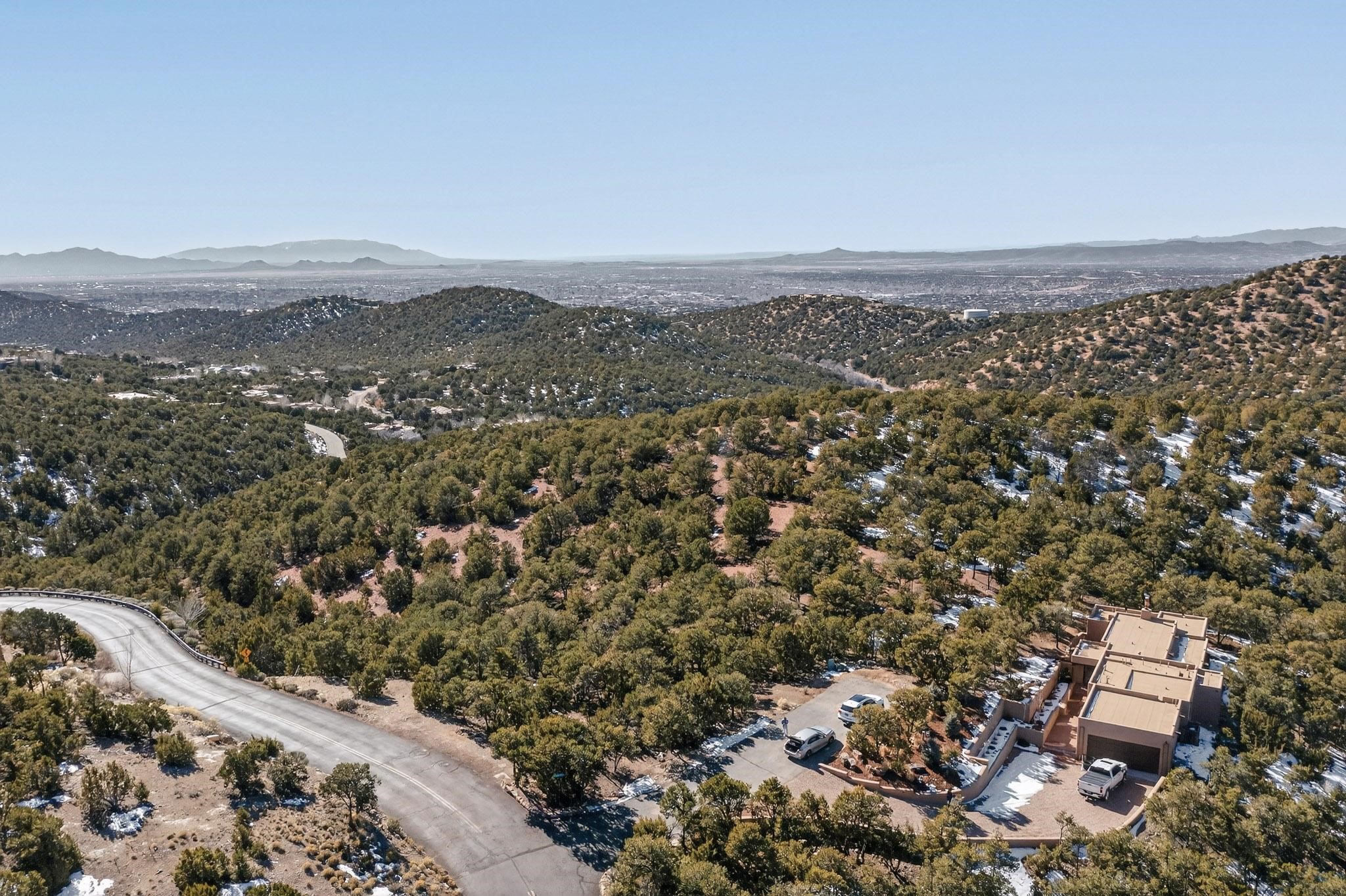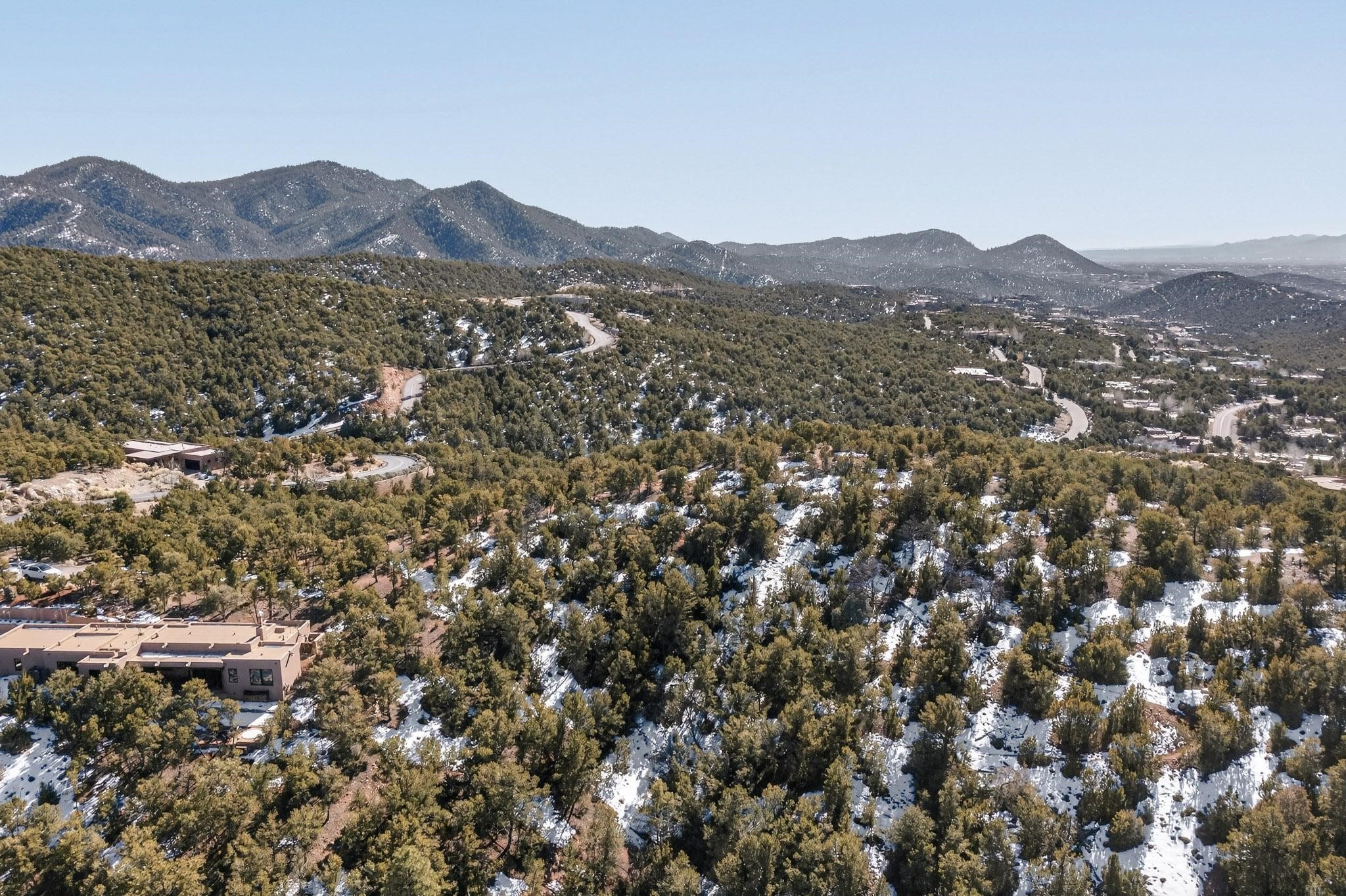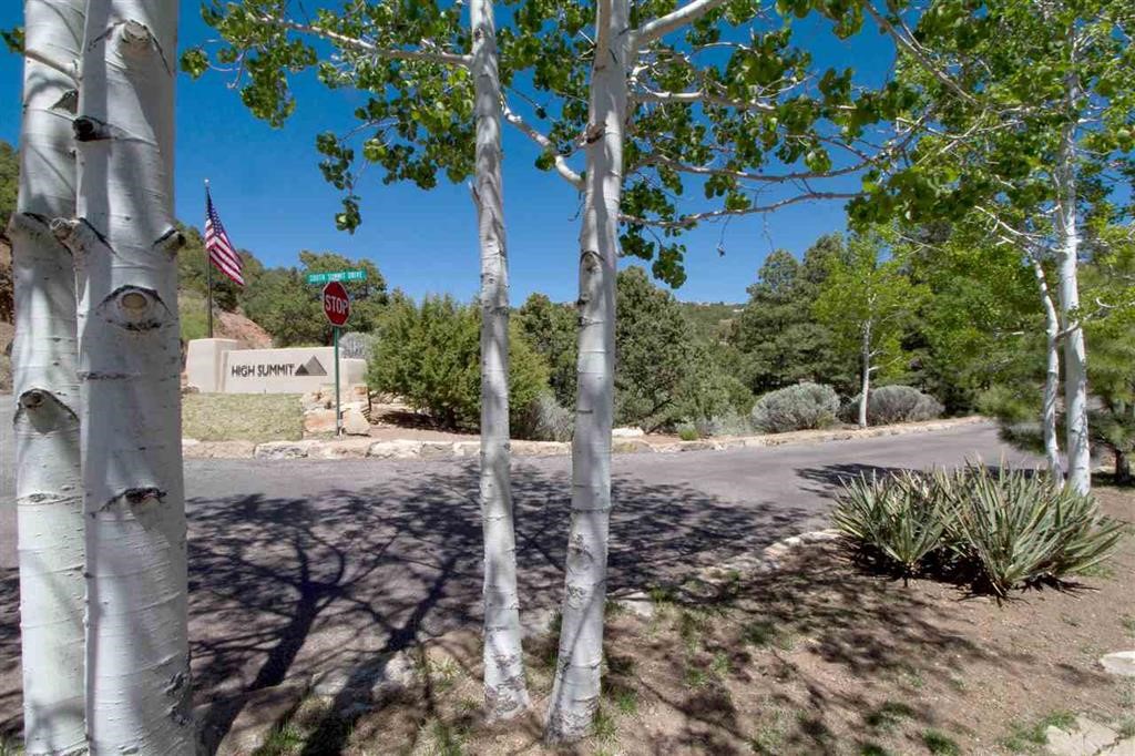 Solitude reigns at the High Summit. This premier .99-acre hilltop lot sits at the end of a quiet cul-de-sac within a gated enclave of distinctive homes. The heavily wooded property offers paved access, underground utilities, and city water; modern conveniences woven into a timeless natural setting. Just four miles from Santa Fe's historic Plaza, twelve miles from the Ski Basin, and minutes from Ten Thousand Waves, the location balances peaceful seclusion with exceptional proximity. The level homesite borders the Dale Ball Trail, providing direct access to hiking, biking, and moments of quiet communion with nature. This remarkable parcel is best experienced in person to fully appreciate its tranquility and sense of place.
