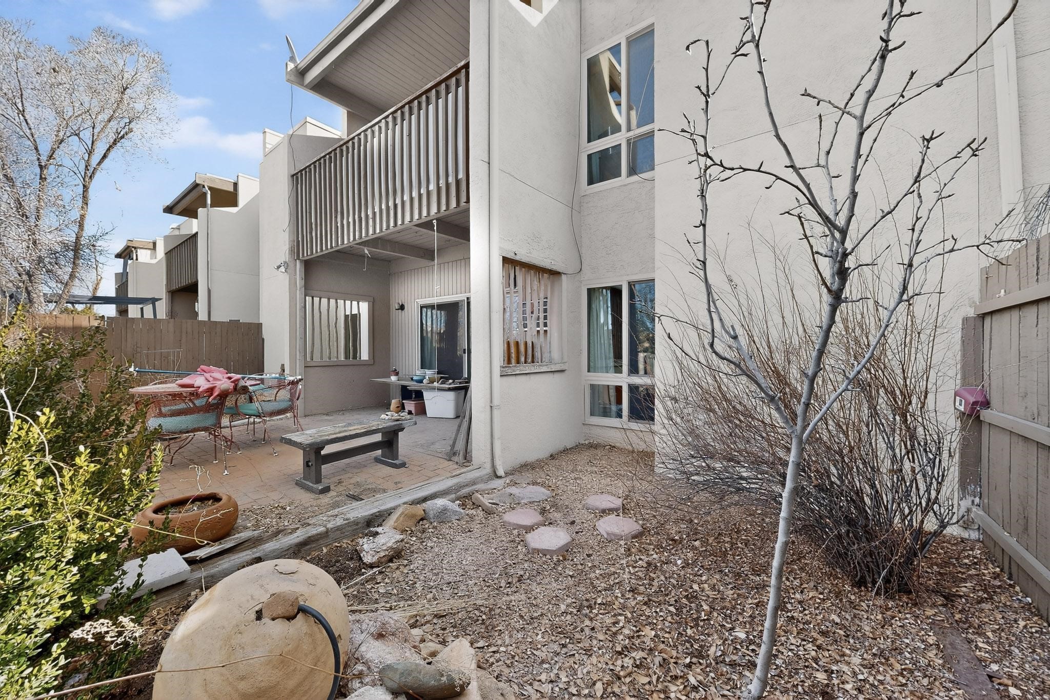 Live at the Los Arroyos Condos in the east area of town offers two bedrooms, a 1 3/4 bathrooms and it includes a large laundry and storage room with a stacked washer and dryer. The flooring is saltillo tile in all living areas and bedrooms (no carpet), the second bedroom has laminate wood flooring. This ground-floor condo overlooks the arroyo and trail! The Los Arroyos area is approximately 14 acres of trees, flowers, and shrubs. It's close to medical facilities, along with convenient shopping and a few minutes' drive to downtown. All utilities are included in the HOA fee except electric. The Los Arroyos Compound includes access to an array of amenities, including a clubhouse, an indoor pool, an exercise room, a dry sauna, outdoor space for social gatherings, and tennis courts.