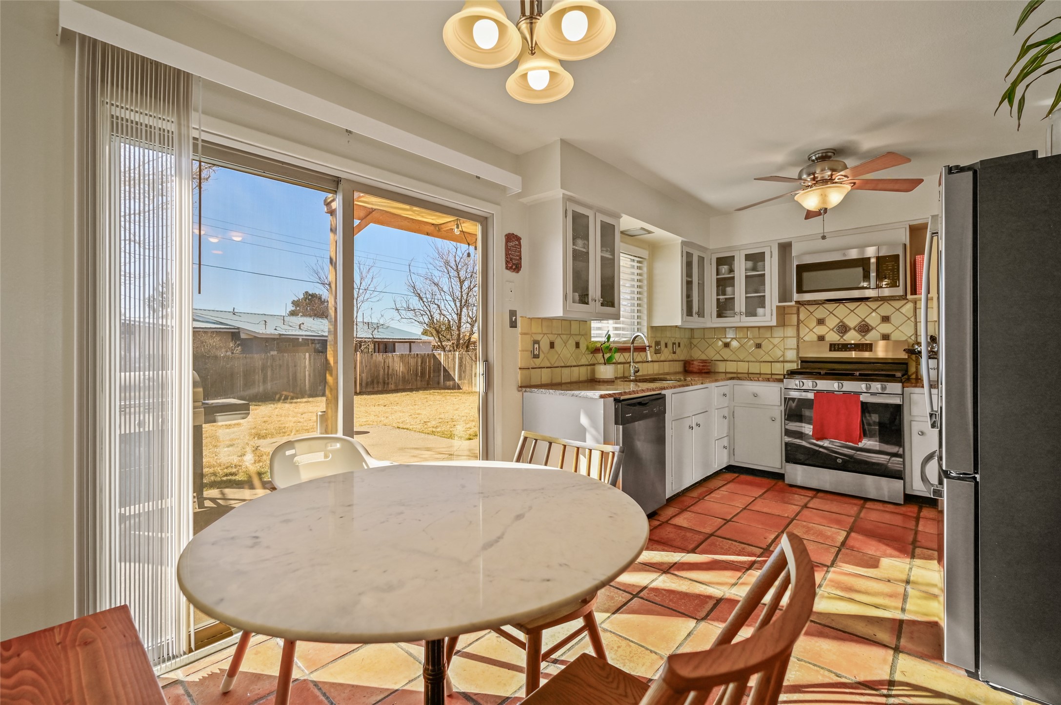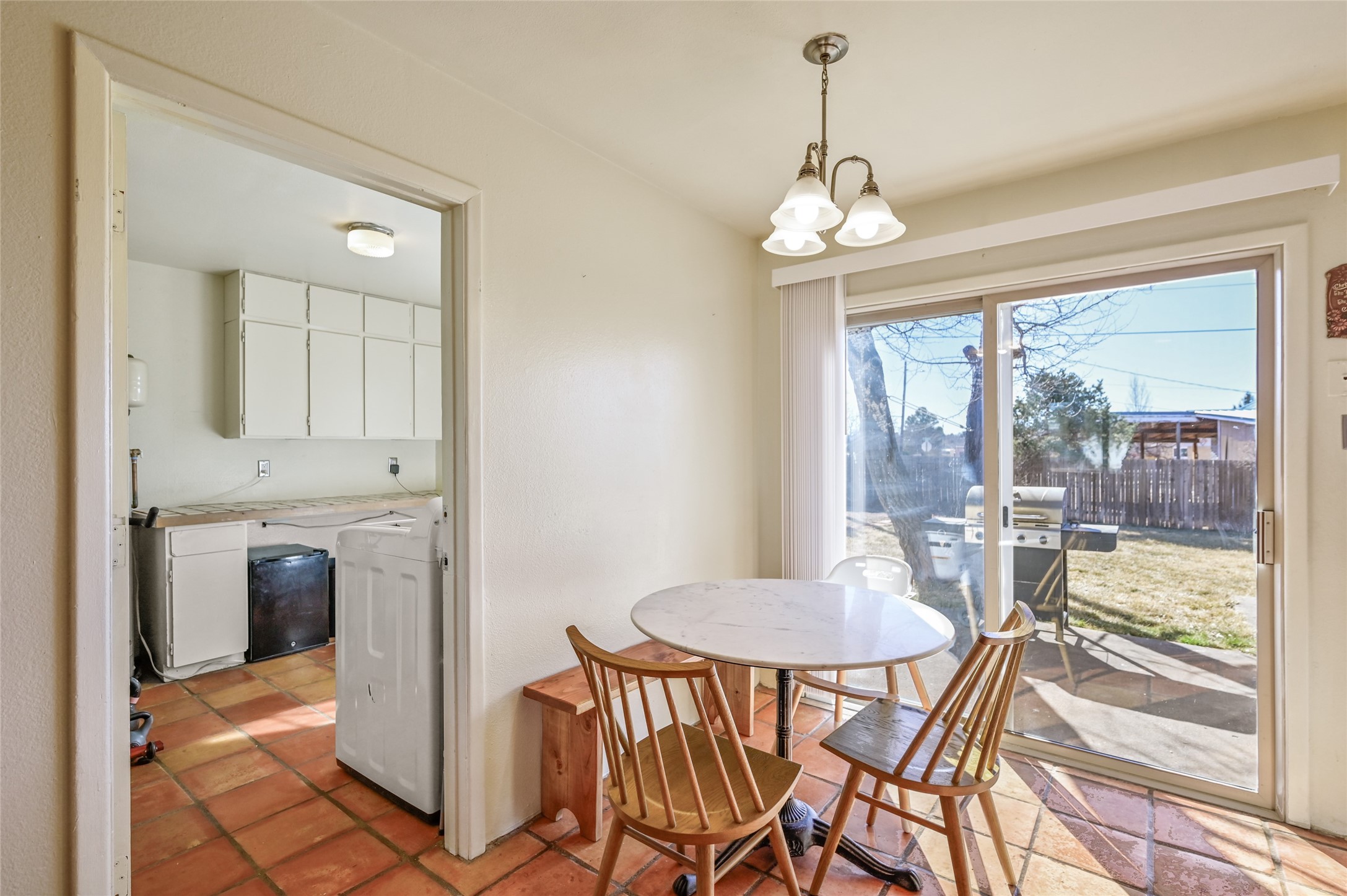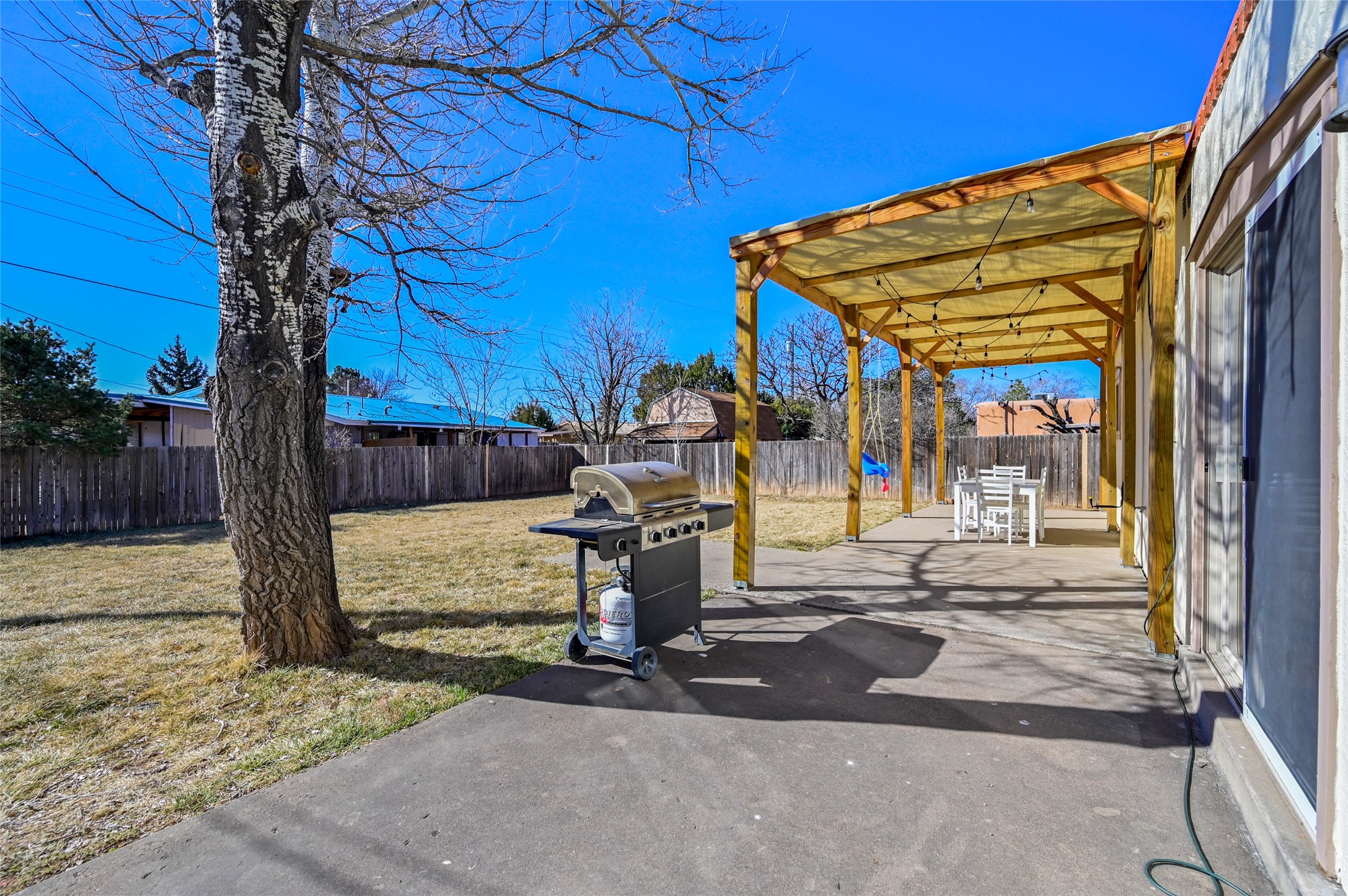 This charming single-level Territorial-style home offers the perfect blend of warmth, comfort, and convenience. Featuring 3 bedrooms and 2 bathrooms, this single-level home has beautiful Saltillo tile and rich wood flooring throughout. The thoughtfully designed layout flows effortlessly, with a welcoming living space and a kitchen equipped with stainless steel appliances, ideal for everyday living and entertaining. Step outside to an expansive backyard, complete with grass, storage shed and a wonderful patio with pergola--perfect for morning coffee, evening gatherings, and outdoor living. Centrally located and close to shopping, dining, and amenities, this home delivers timeless Santa Fe style and easy living in a truly desirable setting.