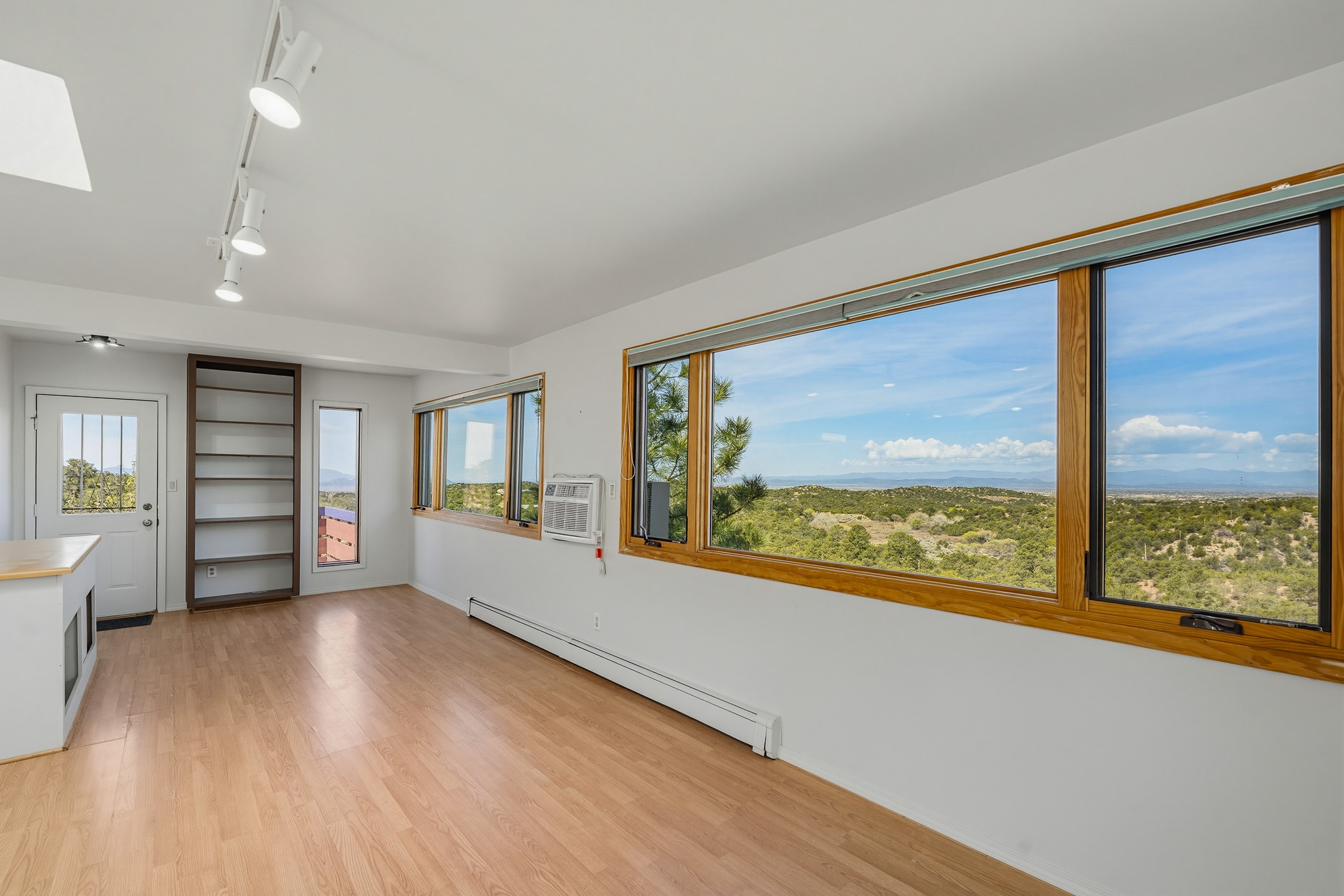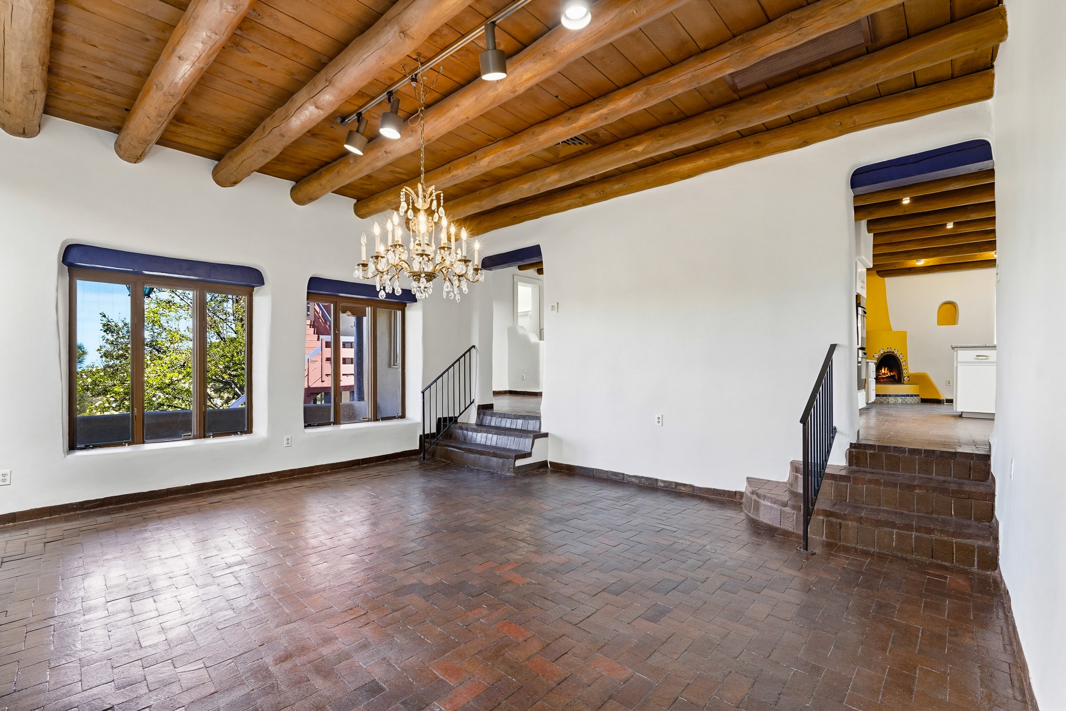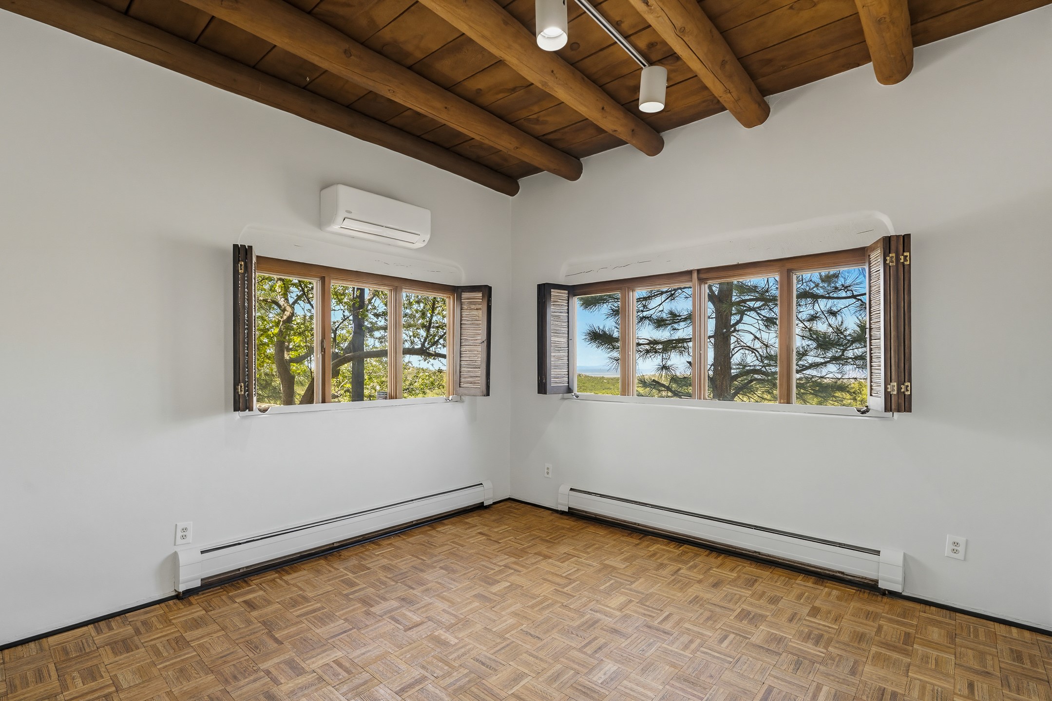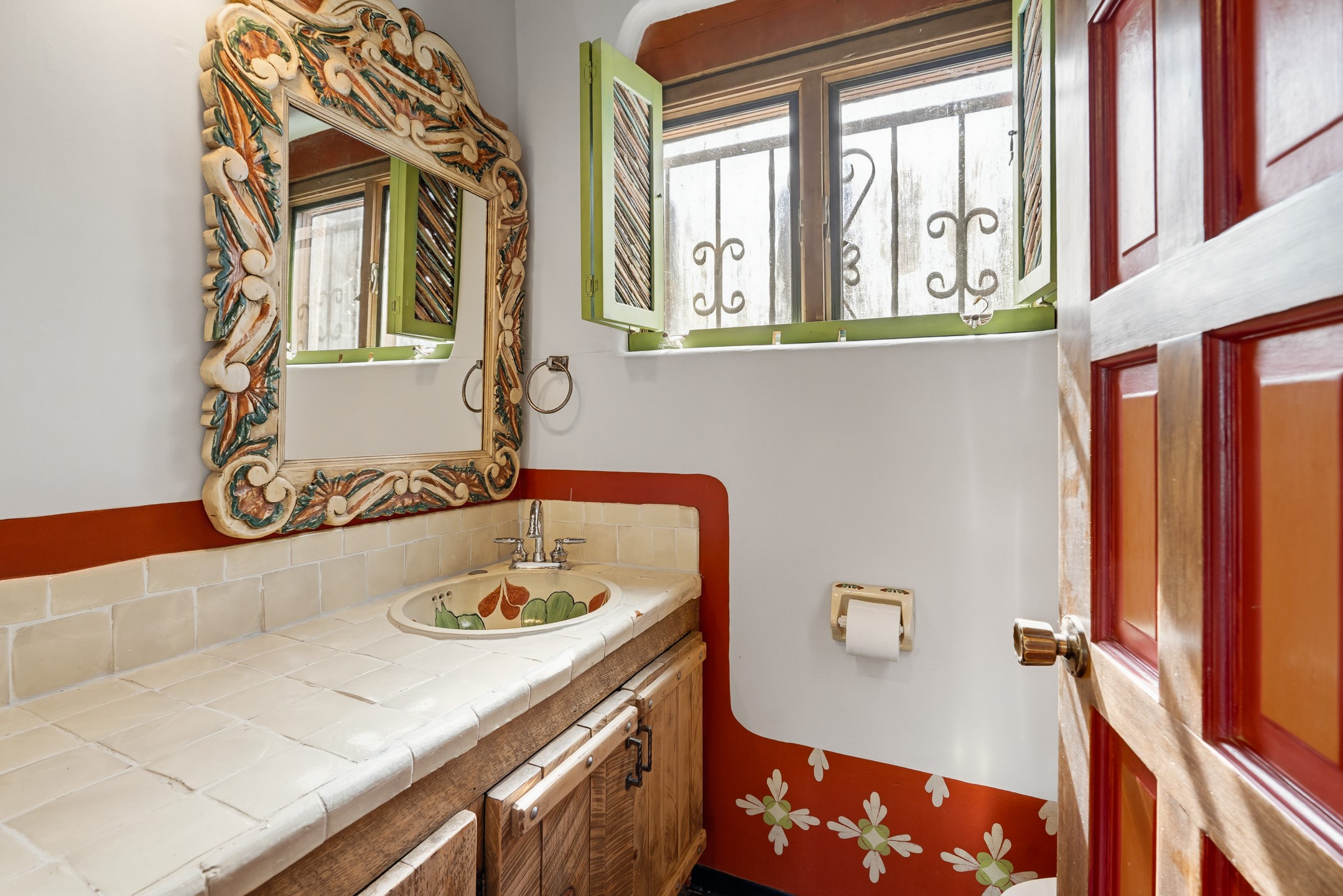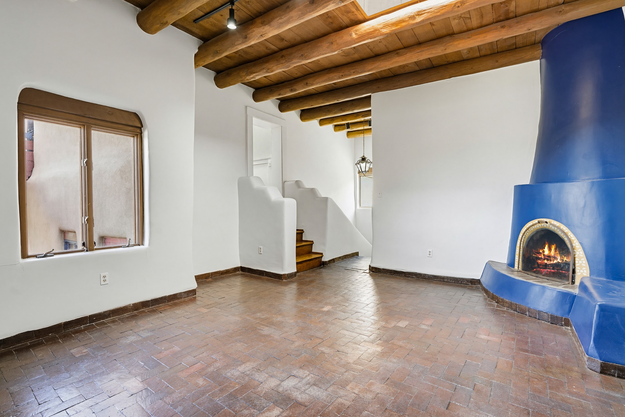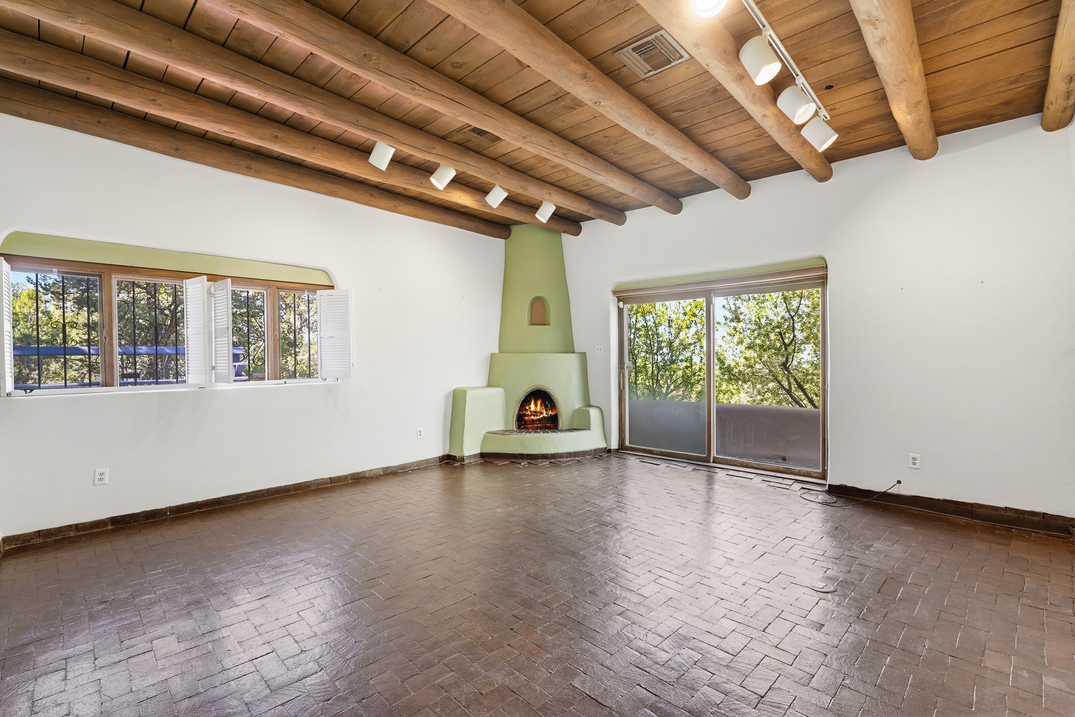 Your traditional Santa Fe Casa awaits! Nestled just minutes off of the historic Old Santa Fe Trail and only 15 minutes from the heart of downtown Santa Fe, this adobe estate captures the essence of classic Southwestern elegance and modern comfort. Set on 5-acres, the property offers total privacy and breathtaking panoramic vistas of the Jemez Mountains and Santa Fe city lights. The main residence features a grand living and entertaining space adorned with multiple cozy kiva fireplaces, high viga accented ceilings, brick floors, iron work, colorful floral wall motifs, and traditional craftsmanship. Many recent practical improvements to the roof, exterior, and systems have also been made. Four spacious bedrooms make this a comfortable retreat for full-time living or hosting of guests. Not to be missed is the spacious, upstairs artist's retreat with panoramic views - the perfect place to paint, work, write, and create! The primary suite is private and appointed with a large ensuite bathroom, access to the enclosed in-ground spa, patio access, and sweeping sightlines across the high desert landscape. The grounds are equally serene with water features and fountains, multiple garden beds, and private patio enclaves. A long western-facing, covered portal, spanning the length of the main living room is the perfect outdoor extension to the main home's grand indoor living. A detached 1BD-1BA guest house, with its own garage, offers privacy and comfort for visitors, family or invites the potential for rental generating income. Whether you're soaking in the golden hour light from one of the many outdoor living spaces or relaxing by one of the property's four fireplaces, this one-of-a-kind property offers an unparalleled canvas equipped with undeniable tranquility, vistas and convenience to Santa Fe's exquisite destinations.