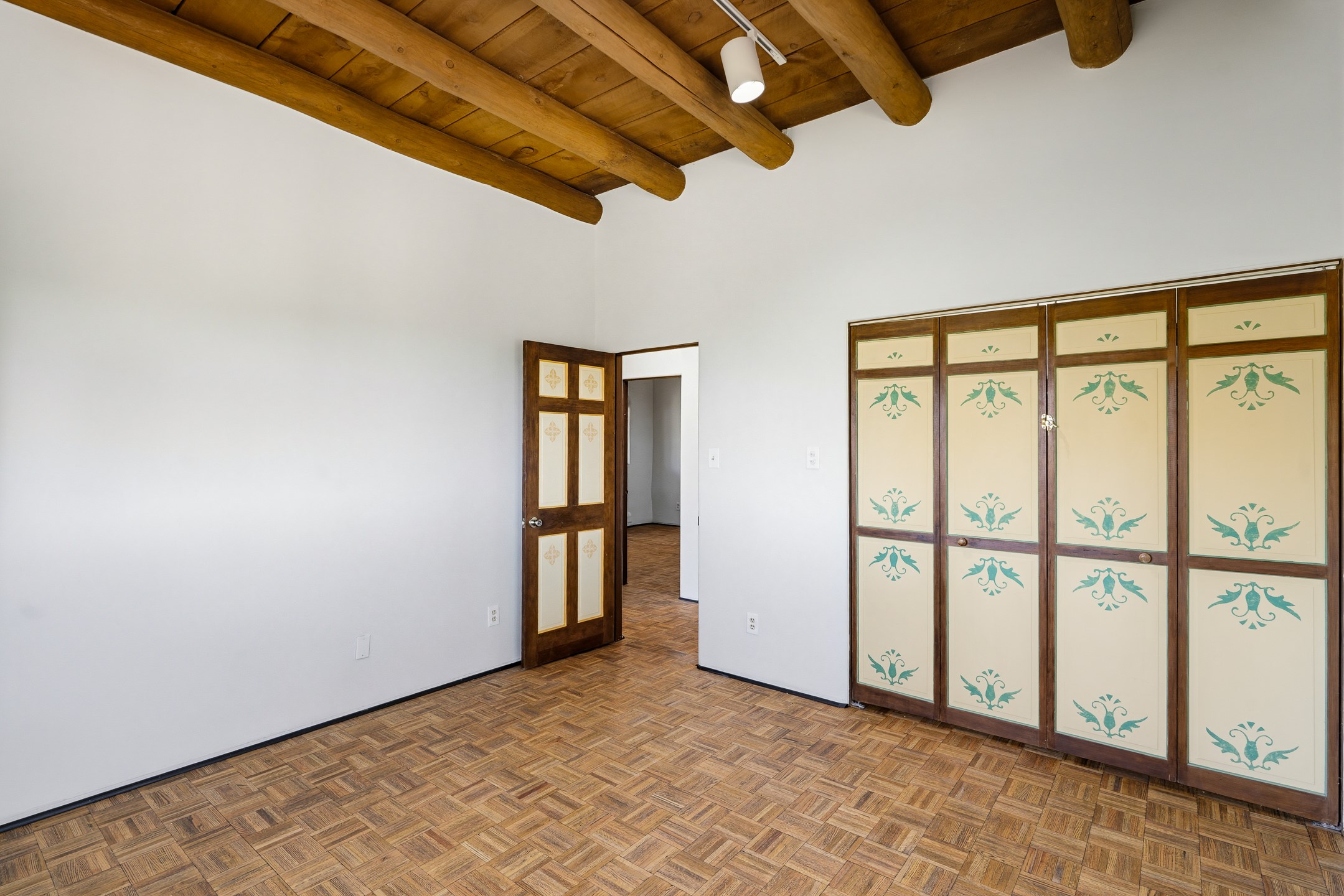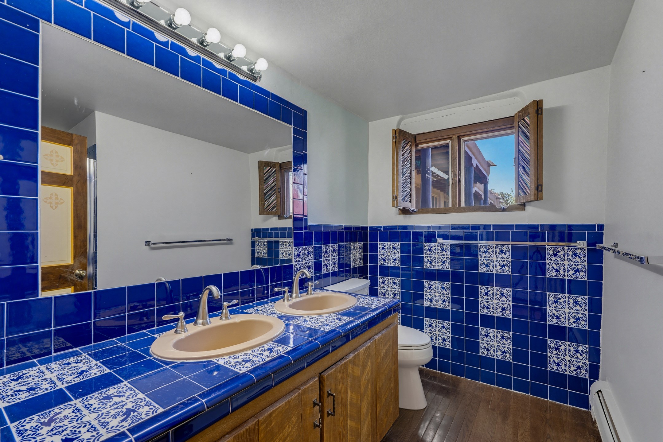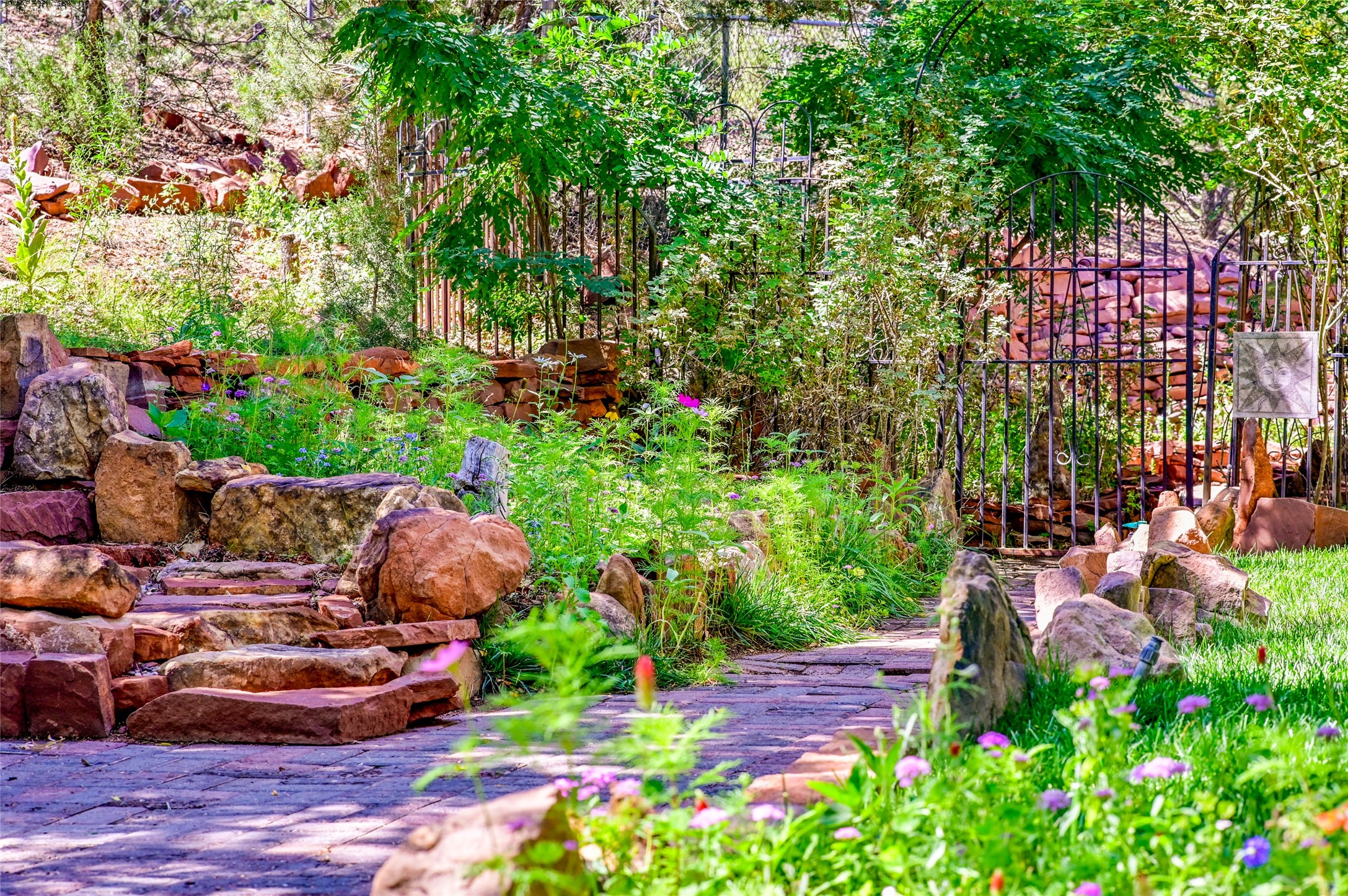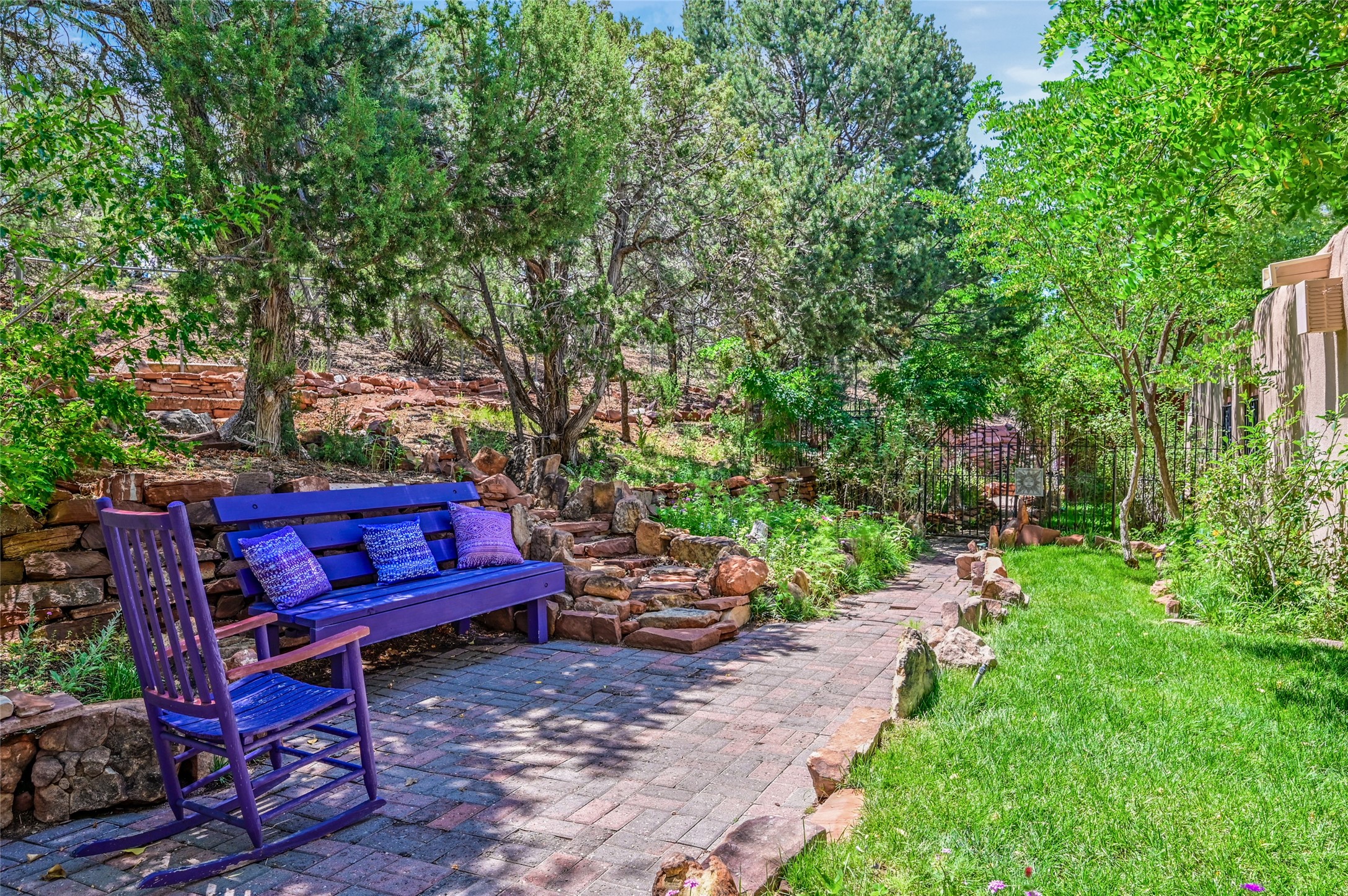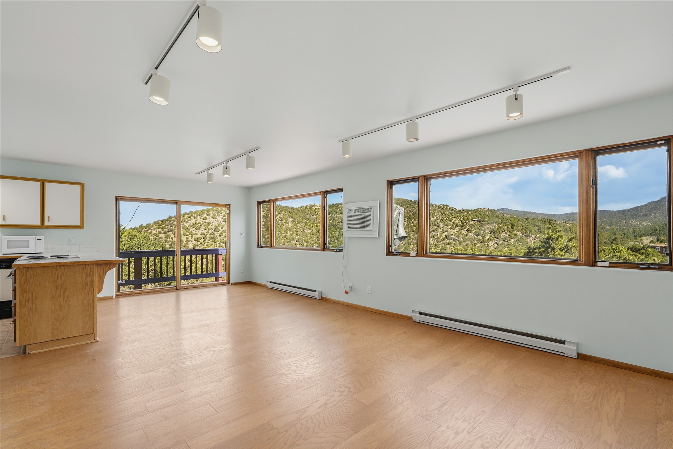 Your traditional Santa Fe Casa awaits! Nestled just minutes off of the historic Old Santa Fe Trail and only 15 minutes from the heart of downtown Santa Fe, this adobe estate captures the essence of classic Southwestern elegance and modern comfort. Set on 5-acres, the property offers total privacy and breathtaking panoramic vistas of the Jemez Mountains and Santa Fe city lights. The main residence features a grand living and entertaining space adorned with multiple cozy kiva fireplaces, high viga accented ceilings, brick floors, iron work, colorful floral wall motifs, and traditional craftsmanship. Many recent practical improvements to the roof, exterior, and systems have also been made. Four spacious bedrooms make this a comfortable retreat for full-time living or hosting of guests. Not to be missed is the spacious, upstairs artist's retreat with panoramic views - the perfect place to paint, work, write, and create! The primary suite is private and appointed with a large ensuite bathroom, access to the enclosed in-ground spa, patio access, and sweeping sightlines across the high desert landscape. The grounds are equally serene with water features and fountains, multiple garden beds, and private patio enclaves. A long western-facing, covered portal, spanning the length of the main living room is the perfect outdoor extension to the main home's grand indoor living. A detached 1BD-1BA guest house, with its own garage, offers privacy and comfort for visitors, family or invites the potential for rental generating income. Whether you're soaking in the golden hour light from one of the many outdoor living spaces or relaxing by one of the property's four fireplaces, this one-of-a-kind property offers an unparalleled canvas equipped with undeniable tranquility, vistas and convenience to Santa Fe's exquisite destinations.