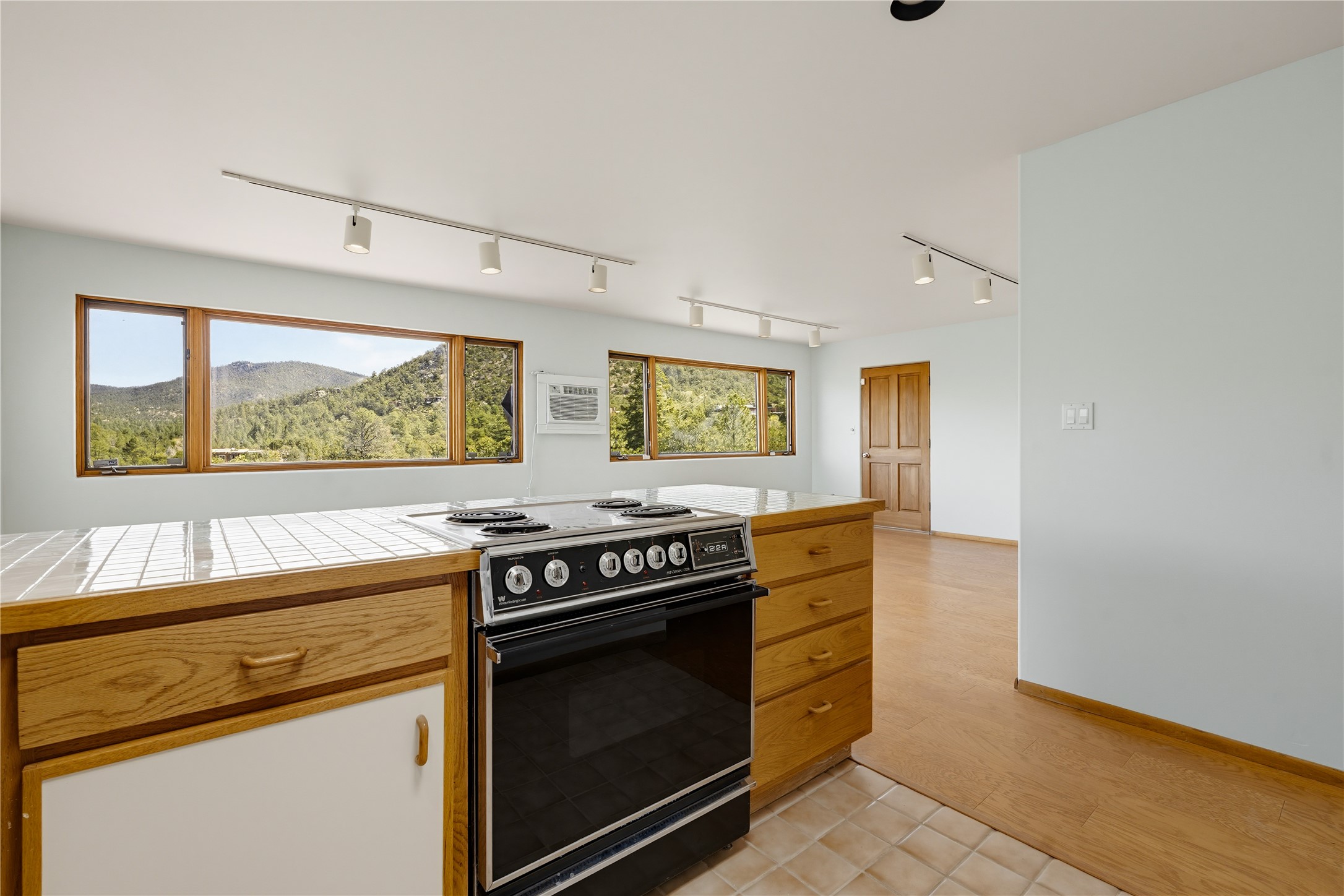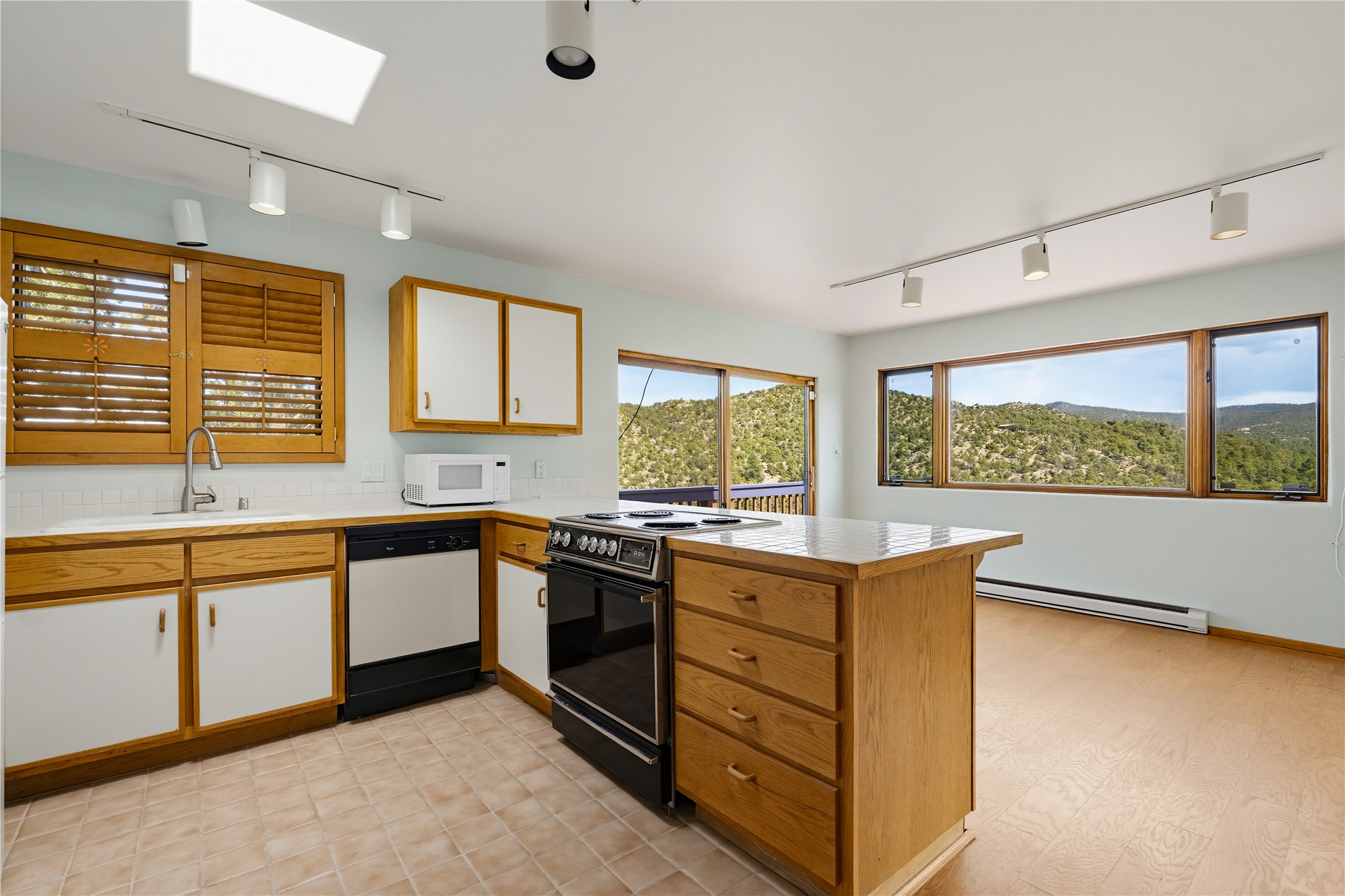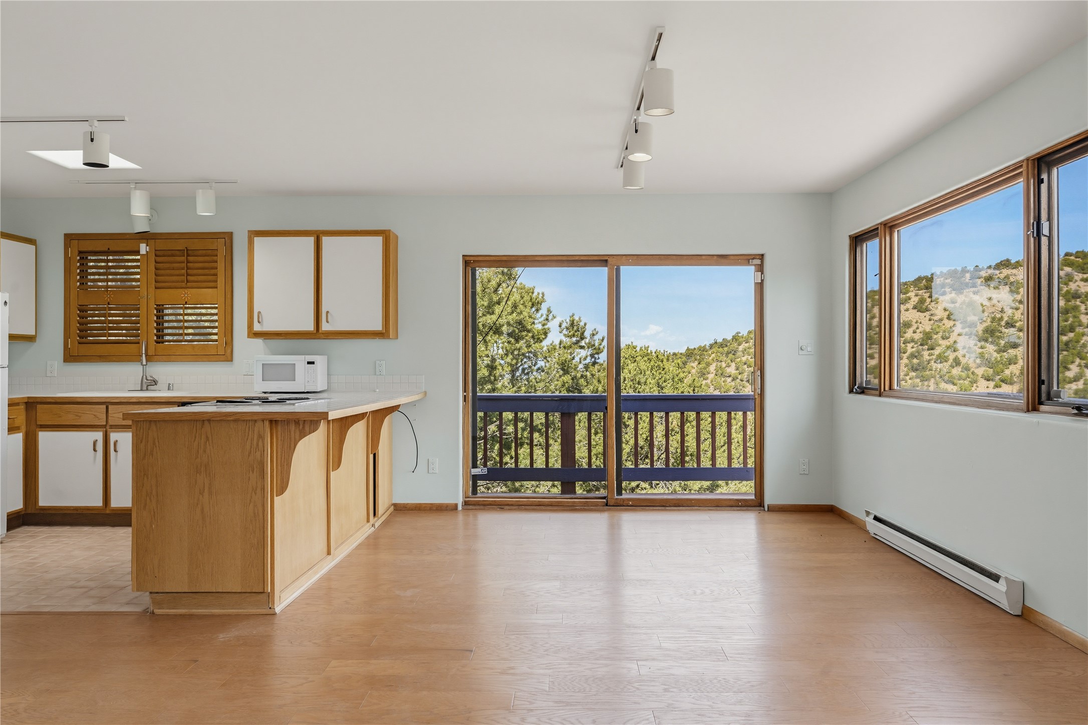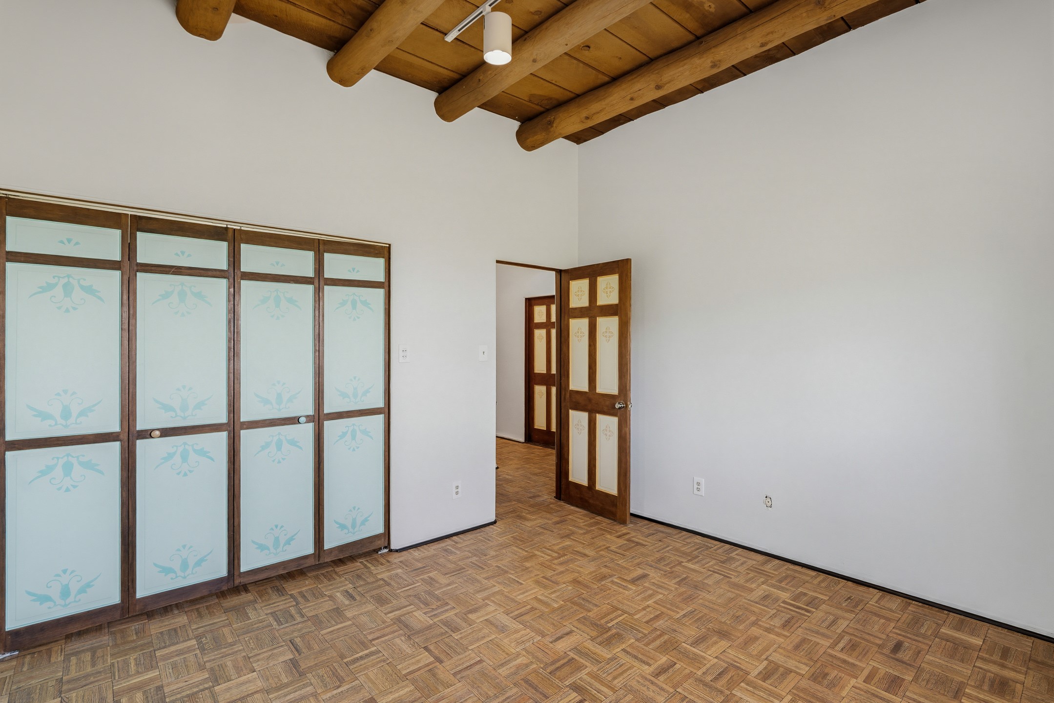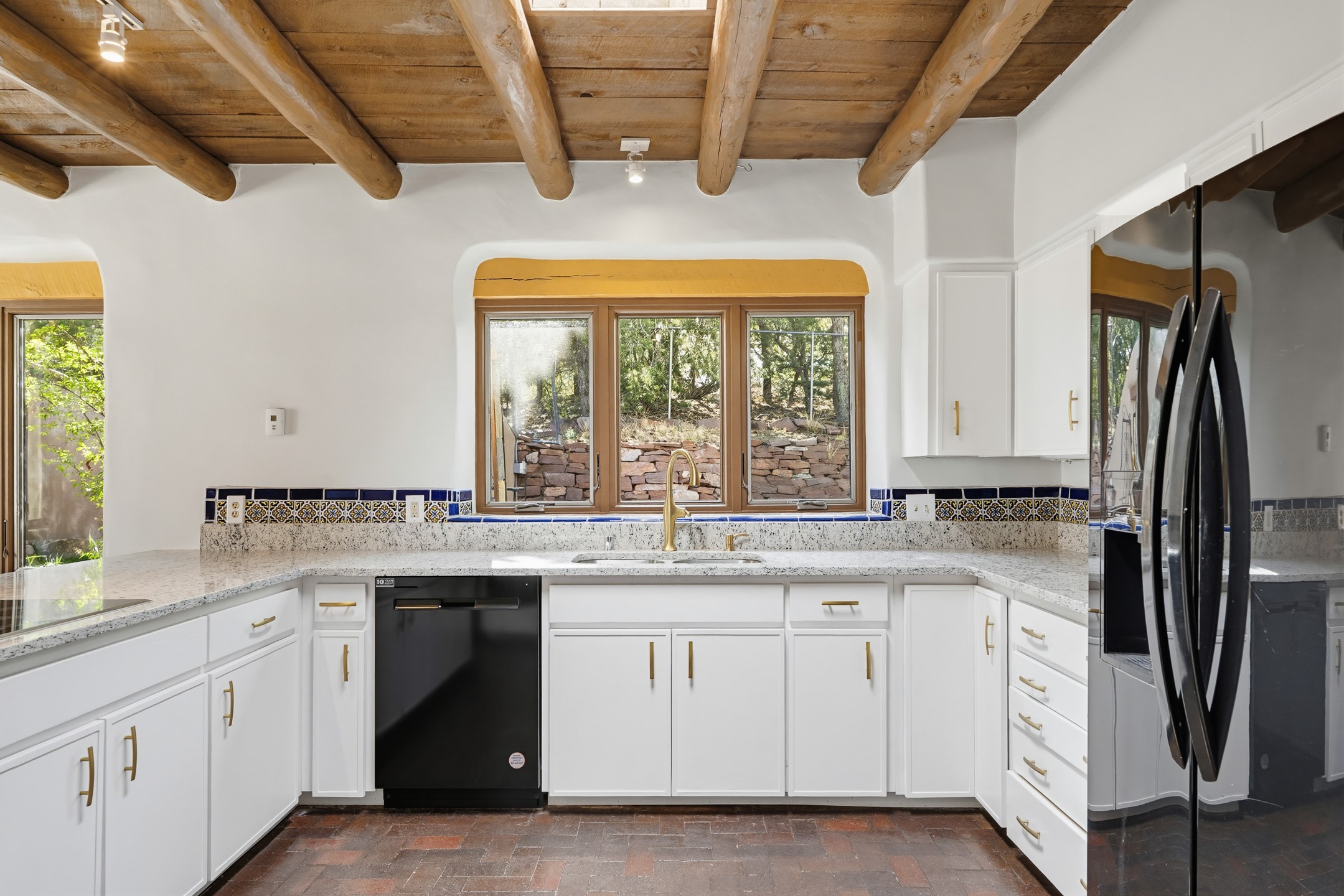 Your traditional Santa Fe Casa awaits! Nestled just minutes off of the historic Old Santa Fe Trail and only 15 minutes from the heart of downtown Santa Fe, this adobe estate captures the essence of classic Southwestern elegance and modern comfort. Set on 5-acres, the property offers total privacy and breathtaking panoramic vistas of the Jemez Mountains and Santa Fe city lights. The main residence features a grand living and entertaining space adorned with multiple cozy kiva fireplaces, high viga accented ceilings, brick floors, iron work, colorful floral wall motifs, and traditional craftsmanship. Many recent practical improvements to the roof, exterior, and systems have also been made. Four spacious bedrooms make this a comfortable retreat for full-time living or hosting of guests. Not to be missed is the spacious, upstairs artist's retreat with panoramic views - the perfect place to paint, work, write, and create! The primary suite is private and appointed with a large ensuite bathroom, access to the enclosed in-ground spa, patio access, and sweeping sightlines across the high desert landscape. The grounds are equally serene with water features and fountains, multiple garden beds, and private patio enclaves. A long western-facing, covered portal, spanning the length of the main living room is the perfect outdoor extension to the main home's grand indoor living. A detached 1BD-1BA guest house, with its own garage, offers privacy and comfort for visitors, family or invites the potential for rental generating income. Whether you're soaking in the golden hour light from one of the many outdoor living spaces or relaxing by one of the property's four fireplaces, this one-of-a-kind property offers an unparalleled canvas equipped with undeniable tranquility, vistas and convenience to Santa Fe's exquisite destinations.