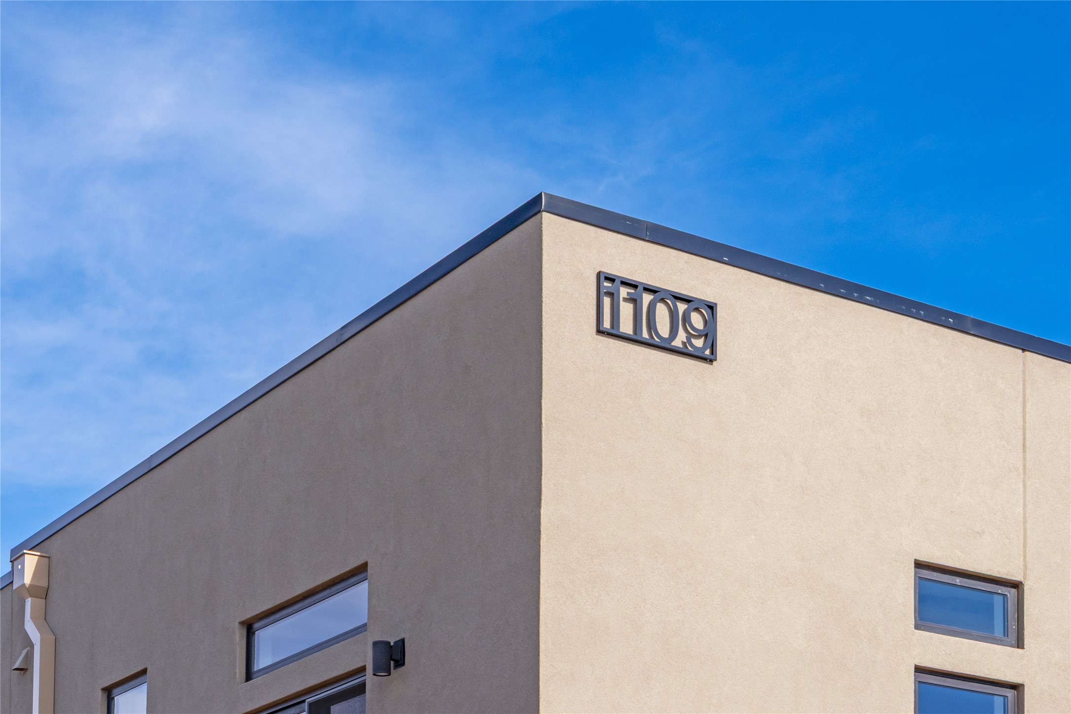 Corner unit with a wraparound balcony and mountain views in central Santa Fe, built in 2022 and lightly used, offering modern loft living and an ideal work-from-home setup. Approximately 1,126 square feet across two levels with an even split between floors, the east- and south-facing orientation fills the space with natural light throughout the day. Upstairs features an open studio-style living area, a luxury bathroom, and access to a private balcony to take in the mountain views. The kitchen is well-appointed with quartz countertops, subway tile backsplash, full-size appliances, and ample space for cooking. Downstairs showcases concrete floors, an ADA-compliant bathroom, large glass roll-up garage door, and useful storage closets, creating flexible space for work, studio, or showroom use. Both floors are equipped with mini-splits, blinds, ceiling fans, track lighting, and smooth drywall. Energy-efficient features include an on-demand water heater and two dedicated grid-tied solar panels. Washer and dryer hookups are in place (existing washer and dryer do not convey), and the Murphy bed conveys, yet mattress does not. Hardwired for high-speed cable. HOA dues are $225 per month and include dumpster service, parking, landscaping, exterior building maintenance, and insurance, with an estimated $700 HOA sign-up fee.