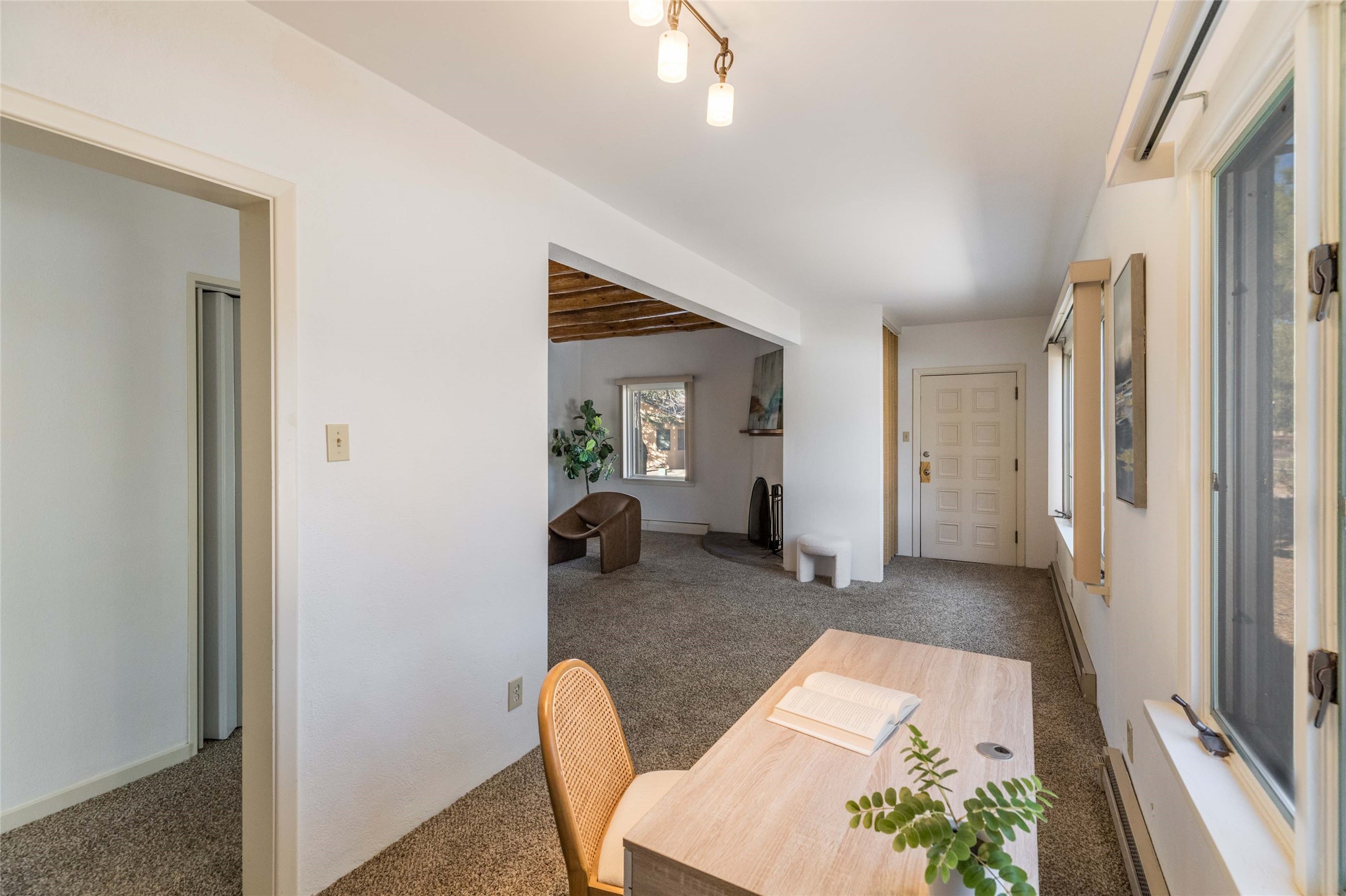 Experience the lifestyle of Downtown Santa Fe at Plaza Del Monte, a gated community located within one of the Southwest's most iconic destinations, just minutes from the historic Santa Fe Plaza. This rare offering presents a compelling opportunity for investors, second-home owners, and adventure travelers alike, with the added benefit of allowable short-term rentals. The community offers a unique and peaceful setting with nearby access to open space, hiking and biking trails, and outdoor recreation, while remaining close to Santa Fe's celebrated galleries, restaurants, and cultural landmarks. A rare chance to own in a community that blends lifestyle, location, and strong investment potential. This charming 1,694 square foot residence offers 2 bedrooms, 2 baths, a light-filled sunroom, and a carport, all set within a spacious outdoor area with room to garden and create your own private oasis. The home captures the character and warmth that define classic Santa Fe style while offering an exciting opportunity for the next owner to update and elevate the property to the next level. With its exceptional walkable location and generous space both inside and out, this property presents a rare chance to enjoy the Downtown Santa Fe lifestyle while adding your own vision and value.