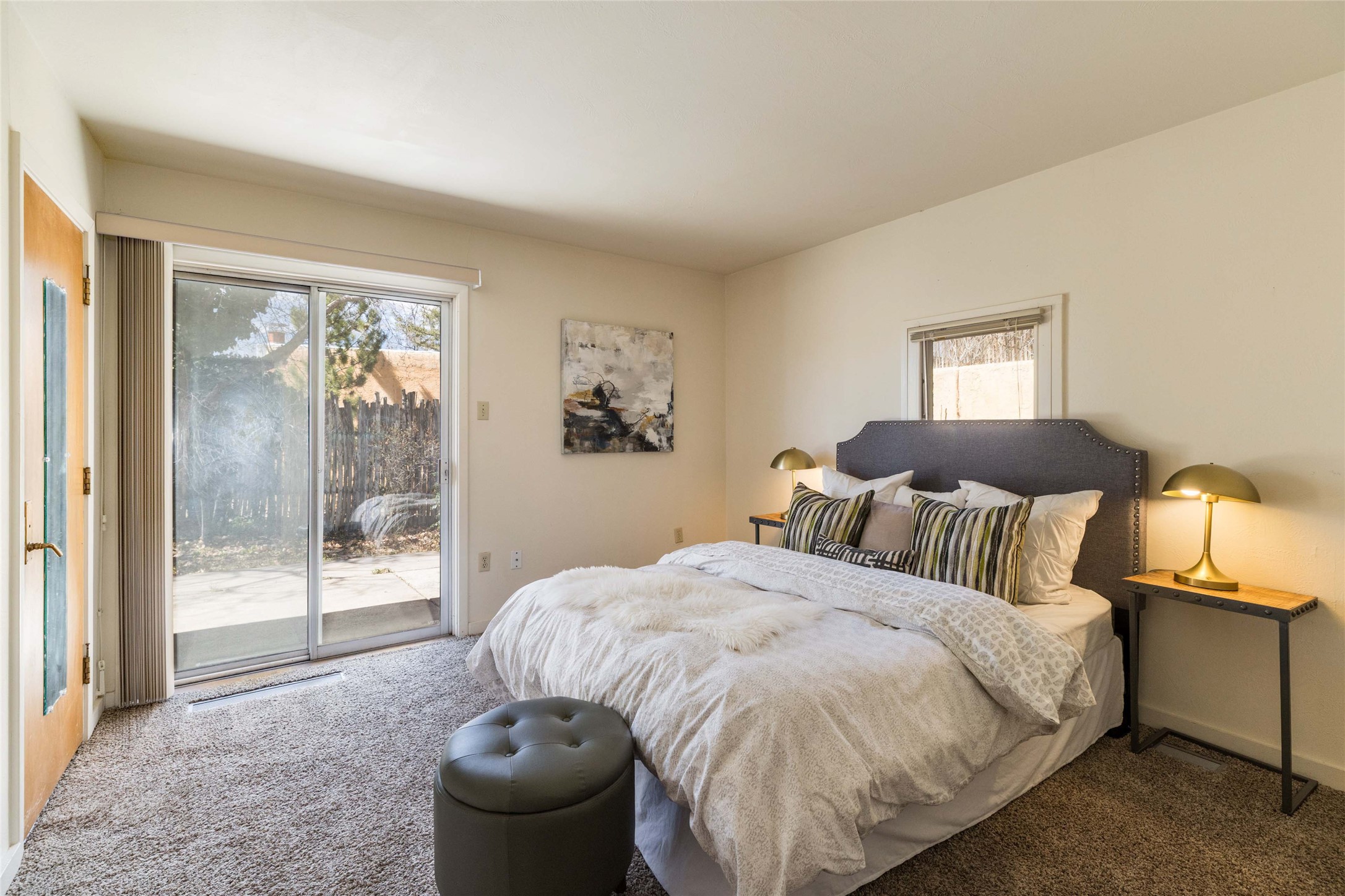 Experience the lifestyle of Downtown Santa Fe at Plaza Del Monte, a gated community located within one of the Southwest's most iconic destinations, just minutes from the historic Santa Fe Plaza. This rare offering presents a compelling opportunity for investors, second-home owners, and adventure travelers alike, with the added benefit of allowable short-term rentals. The community offers a unique and peaceful setting with nearby access to open space, hiking and biking trails, and outdoor recreation, while remaining close to Santa Fe's celebrated galleries, restaurants, and cultural landmarks. A rare chance to own in a community that blends lifestyle, location, and strong investment potential. A versatile duplex opportunity with strong investment potential. This property offers flexibility for investors seeking rental income, a multi-generational living option, or a Santa Fe retreat with built-in income potential. Each side offers a 2-bedroom, 2-bath layout, allowing the property to function as a full 4-bedroom, 4-bath residence, a dual long-term rental, or an ideal live-in investment with income from the second unit. The total living space is 2,192 square feet, with Unit A at 1,059 square feet and Unit B at 1,133 square feet. The floor plan is enhanced by pitched roofs, living rooms with large windows that bring in abundant natural light, and high ceilings that create an open, airy feel--features that appeal to both tenants and owners alike. The private backyard, bordered by mature trees, adds valuable outdoor living space and privacy.