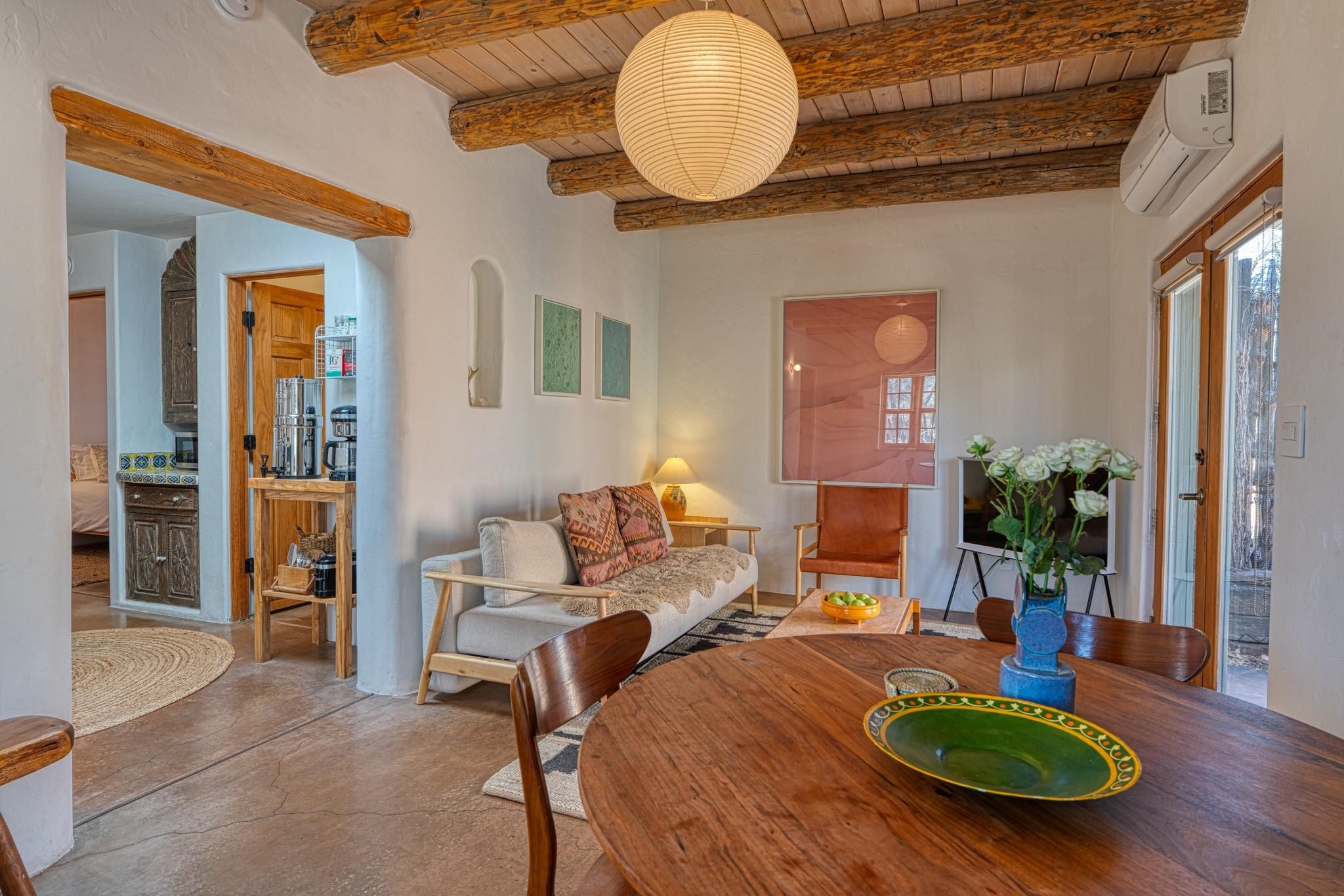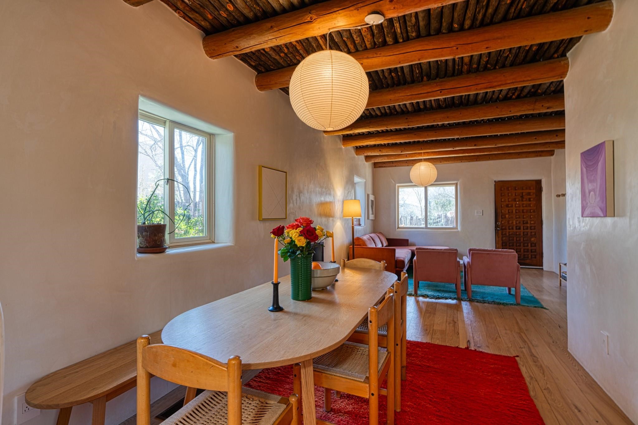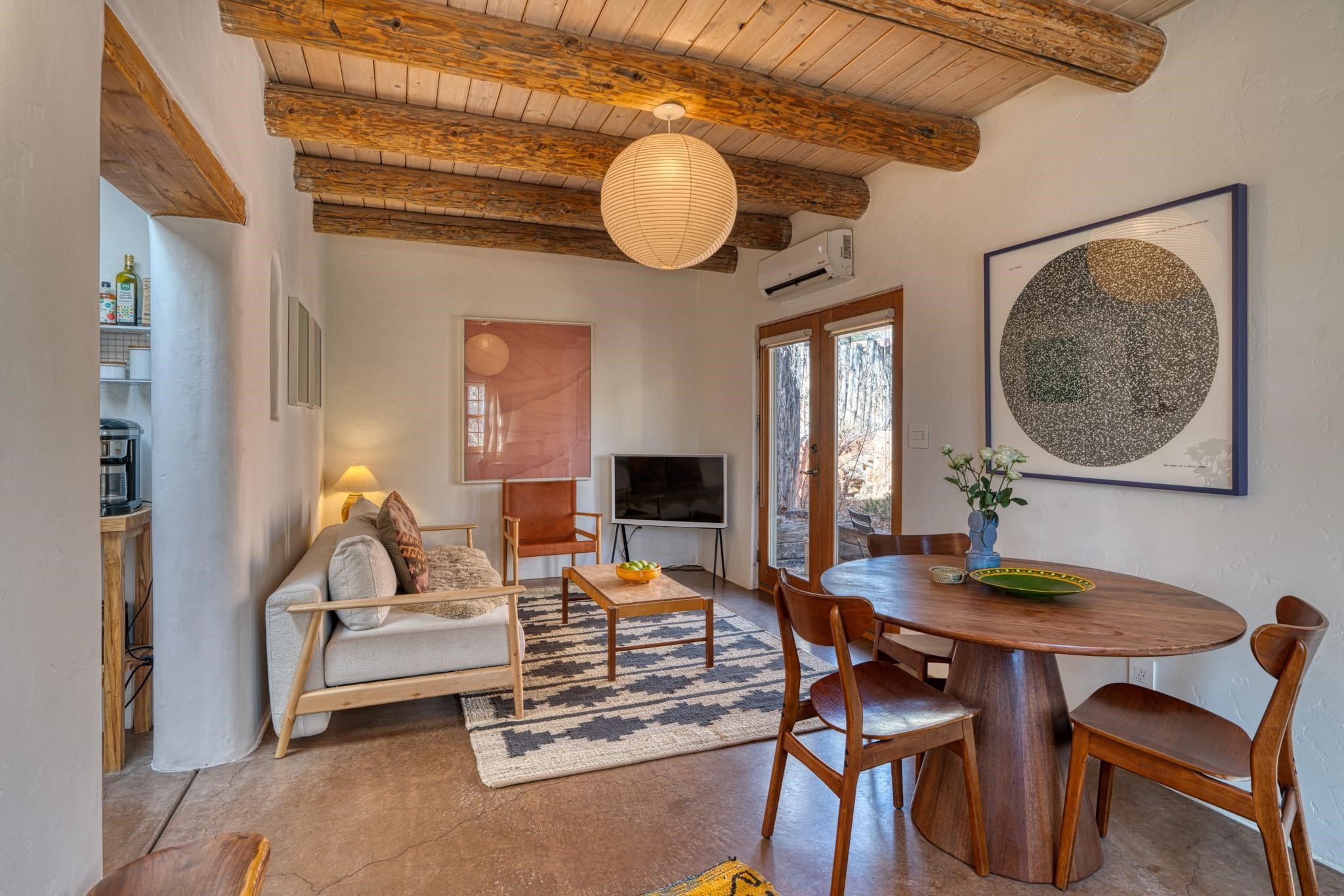 Nestled on a shaded lot in the Eastside of Santa Fe is where you will find this beautiful 2 bedroom adobe home and a completely private separate 1 bedroom casita. This home features all the Santa Fe classic charm with numerous artistic and thoughtfully planned modern updates. The casita has been a successful short term rental. Minutes to the Plaza and surrounded by trails ready to be enjoyed! This is a treasure that you won't want to miss!