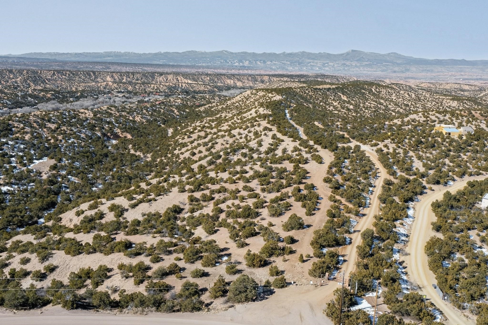Breathtaking views from this astonishing 15 acre ridge top lot in a small private and gated subdivision moments from the village of Rio En Medio, which has access to a trail head into the mountains of the National Forest and a nearby waterfall. A deep, sandy bottomed, canyon cuts through the lot. Shared well and power available. Short, level and private access road (easement) off the main road. Minimal CC&Rs. All 5 lots can be purchased as a package. The buildable site offers spectacular views but will need expert construction and design flair for each terrain. Minutes to fine dining at the Four Seasons Encantado Resort.