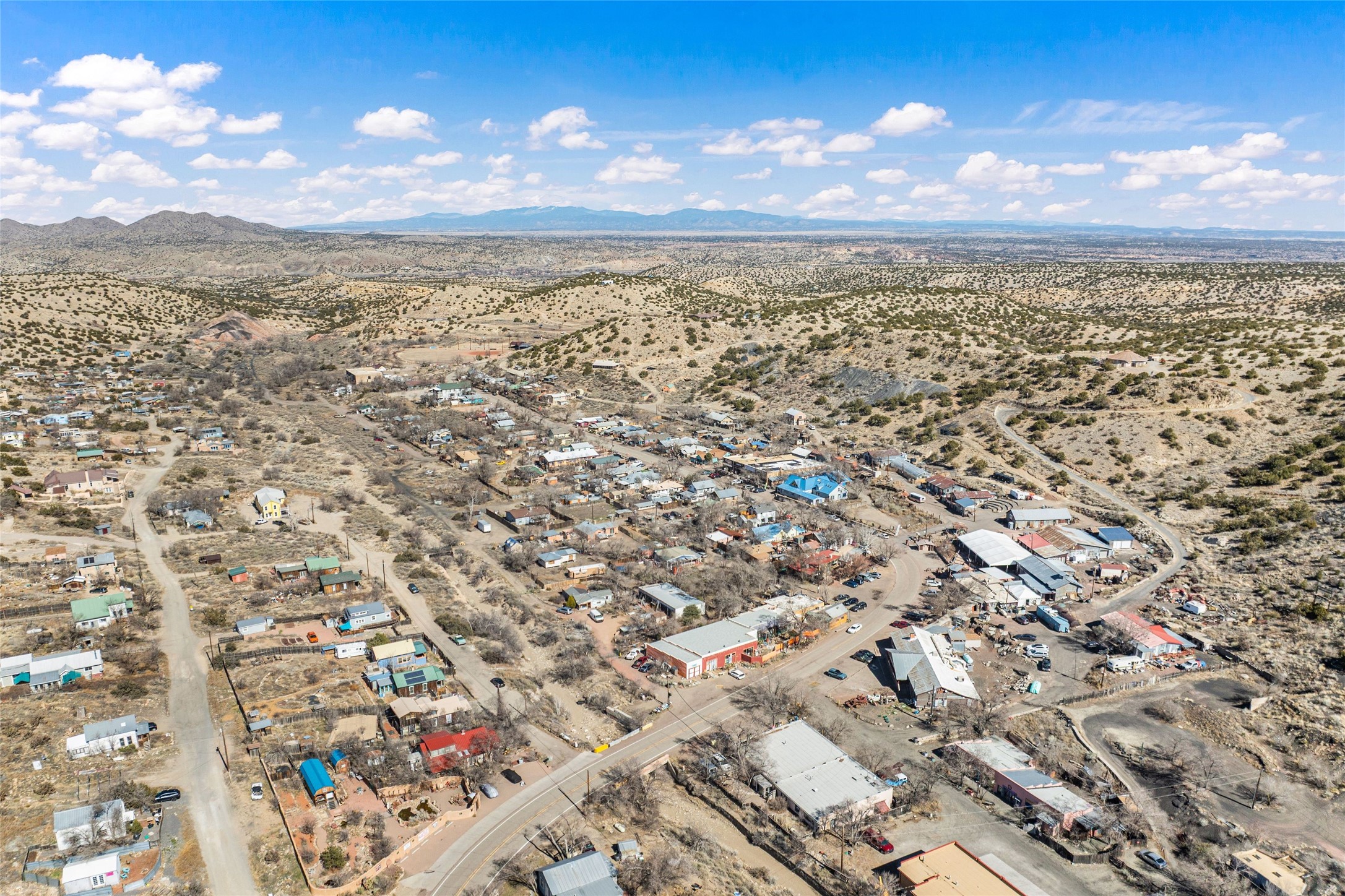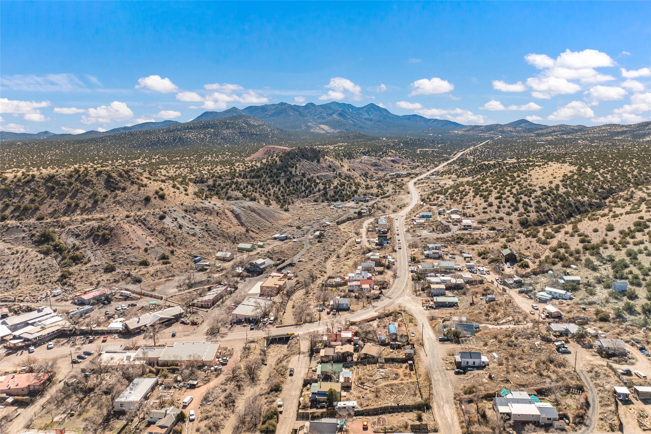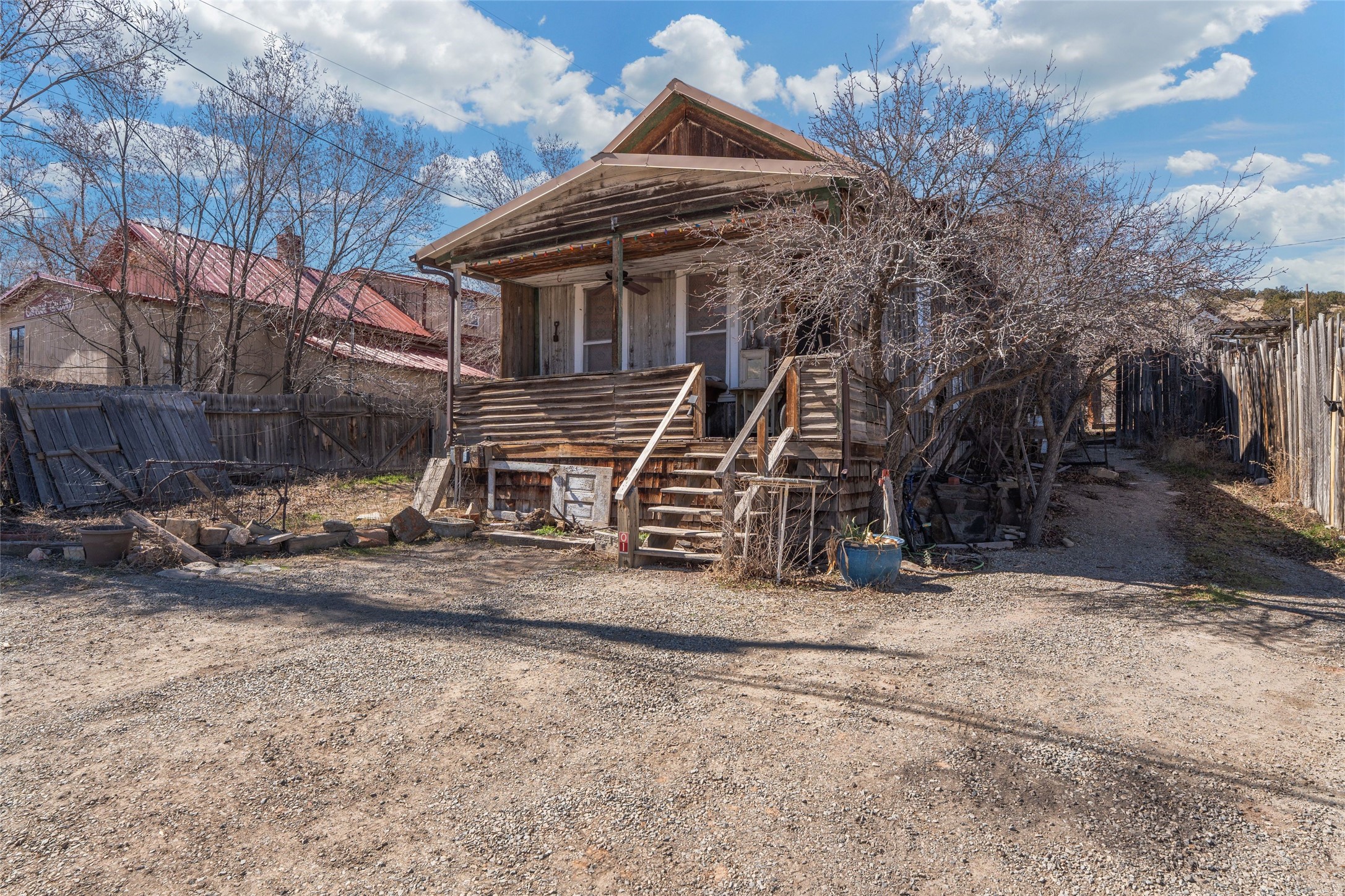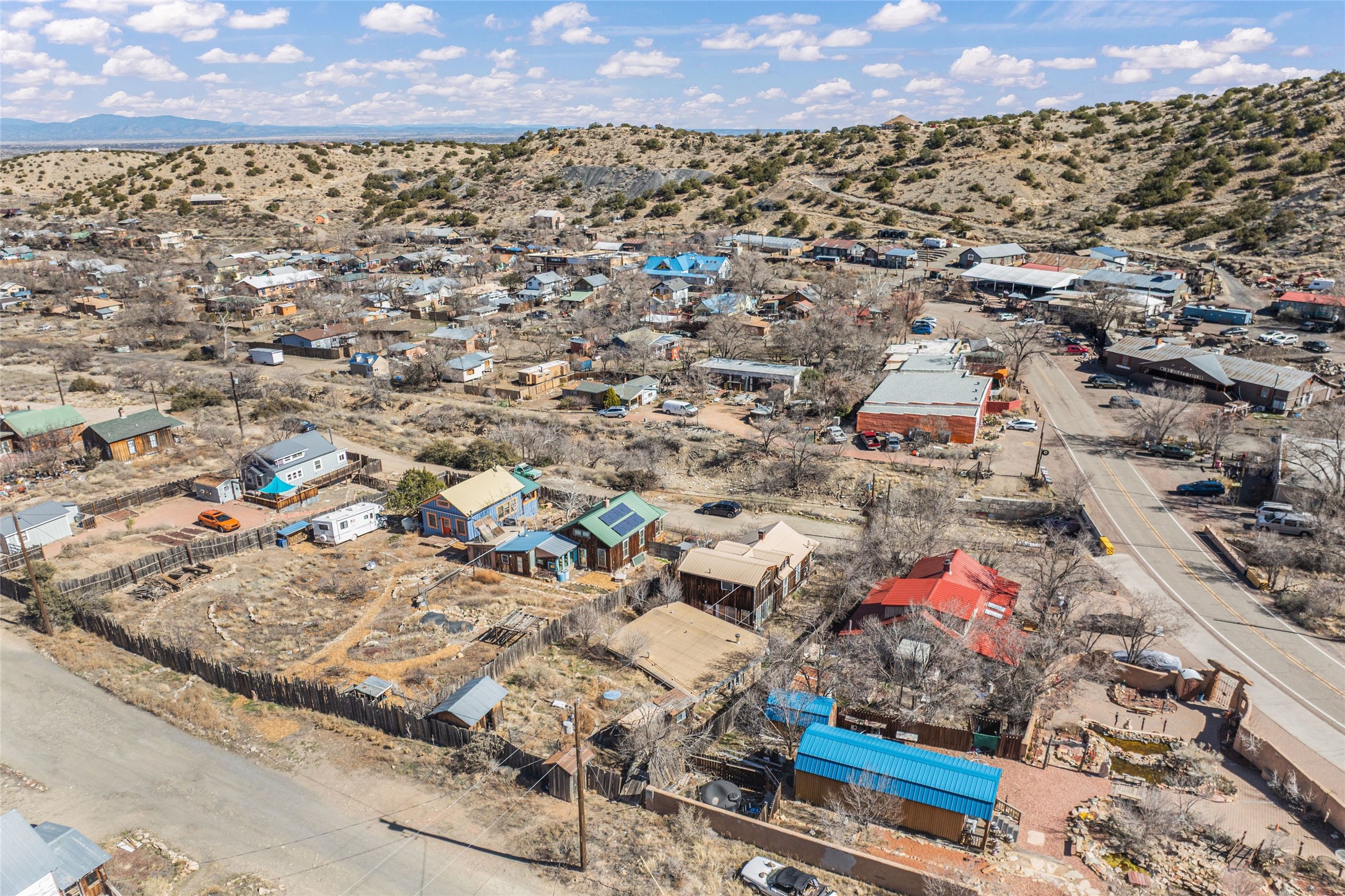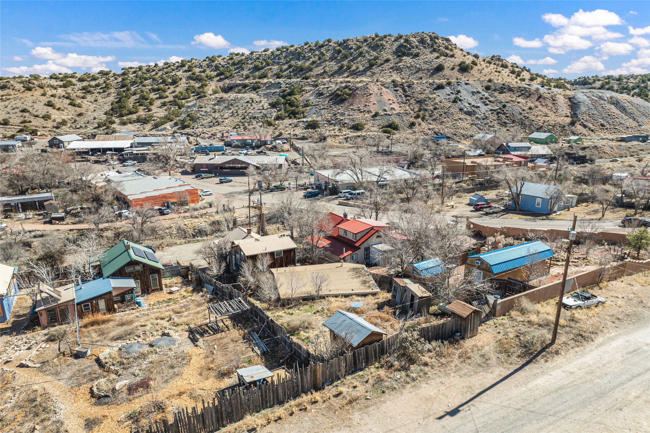 This inviting Madrid townsite property blends historic character with modern updates, featuring an upgraded kitchen and a detached guest house complete with a full bath and kitchenette. It's an ideal fit for a homeowner seeking rental income, a private studio, or a strong investment opportunity. Originally one of Madrid's miner cabins, the main home has been lovingly restored and thoughtfully expanded to include two upstairs bedrooms. The living room and kitchen retain their original hardwood floors, complemented by a wood stove, gas range, granite countertops, and a passive-solar dining areawith Saltillo tile. Newer metal ProPanel roof. The detached casita--an original stone-and-stucco structure--sits well behind the main house with its own private access and parking off Backroad. It is currently rented and equipped with separate sub-meters and a second water co-op hookup, offering immediate income potential. The main house includes a well-planned laundry room with added storage, while the guest house features its own stackable washer/dryer. Additional storage is available in the outbuilding and walk-in crawl space. A fenced yard provides shade and a secure space for pets. From the classic front porch, enjoy views of the vibrant historic village and the scenic Turquoise Trail. The location offers easy walkability to restaurants, galleries, and the general store, with Cerrillos State Park nearby and convenient access to both Santa Fe and Albuquerque