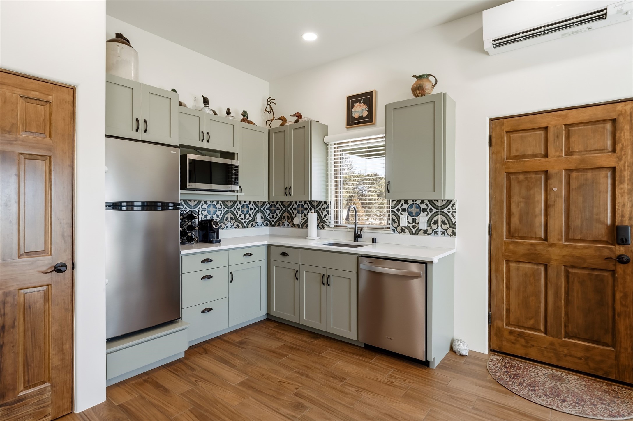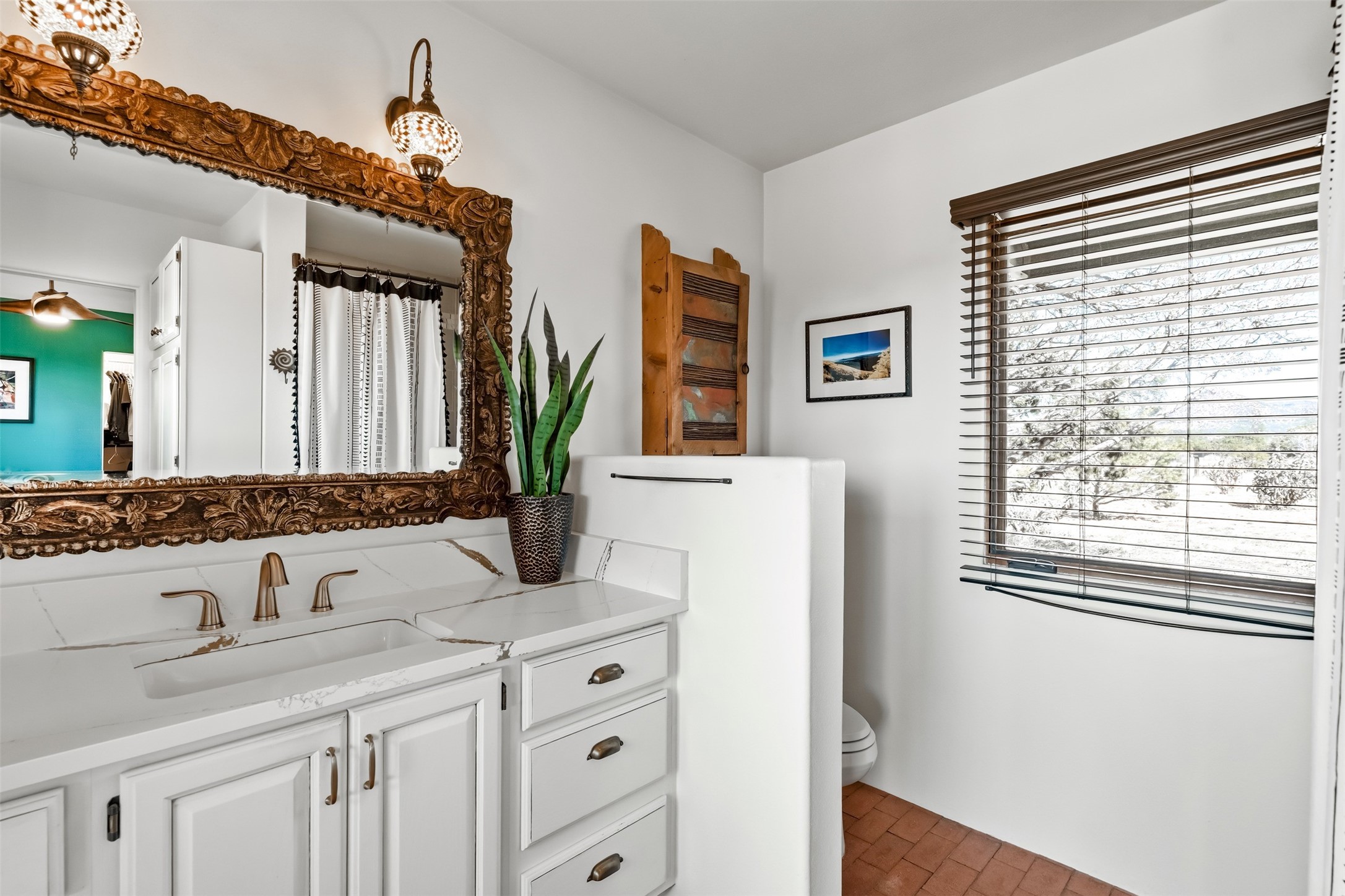 One-of-a-Kind Eldorado at Santa Fe Residence--Artistic, Versatile, with option to purchase Turn-Key. Discover one of Eldorado's most distinctive properties--a beautifully maintained, move-in-ready 5 bedroom, 3 bath home and guest house offer exceptional flexibility for artists, multi-generational living, or those seeking passive rental income. With only two owners, this special residence has been thoughtfully upgraded and lovingly cared for throughout. The fully remodeled main house showcases classic Santa Fe charm paired with modern comfort, featuring new stucco and refreshed hardscape. The newly constructed casita (2023) adds incredible versatility--ideal for guests, extended family, a studio, or income potential. Together, the property offers 2,335 square feet of interior living space, plus a 250-square-foot portal and multiple inviting patio areas designed for relaxed outdoor living. Additional highlights include an oversized two-car garage with built-in storage and workbench, fenced yard, private well with new soft water system and easy access to the Rail Trail. Only minutes to all Eldorado amenities, local shopping and services, close to historic Santa Fe.