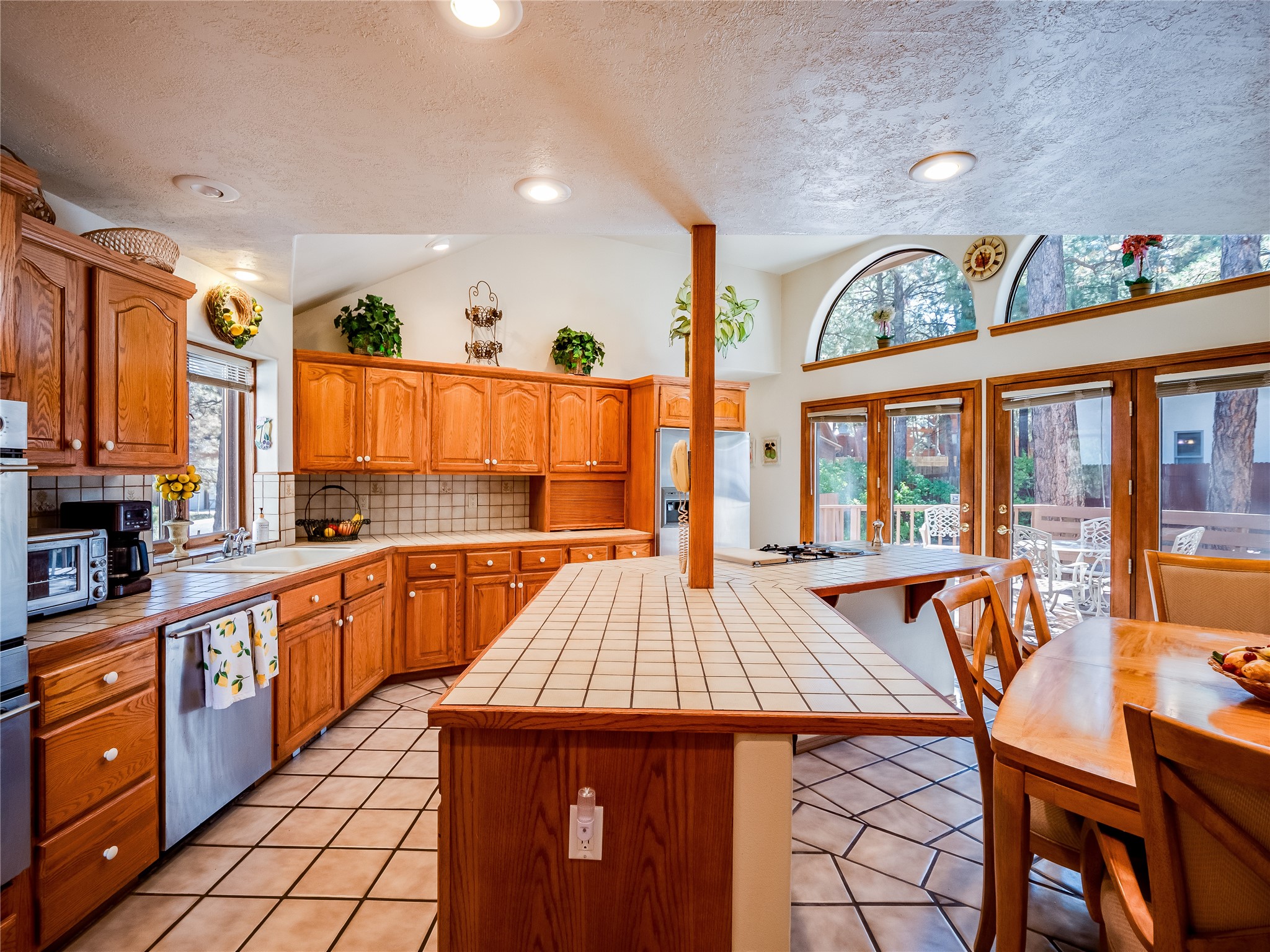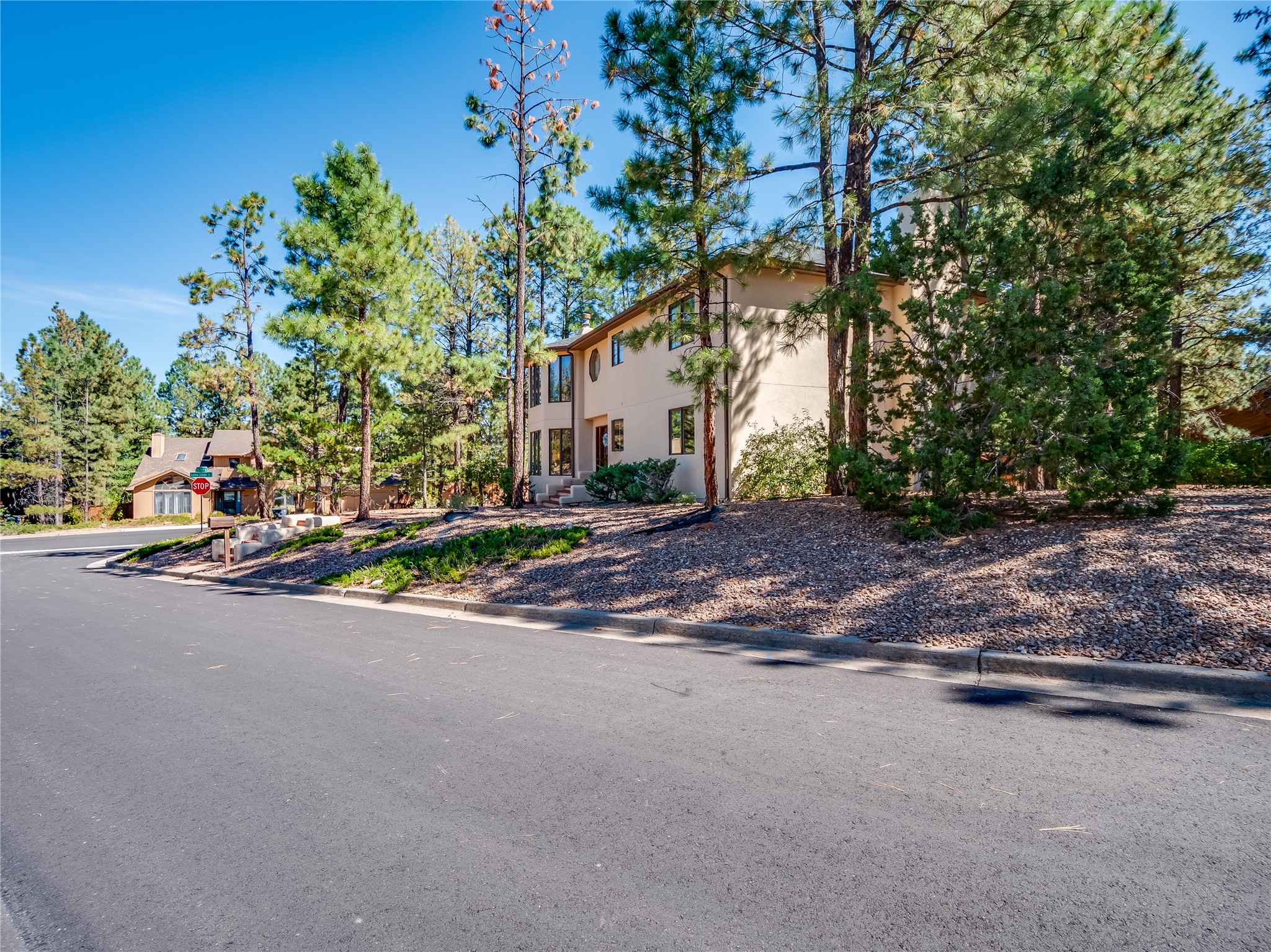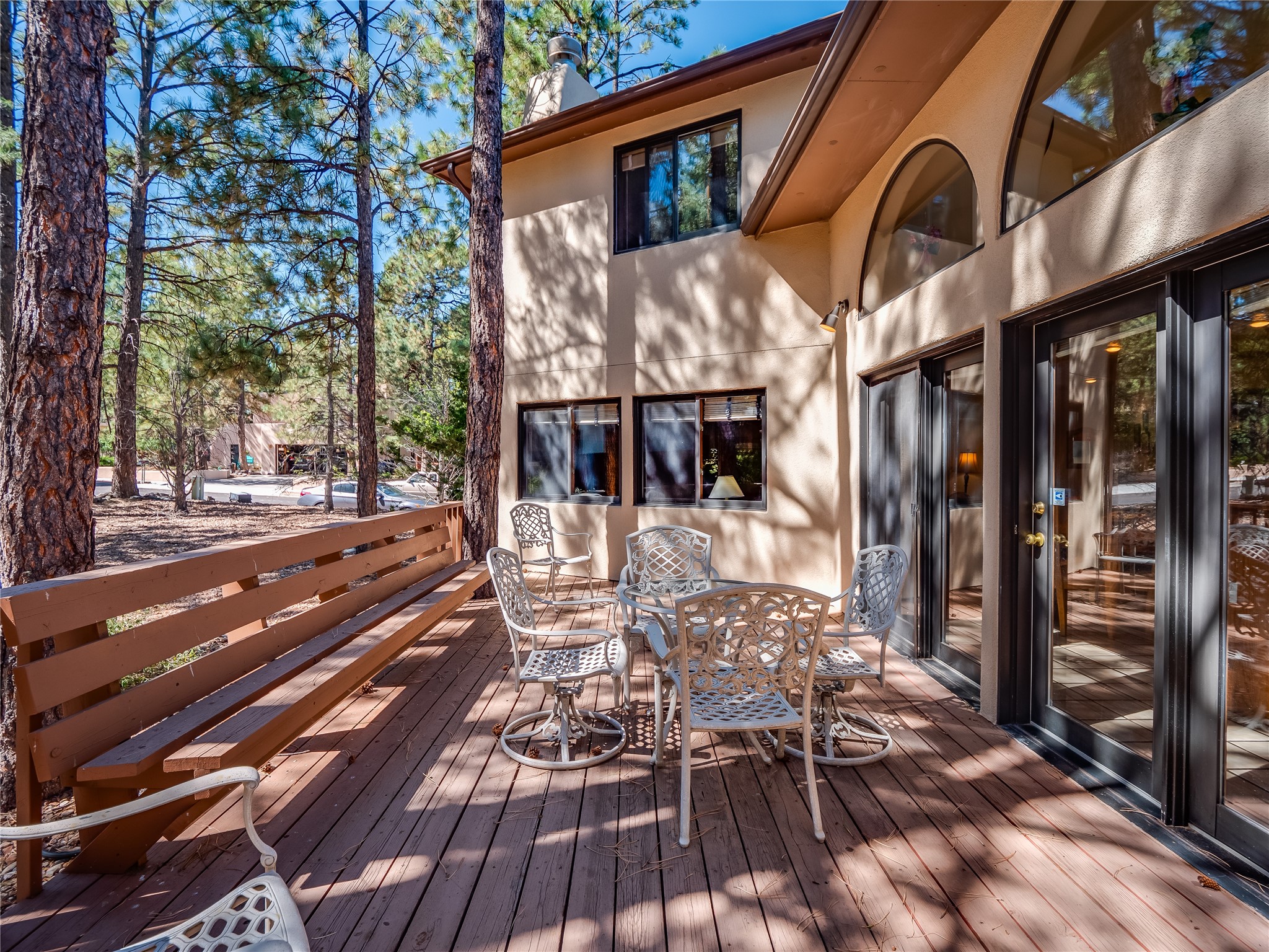 Step into this one-of-a-kind two-story home on an elevated corner lot located in the sought after Loma Linda neighborhood. Low maintenance front and rear yar. Roof and exterior stucco were replaced just three years ago, ensuring both durability and curb appeal. The open foyer boasts a grand staircase with tile flooring and a deep storage closet. Beyond the arched entryways lies a bright, carpeted living room and dining space featuring a wall of windows and a wood-burning fireplace. A wood banister separates the elevated dining area, perfect for intimate dinner parties. The kitchen features tile flooring that complements the abundance of rich wood cabinets, offering ample storage for all your cooking essentials. Tile countertops and matching tile backsplash add a touch of elegance, while the large center island serves as a true focal point, complete with a gas cooktop. The kitchen also boasts stainless steel appliances, including a double oven. Expansive counter space provides plenty of room for meal preparation and entertaining, while glass doors offer natural light and open onto a large backyard and deck. The deck, complete with built-in seating, creates an ideal space for hosting outdoor gatherings, BBQs, and relaxing under the stars. Adjacent to the kitchen is the family room, with a wood-burning fireplace as the focal point, framed by custom wood-built cabinets. This floor also includes a versatile guest bedroom/office, a guest bathroom with a walk-in shower and a convenient laundry room. Upstairs, two nicely sized guest bedrooms with carpet share a full guest bath. The spacious primary en-suite boasts a wall of windows that floods the space in natural light and a large walk-in closet with built-in organizers. The en-suite bath features a double sink vanity, a deep jetted tub with a tile surround, and a tiled walk-in shower. Located near parks, horse stables, and the golf course, this is a must-see!