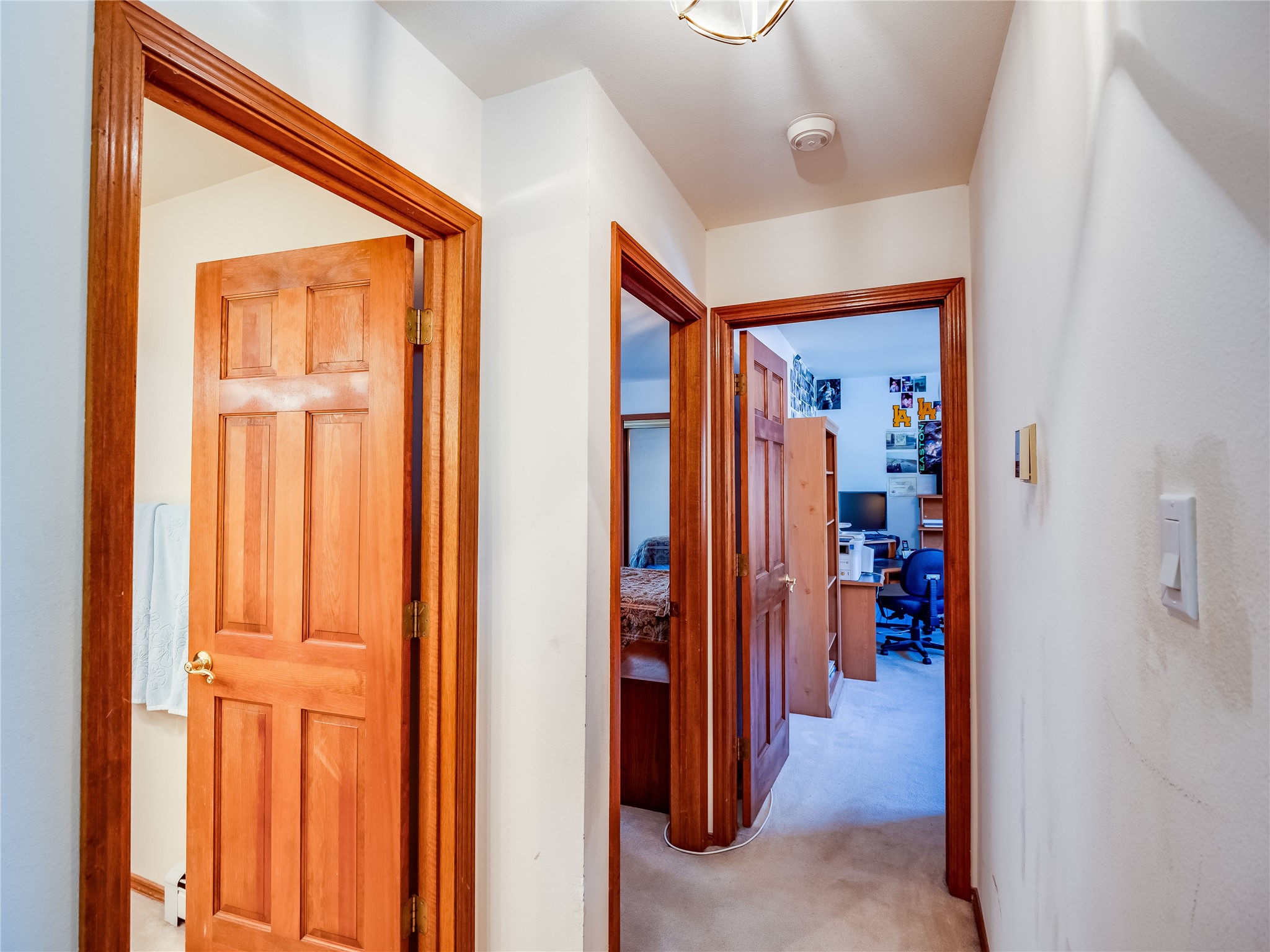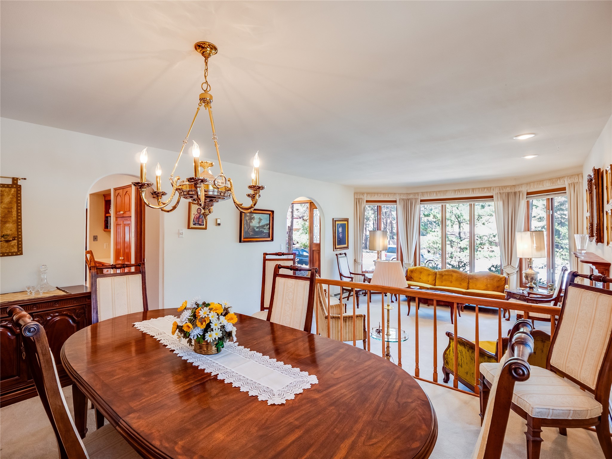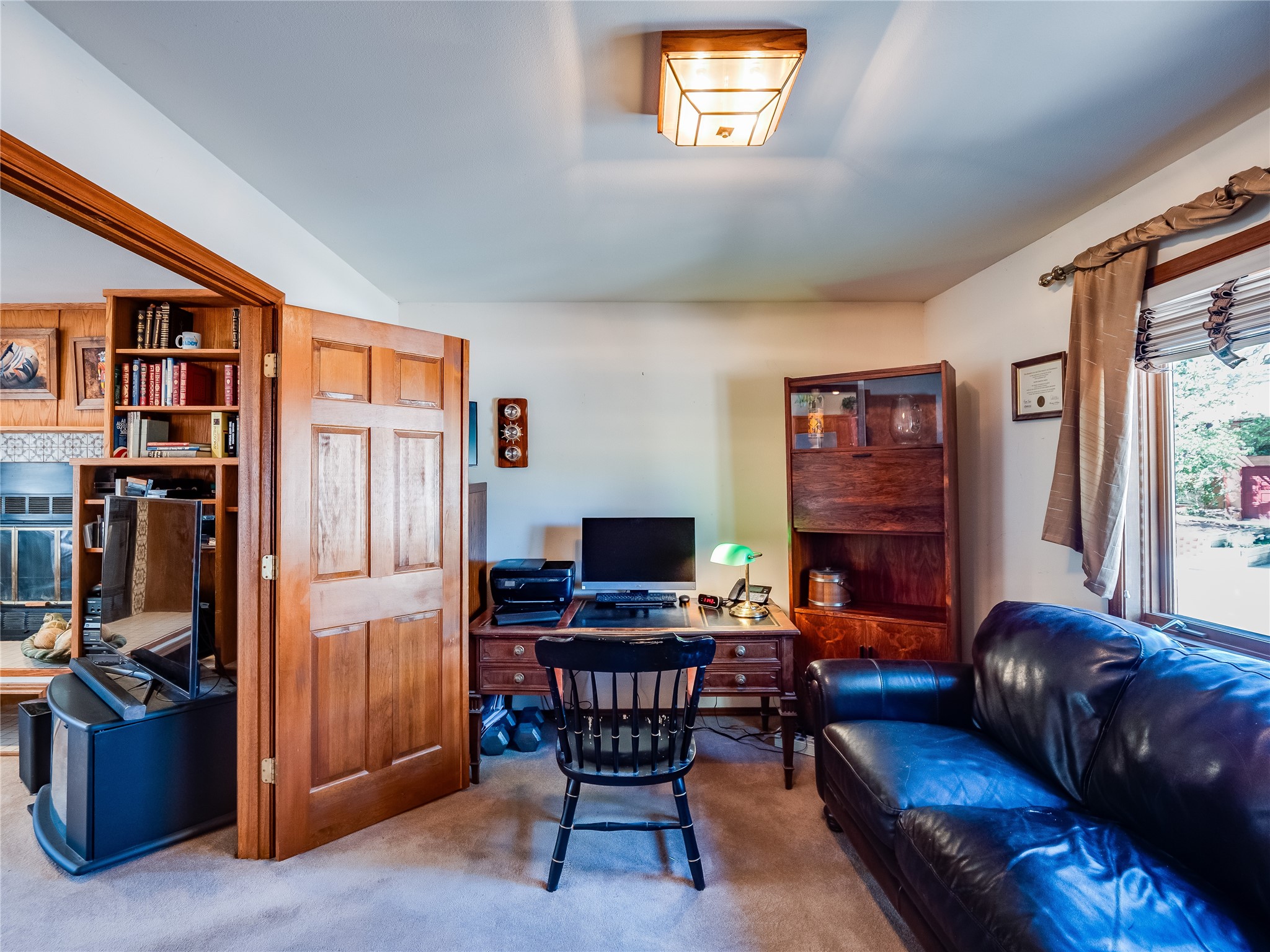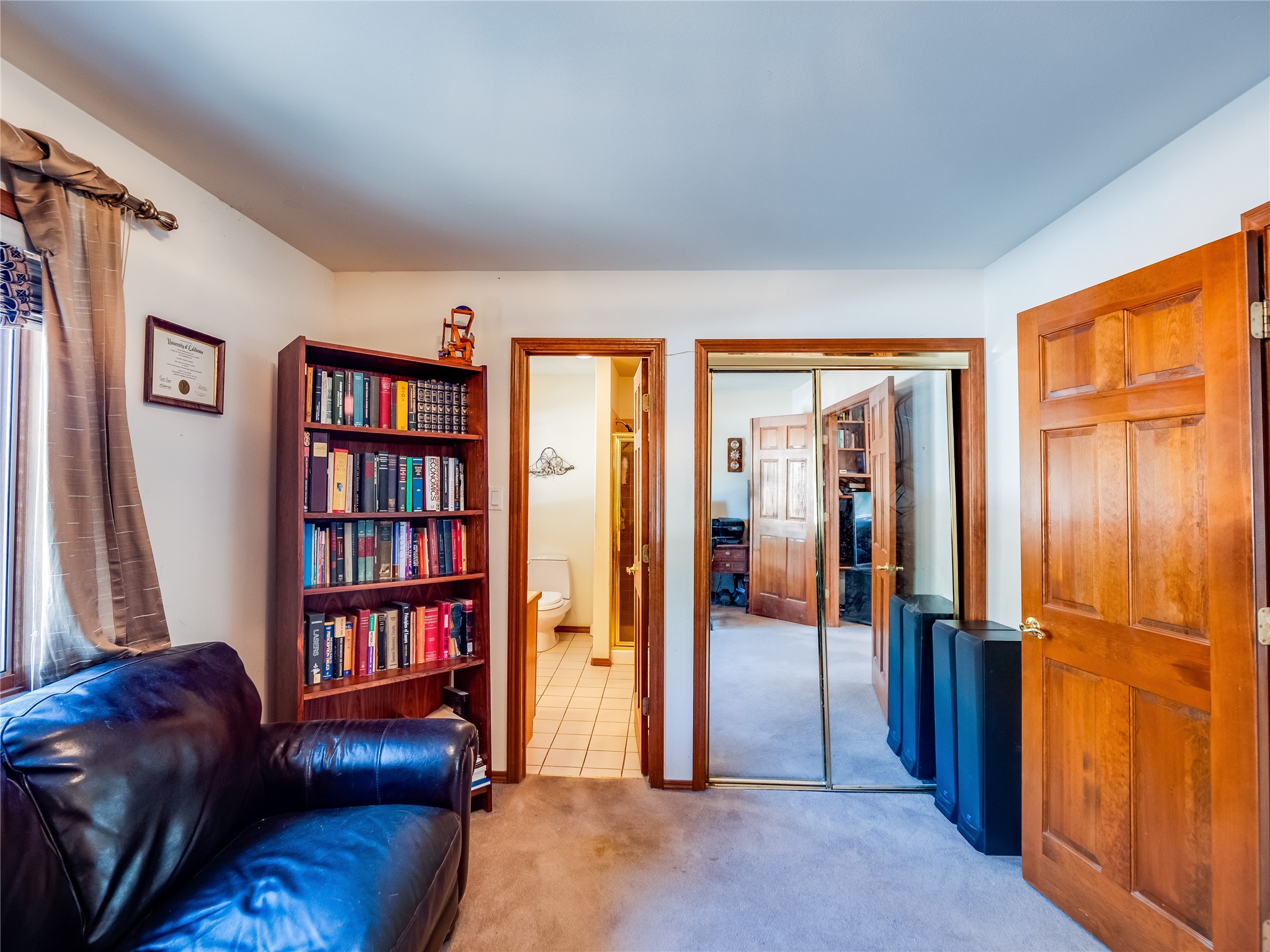 Step into this one-of-a-kind two-story home on an elevated corner lot located in the sought after Loma Linda neighborhood. Low maintenance front and rear yar. Roof and exterior stucco were replaced just three years ago, ensuring both durability and curb appeal. The open foyer boasts a grand staircase with tile flooring and a deep storage closet. Beyond the arched entryways lies a bright, carpeted living room and dining space featuring a wall of windows and a wood-burning fireplace. A wood banister separates the elevated dining area, perfect for intimate dinner parties. The kitchen features tile flooring that complements the abundance of rich wood cabinets, offering ample storage for all your cooking essentials. Tile countertops and matching tile backsplash add a touch of elegance, while the large center island serves as a true focal point, complete with a gas cooktop. The kitchen also boasts stainless steel appliances, including a double oven. Expansive counter space provides plenty of room for meal preparation and entertaining, while glass doors offer natural light and open onto a large backyard and deck. The deck, complete with built-in seating, creates an ideal space for hosting outdoor gatherings, BBQs, and relaxing under the stars. Adjacent to the kitchen is the family room, with a wood-burning fireplace as the focal point, framed by custom wood-built cabinets. This floor also includes a versatile guest bedroom/office, a guest bathroom with a walk-in shower and a convenient laundry room. Upstairs, two nicely sized guest bedrooms with carpet share a full guest bath. The spacious primary en-suite boasts a wall of windows that floods the space in natural light and a large walk-in closet with built-in organizers. The en-suite bath features a double sink vanity, a deep jetted tub with a tile surround, and a tiled walk-in shower. Located near parks, horse stables, and the golf course, this is a must-see!