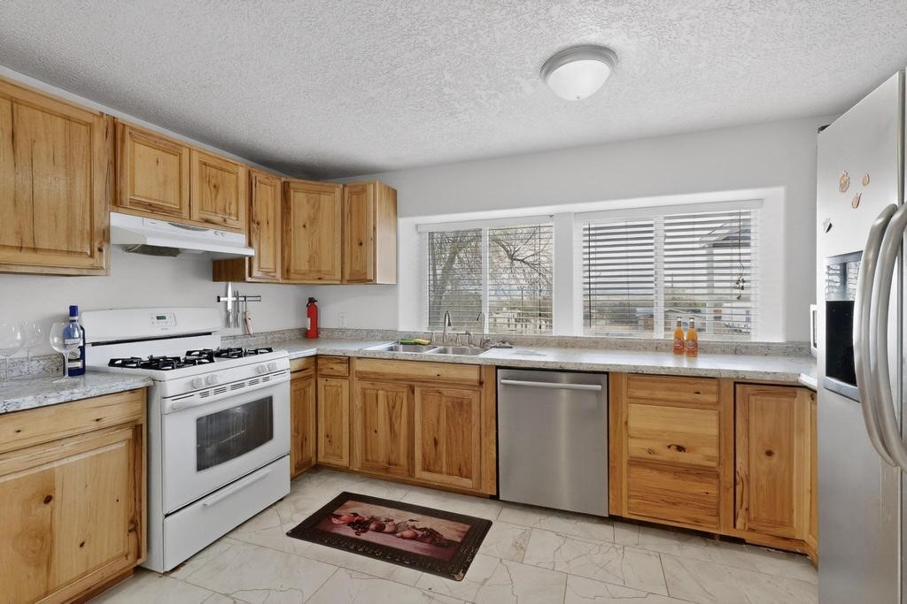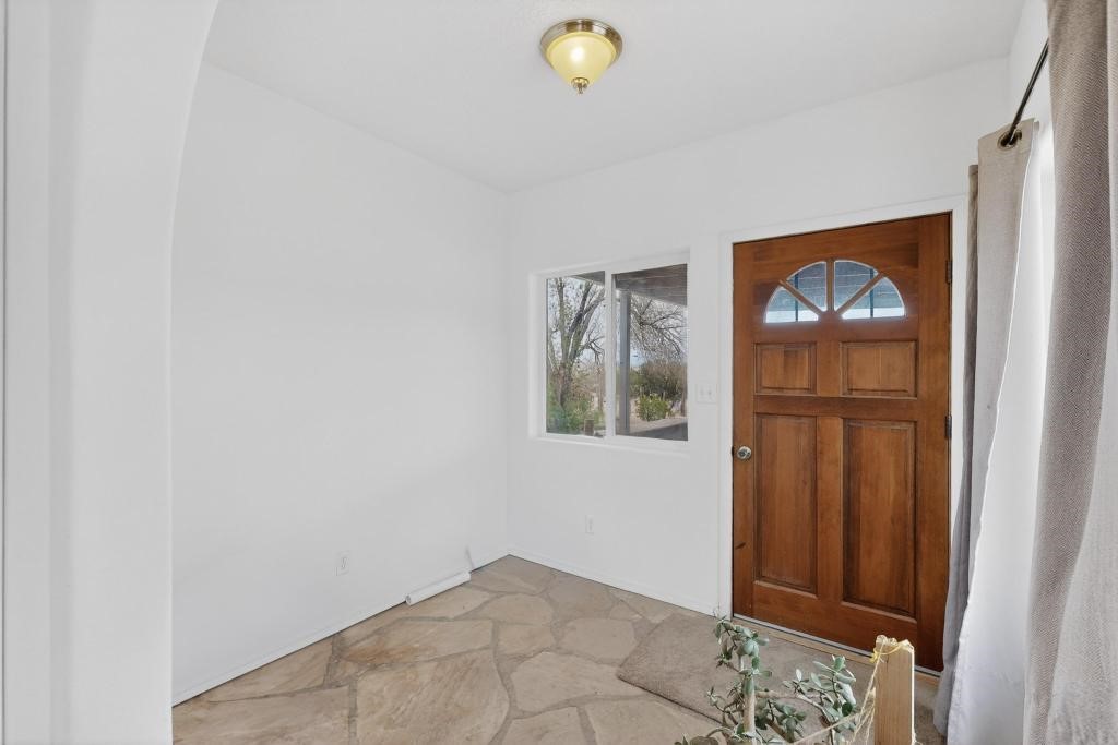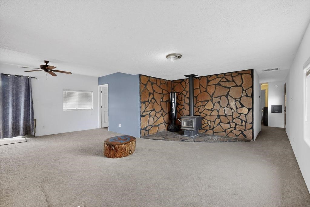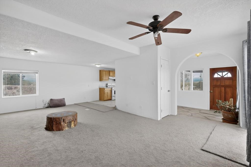 Manufactured home with a spacious addition on a permanent foundation, situated on .66 acres at the end of a private road and backing directly to BLM land for exceptional privacy and open space. This 3 bedroom, 2 bath home features an updated kitchen with a Bosch dishwasher (2 years old) and a large open concept living and dining area designed for comfortable everyday living. The tile in the kitchen and laundry area has been replaced, and new carpet has been installed in the main living area and hallway.Recent upgrades include a hot water heater (1.5 years old), a washer and dryer (3 years old), added Ethernet for enhanced connectivity, and a reverse osmosis system with water softener for improved water quality. The swamp cooler and septic tank were replaced when the home was purchased in 2022 and are newer as well. Natural gas service and community water provide efficiency and convenience.The property is fully fenced around the perimeter and includes a one car garage plus a large outbuilding ideal for a workshop, storage, or hobby space. Enjoy the outdoor adobe oven (horno), and mature fruit trees in this peaceful setting. A rare opportunity to own a home with direct access to public land while enjoying privacy, usable acreage, and thoughtful modern improvements.