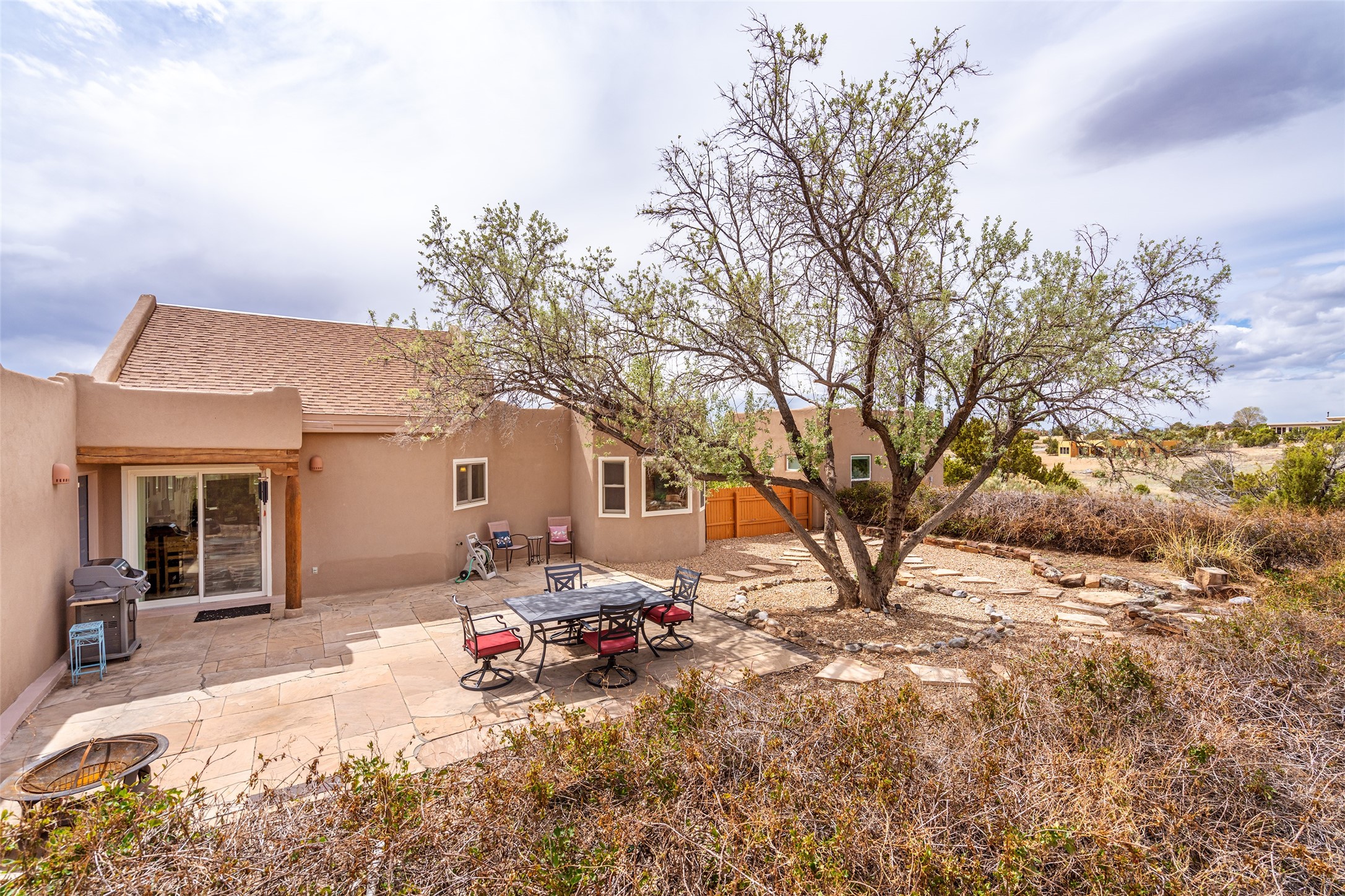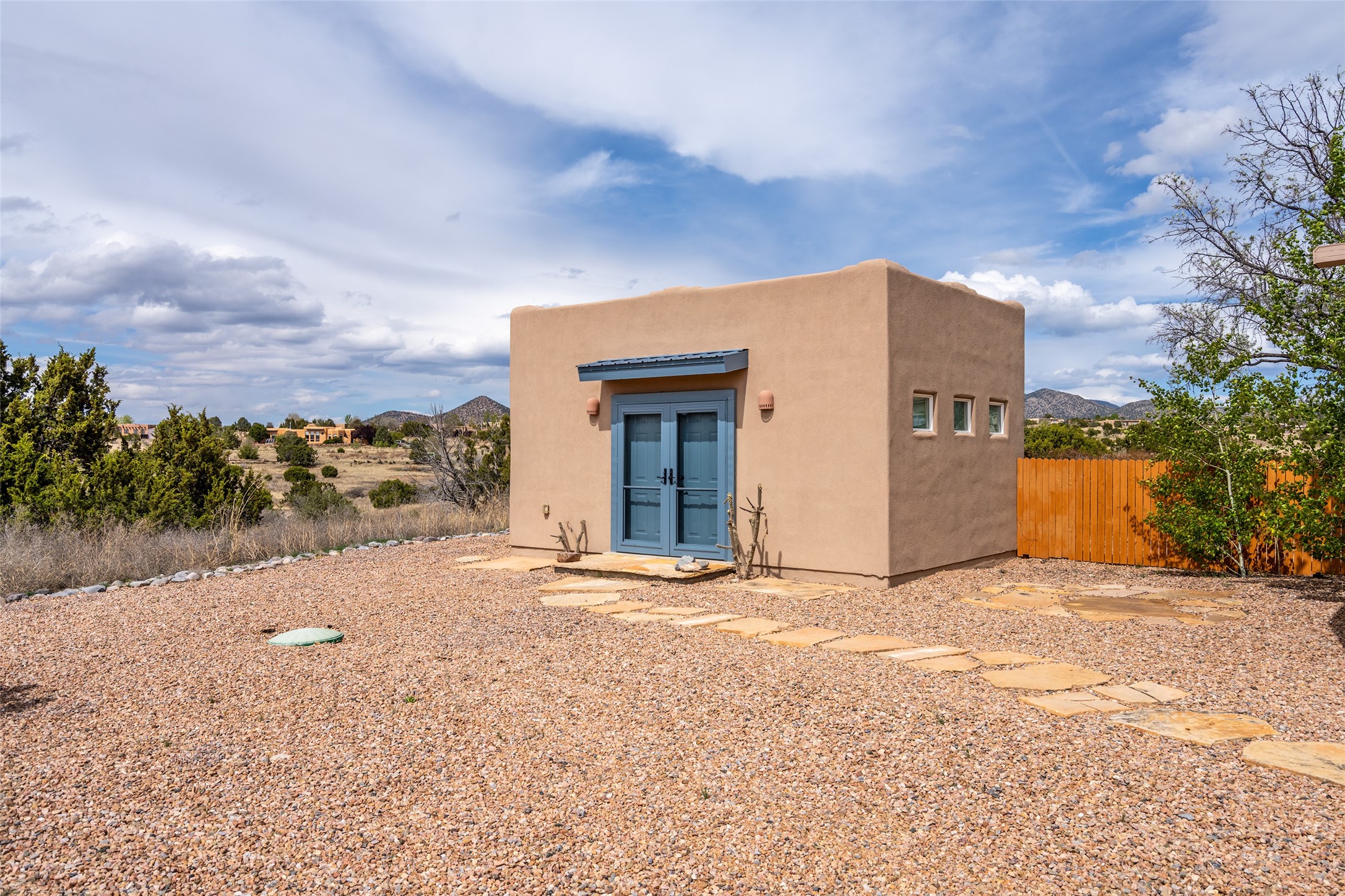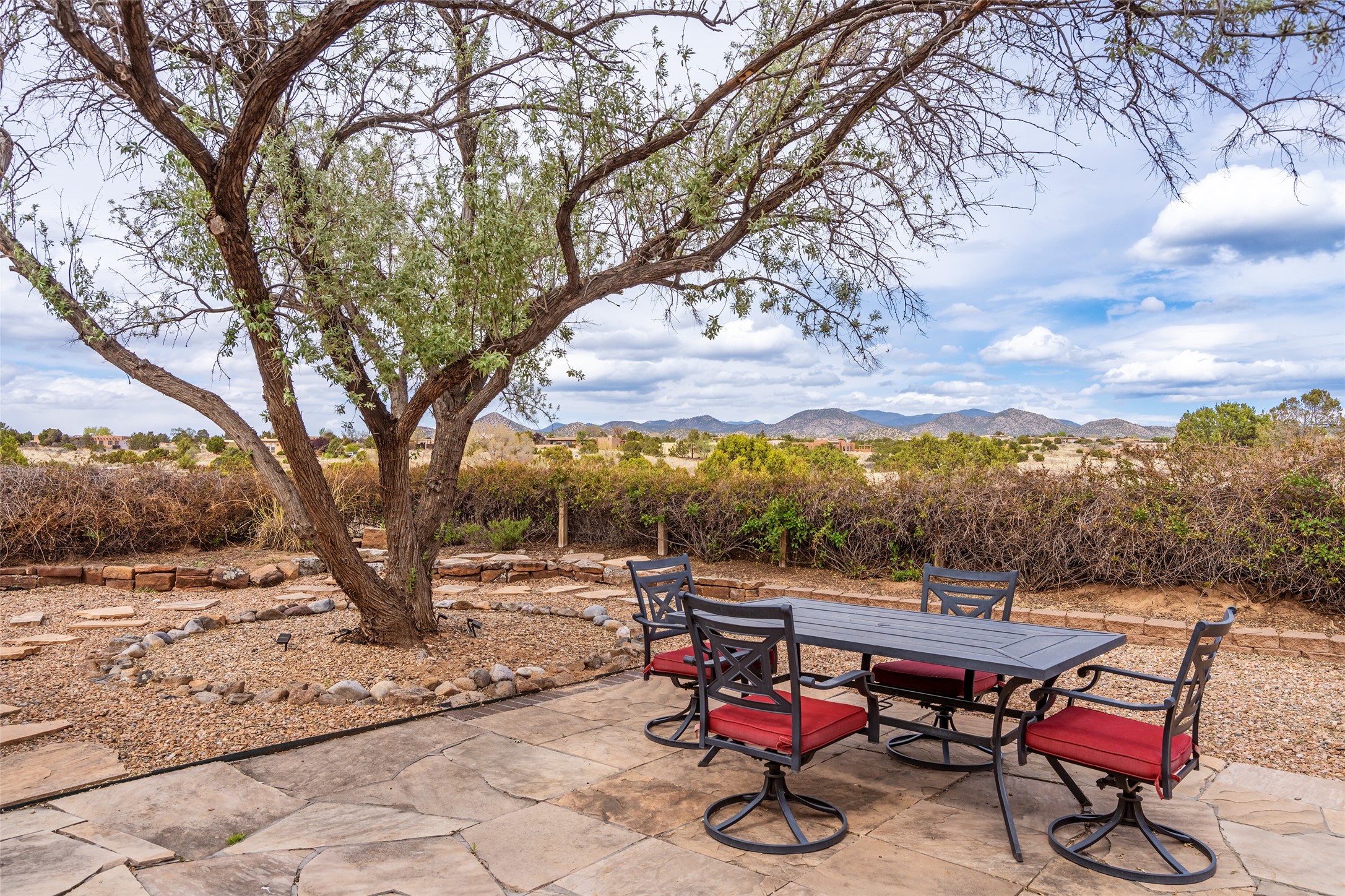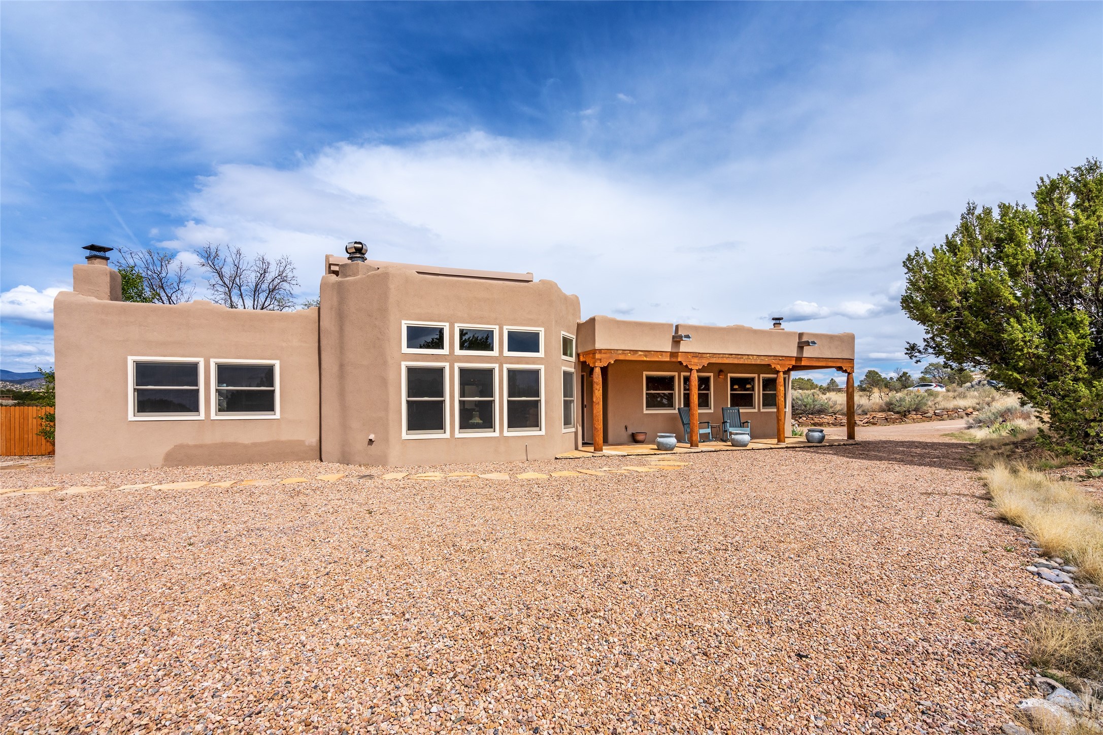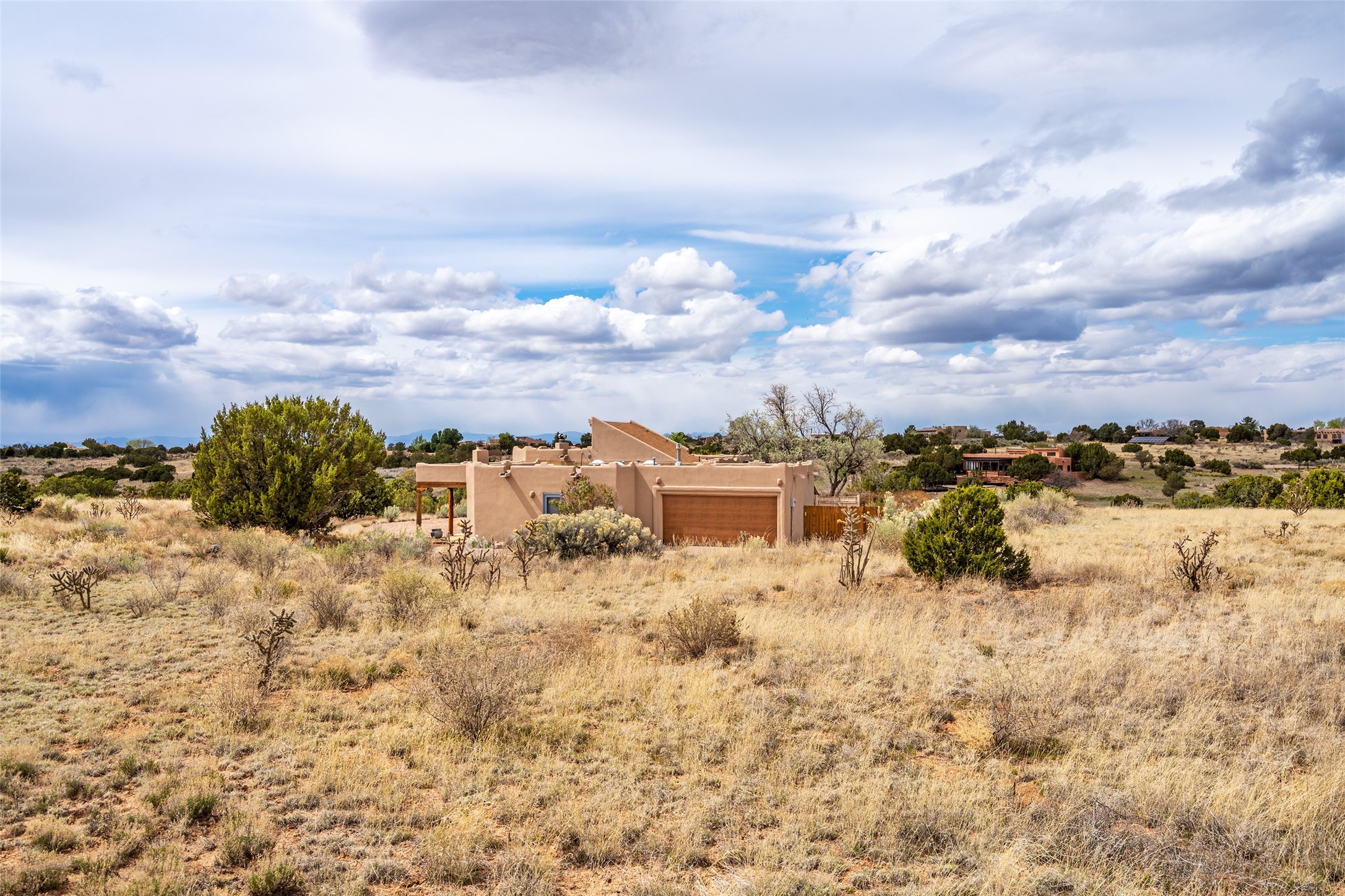 A Serene Eldorado Sanctuary with Southwestern Soul.Experience the authentic Northern New Mexico lifestyle in this charming 3-bedroom, 2-bath residence, nestled on a generous two-acre lot within the coveted community of Eldorado. Combining traditional Pueblo-style aesthetics with modern comforts, 20 Mariano Road offers a peaceful retreat just minutes from the vibrant culture of downtown Santa Fe.The Heart of the Home is anchored by an open-concept living, dining, and kitchen area designed with a modern take on classic Santa Fe style. A full chef's kitchen crowned by lofted ceilings, complete with ample workspace and updated appliances, boasts stunning views of the Sangre de Cristo Mountains. The living spaces are bathed in natural light and feature wood-beamed ceilings, while a traditional kiva fireplace and a wall of southwest-facing passive solar windows ensure the home remains warm and inviting year-round.The back patio is a true slice of serenity, offering sweeping mountain vistas centered around a majestic mature tree. The expansive lot slopes gently toward a protected greenbelt, providing an enhanced sense of privacy and a quiet connection to the natural landscape.The thoughtful floor plan provides excellent separation between living areas. The primary suite features bright windows, a full bathroom with dual sinks, and its own cozy kiva fireplace. Two additional bedrooms are located at the opposite end of the home; one includes a third kiva and a private exterior entrance, making it an ideal candidate for a secluded home office.A standout feature of the property is the marvelous free-standing studio. This heated creative space includes a sink and elegant double doors; currently utilized for music production, it could easily transition into a yoga studio, art space, or a future casita conversion.This home has been lovingly maintained, from the pristine stucco to the manicured native landscaping. Notable upgrades include: New insulated windows throughout, brand new washer and dryer, newer hot water heater and kitchen appliances, attached two-car garage with new garage door, saltwater conditioner.This property is in true move-in-ready condition and waiting for its next chapter.