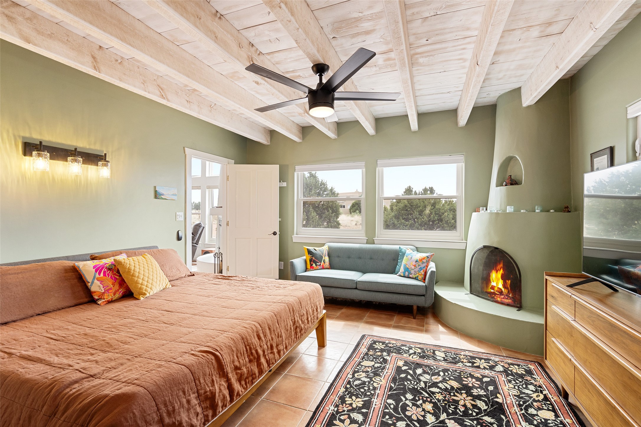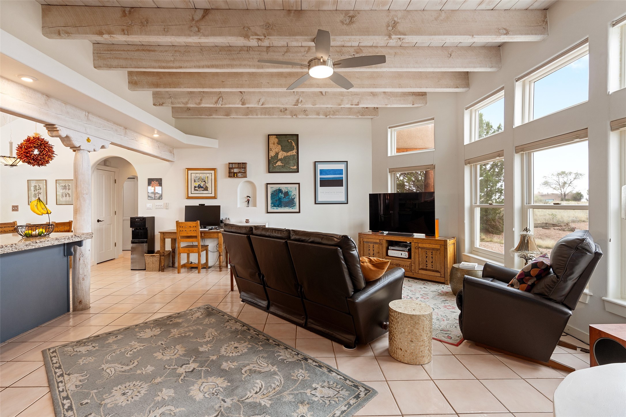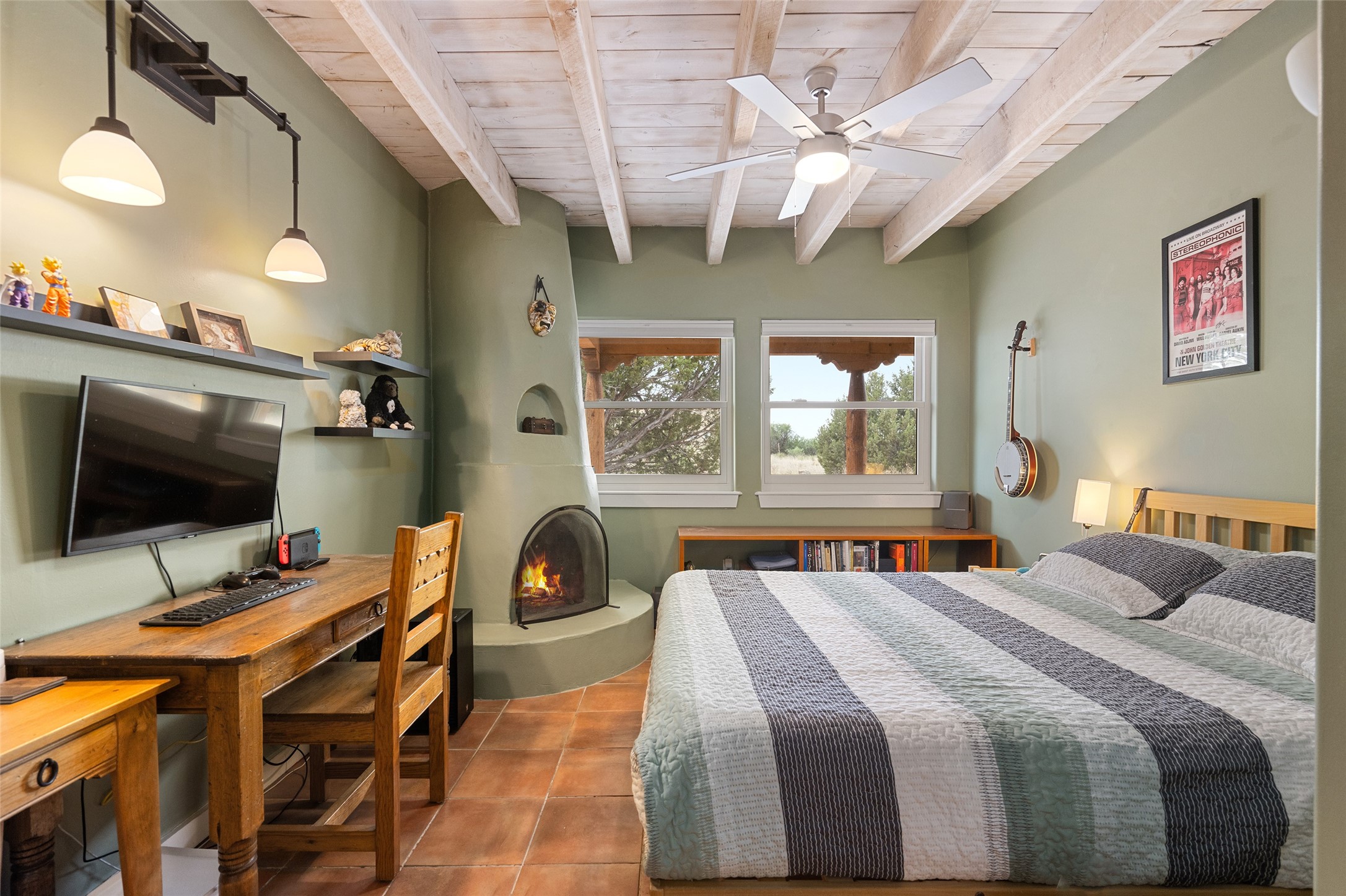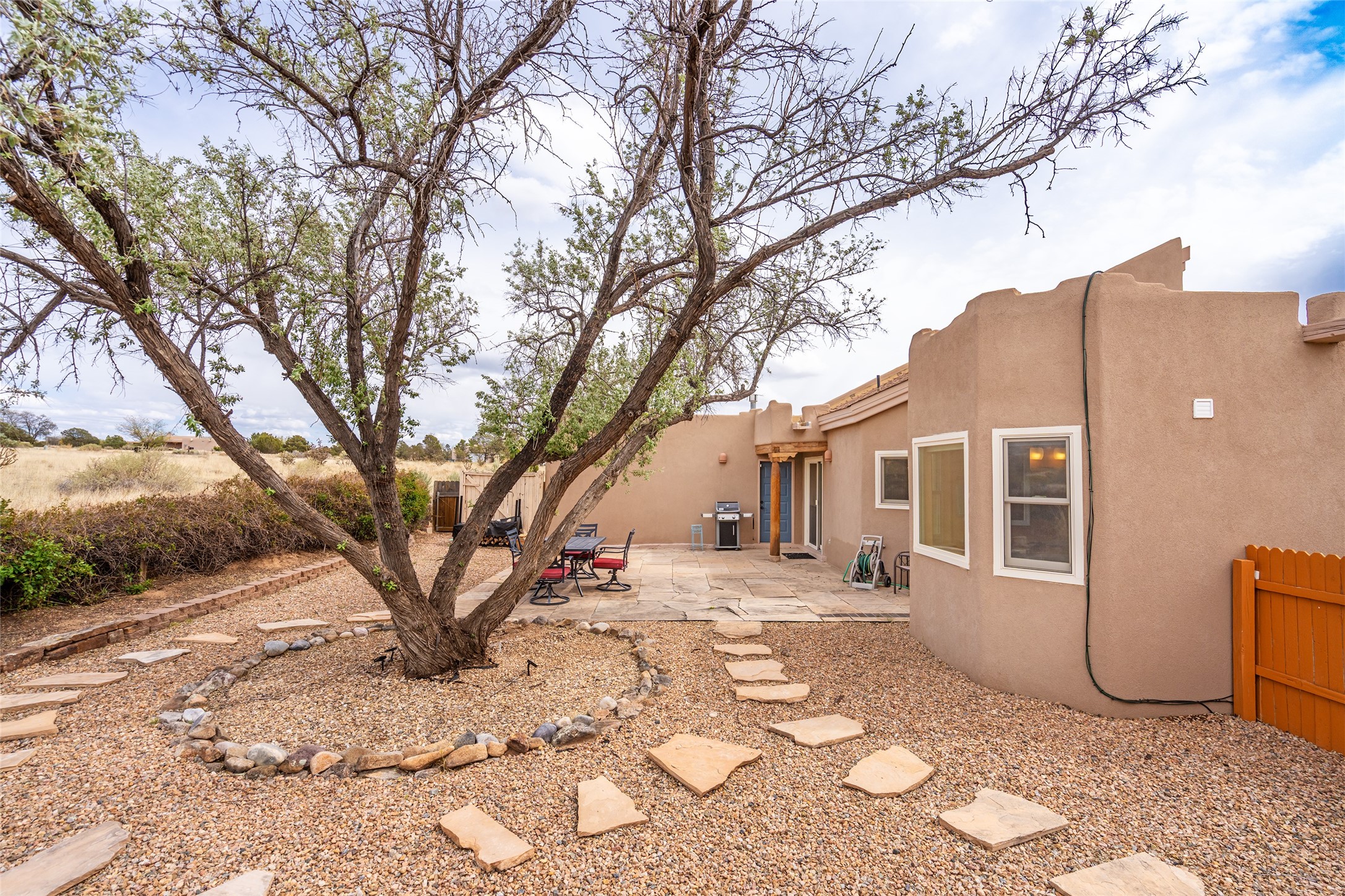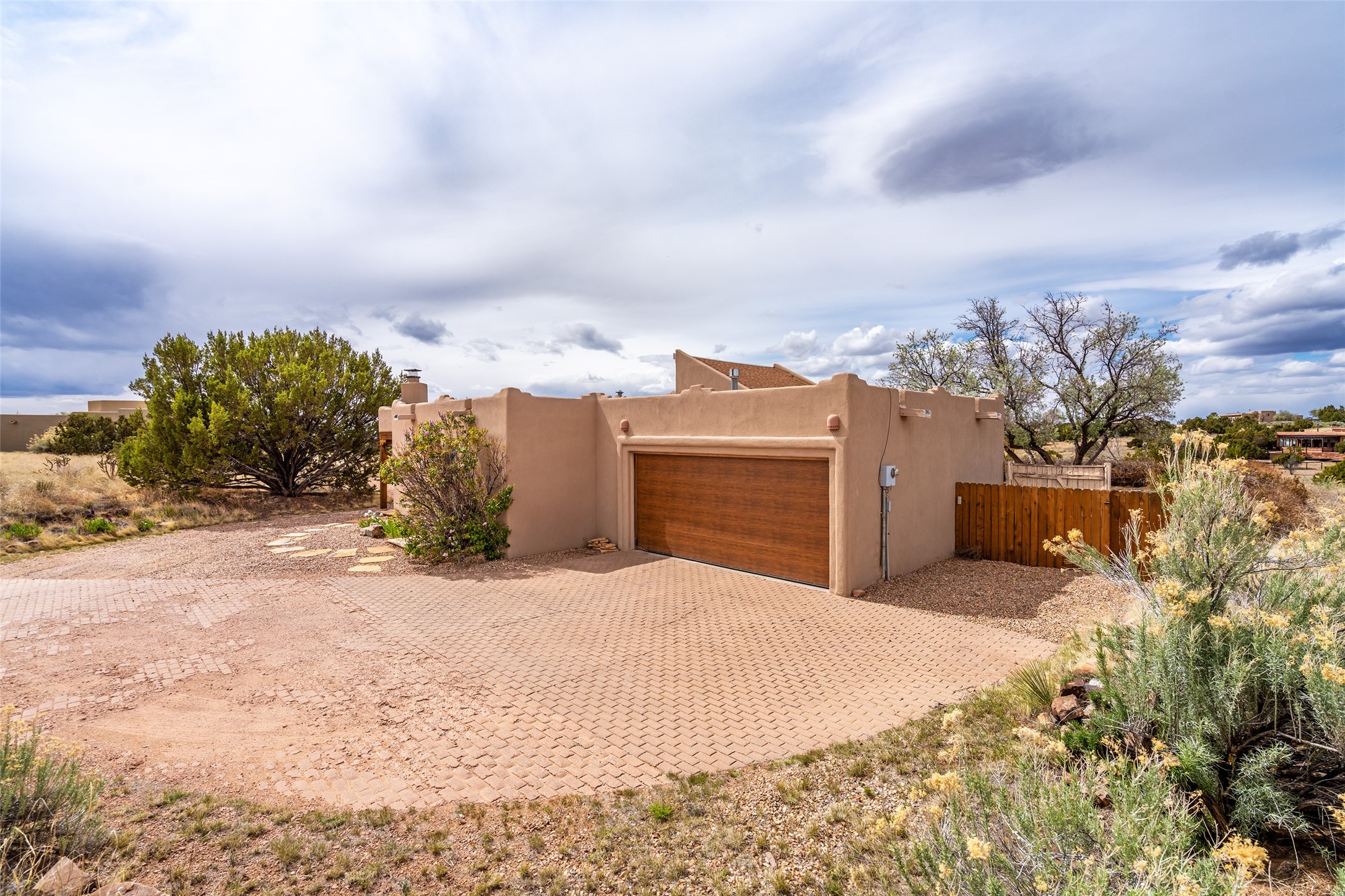 A Serene Eldorado Sanctuary with Southwestern Soul.Experience the authentic Northern New Mexico lifestyle in this charming 3-bedroom, 2-bath residence, nestled on a generous two-acre lot within the coveted community of Eldorado. Combining traditional Pueblo-style aesthetics with modern comforts, 20 Mariano Road offers a peaceful retreat just minutes from the vibrant culture of downtown Santa Fe.The Heart of the Home is anchored by an open-concept living, dining, and kitchen area designed with a modern take on classic Santa Fe style. A full chef's kitchen crowned by lofted ceilings, complete with ample workspace and updated appliances, boasts stunning views of the Sangre de Cristo Mountains. The living spaces are bathed in natural light and feature wood-beamed ceilings, while a traditional kiva fireplace and a wall of southwest-facing passive solar windows ensure the home remains warm and inviting year-round.The back patio is a true slice of serenity, offering sweeping mountain vistas centered around a majestic mature tree. The expansive lot slopes gently toward a protected greenbelt, providing an enhanced sense of privacy and a quiet connection to the natural landscape.The thoughtful floor plan provides excellent separation between living areas. The primary suite features bright windows, a full bathroom with dual sinks, and its own cozy kiva fireplace. Two additional bedrooms are located at the opposite end of the home; one includes a third kiva and a private exterior entrance, making it an ideal candidate for a secluded home office.A standout feature of the property is the marvelous free-standing studio. This heated creative space includes a sink and elegant double doors; currently utilized for music production, it could easily transition into a yoga studio, art space, or a future casita conversion.This home has been lovingly maintained, from the pristine stucco to the manicured native landscaping. Notable upgrades include: New insulated windows throughout, brand new washer and dryer, newer hot water heater and kitchen appliances, attached two-car garage with new garage door, saltwater conditioner.This property is in true move-in-ready condition and waiting for its next chapter.