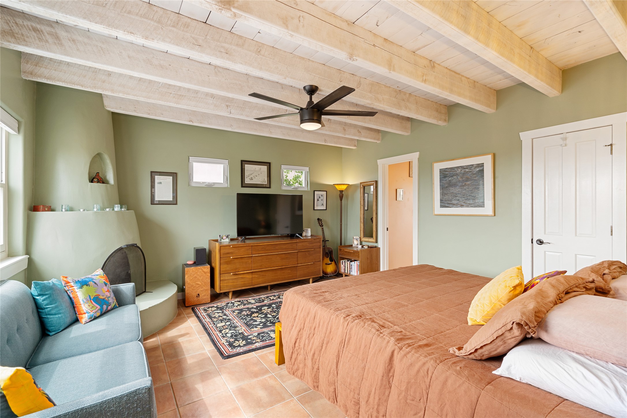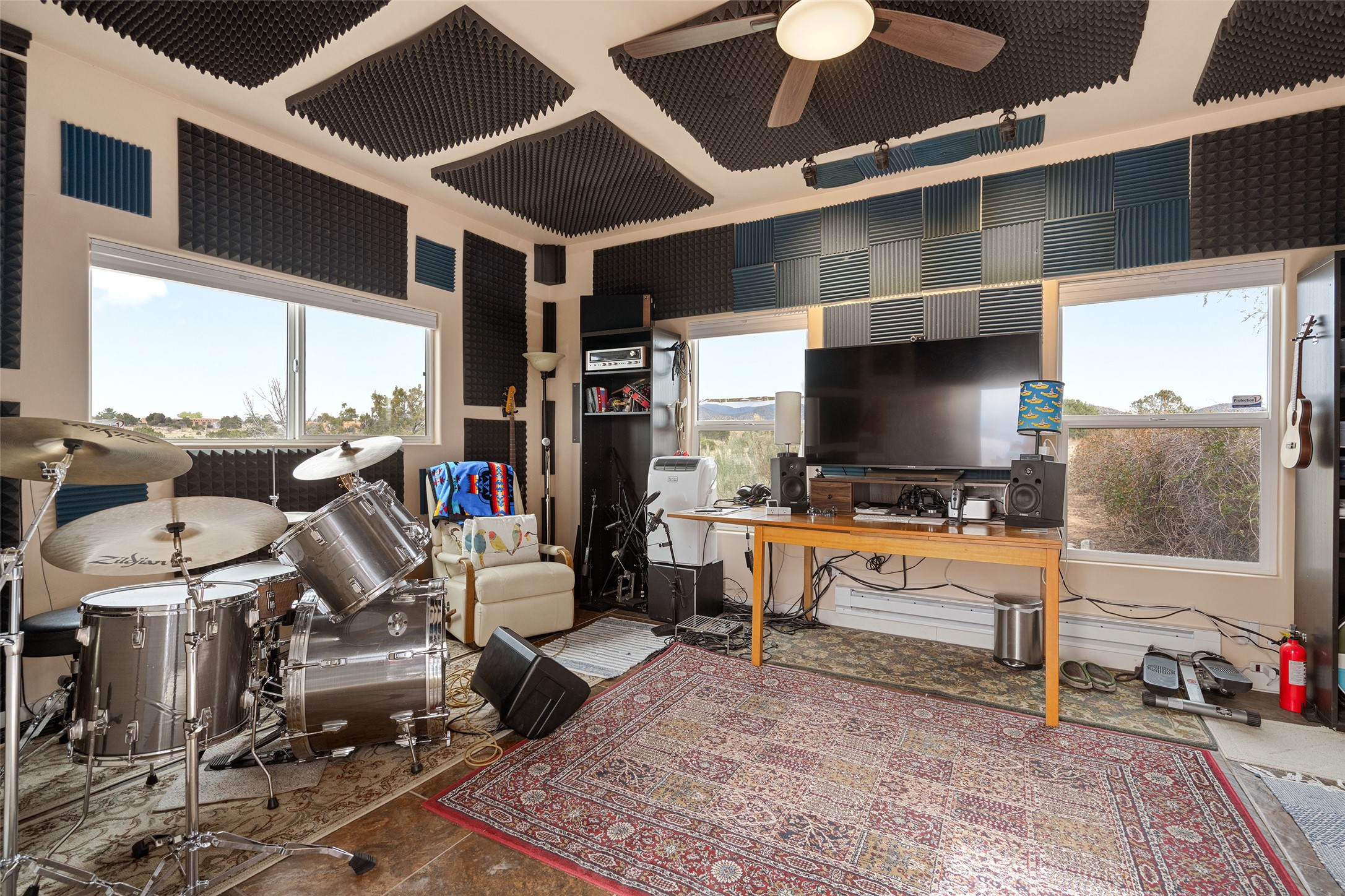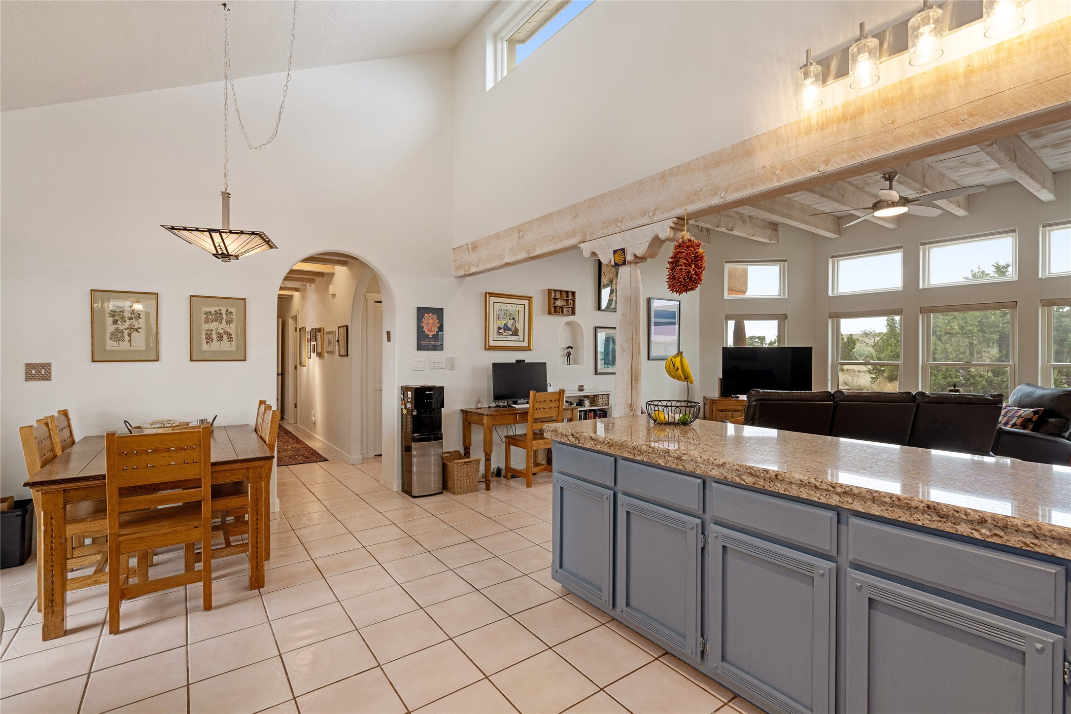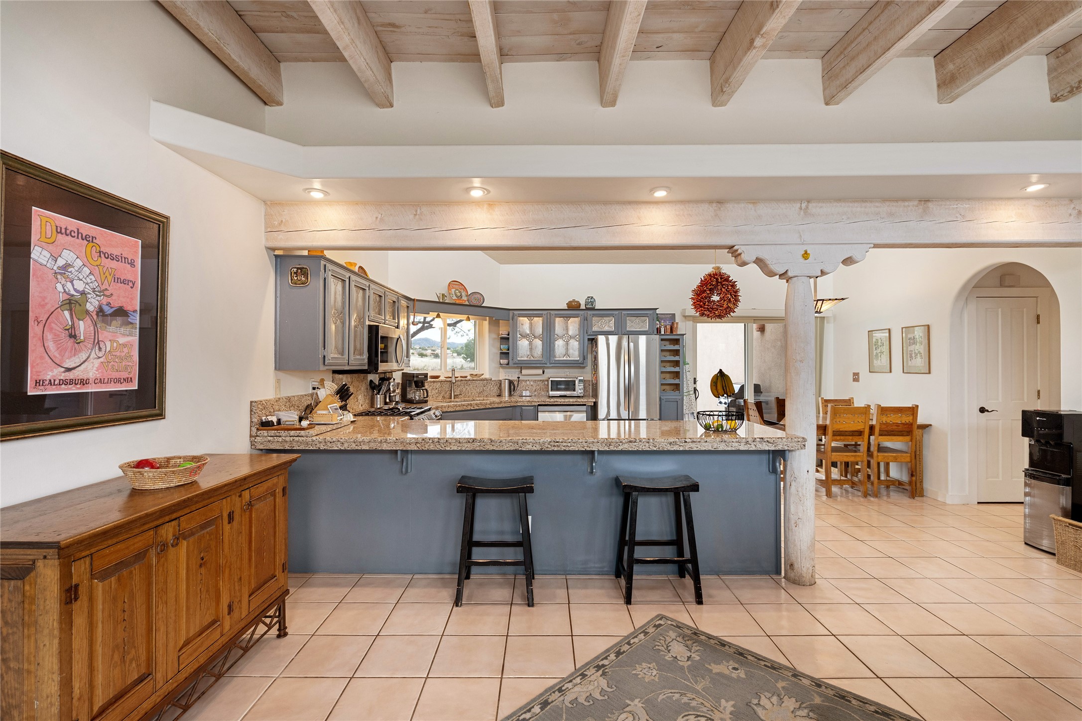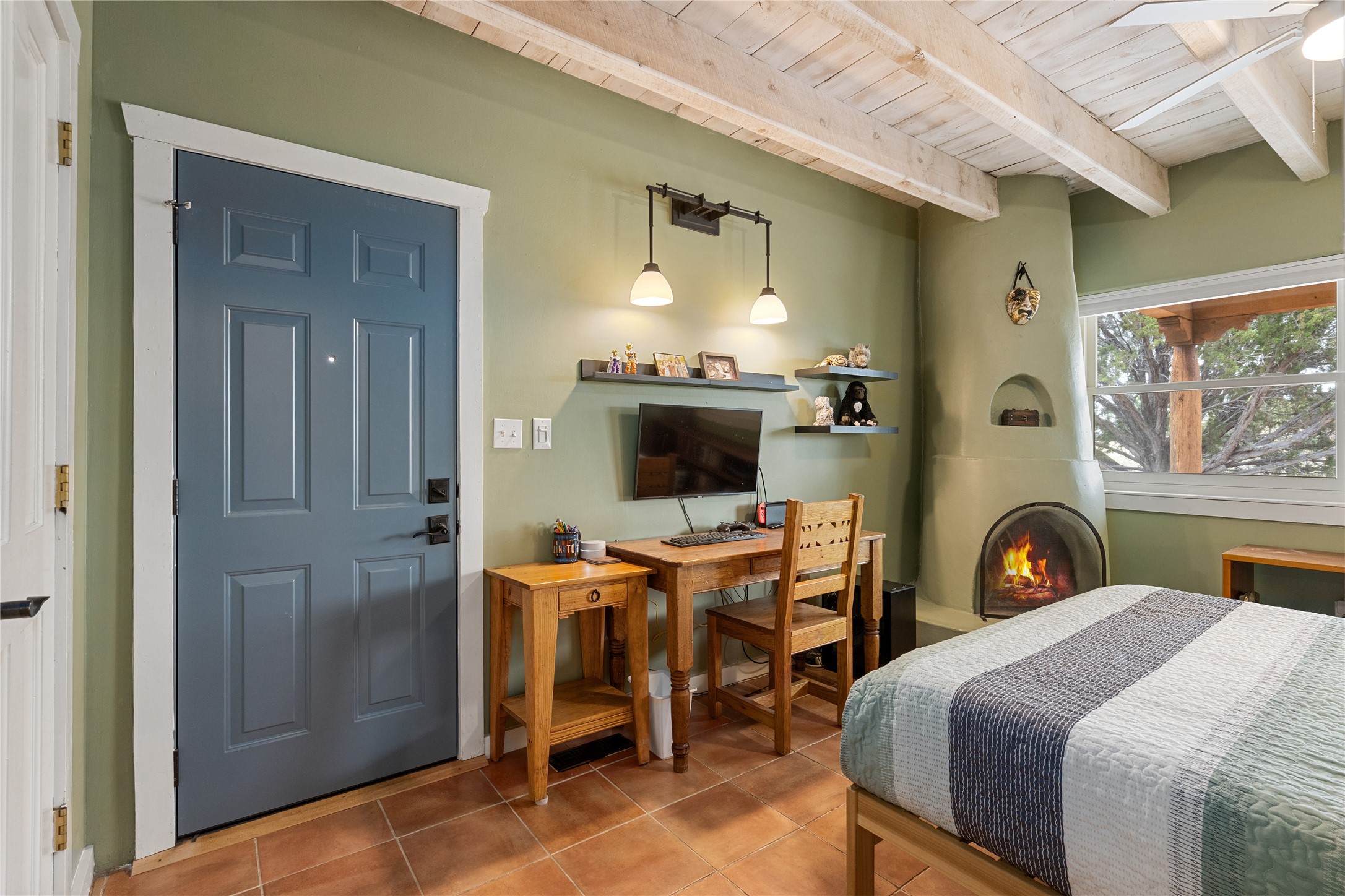 A Serene Eldorado Sanctuary with Southwestern Soul.Experience the authentic Northern New Mexico lifestyle in this charming 3-bedroom, 2-bath residence, nestled on a generous two-acre lot within the coveted community of Eldorado. Combining traditional Pueblo-style aesthetics with modern comforts, 20 Mariano Road offers a peaceful retreat just minutes from the vibrant culture of downtown Santa Fe.The Heart of the Home is anchored by an open-concept living, dining, and kitchen area designed with a modern take on classic Santa Fe style. A full chef's kitchen crowned by lofted ceilings, complete with ample workspace and updated appliances, boasts stunning views of the Sangre de Cristo Mountains. The living spaces are bathed in natural light and feature wood-beamed ceilings, while a traditional kiva fireplace and a wall of southwest-facing passive solar windows ensure the home remains warm and inviting year-round.The back patio is a true slice of serenity, offering sweeping mountain vistas centered around a majestic mature tree. The expansive lot slopes gently toward a protected greenbelt, providing an enhanced sense of privacy and a quiet connection to the natural landscape.The thoughtful floor plan provides excellent separation between living areas. The primary suite features bright windows, a full bathroom with dual sinks, and its own cozy kiva fireplace. Two additional bedrooms are located at the opposite end of the home; one includes a third kiva and a private exterior entrance, making it an ideal candidate for a secluded home office.A standout feature of the property is the marvelous free-standing studio. This heated creative space includes a sink and elegant double doors; currently utilized for music production, it could easily transition into a yoga studio, art space, or a future casita conversion.This home has been lovingly maintained, from the pristine stucco to the manicured native landscaping. Notable upgrades include: New insulated windows throughout, brand new washer and dryer, newer hot water heater and kitchen appliances, attached two-car garage with new garage door, saltwater conditioner.This property is in true move-in-ready condition and waiting for its next chapter.