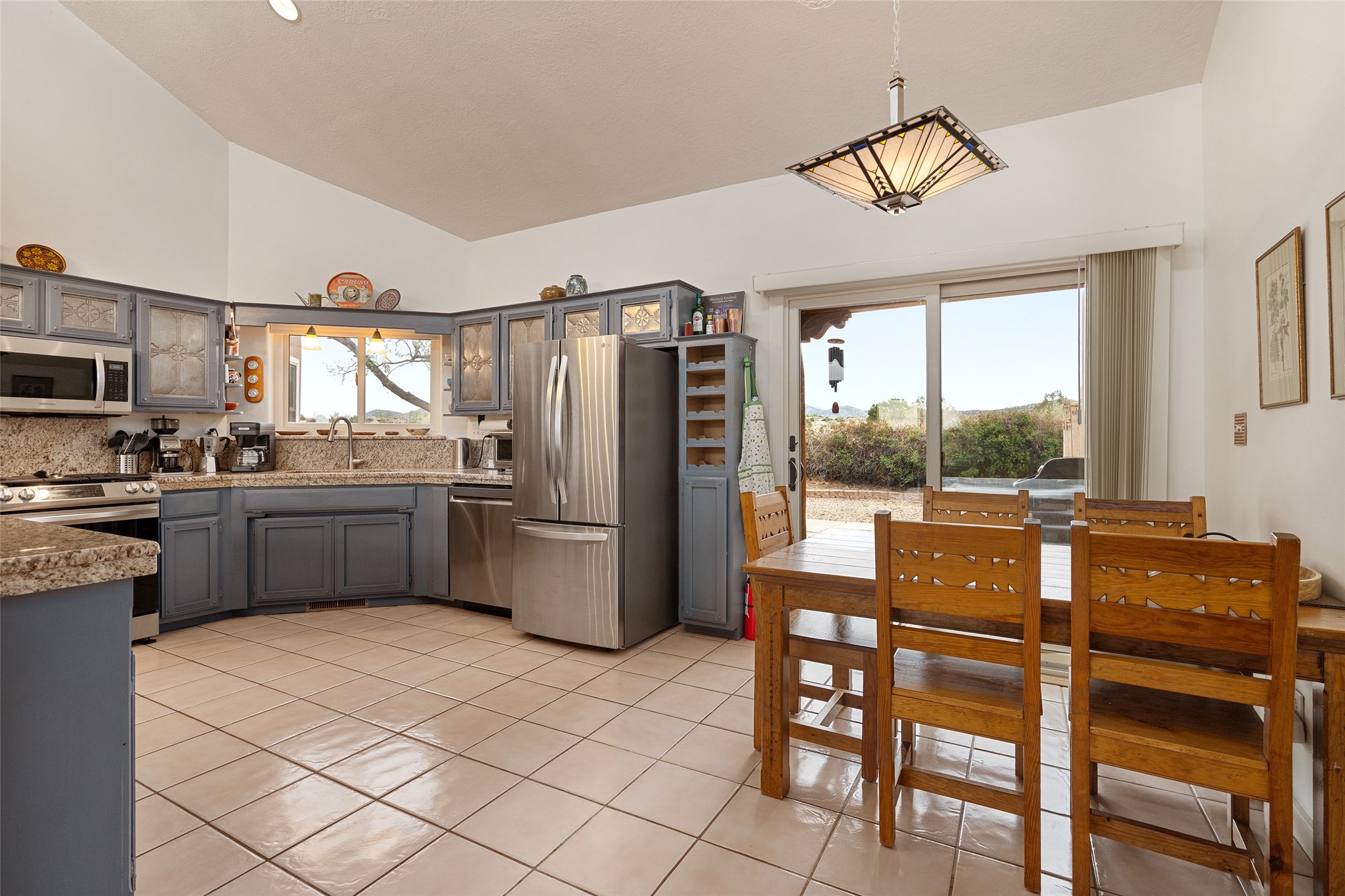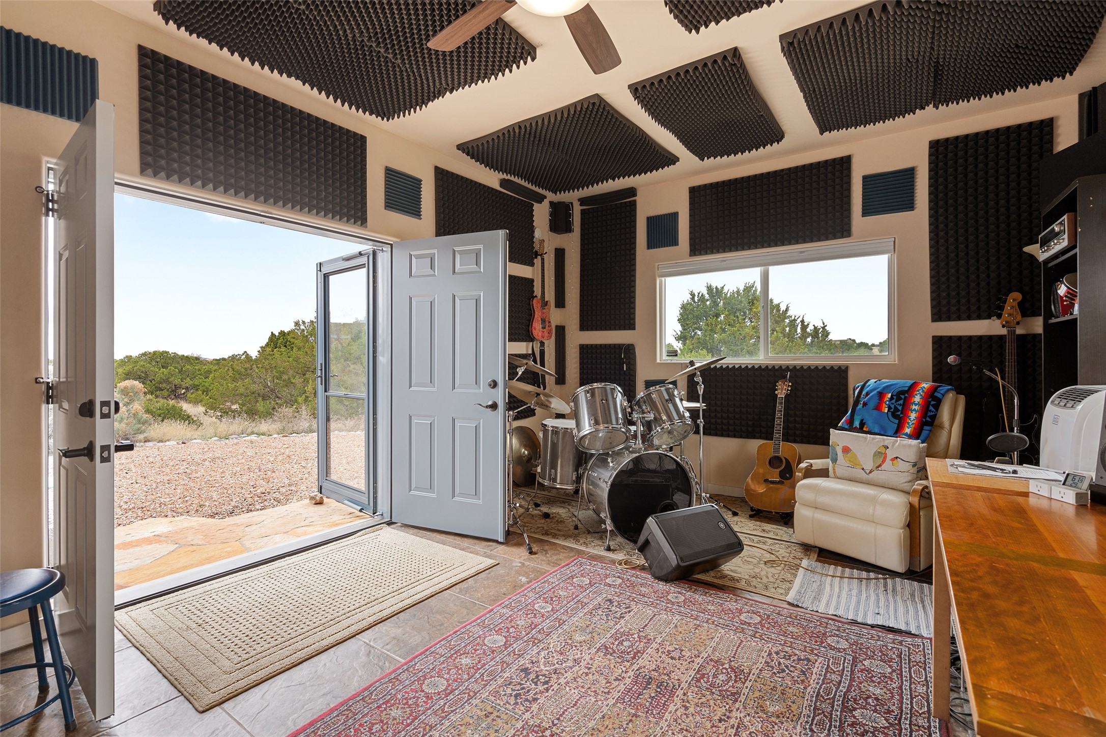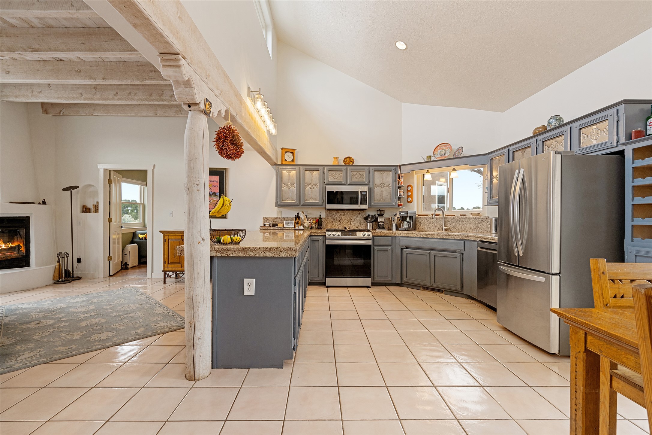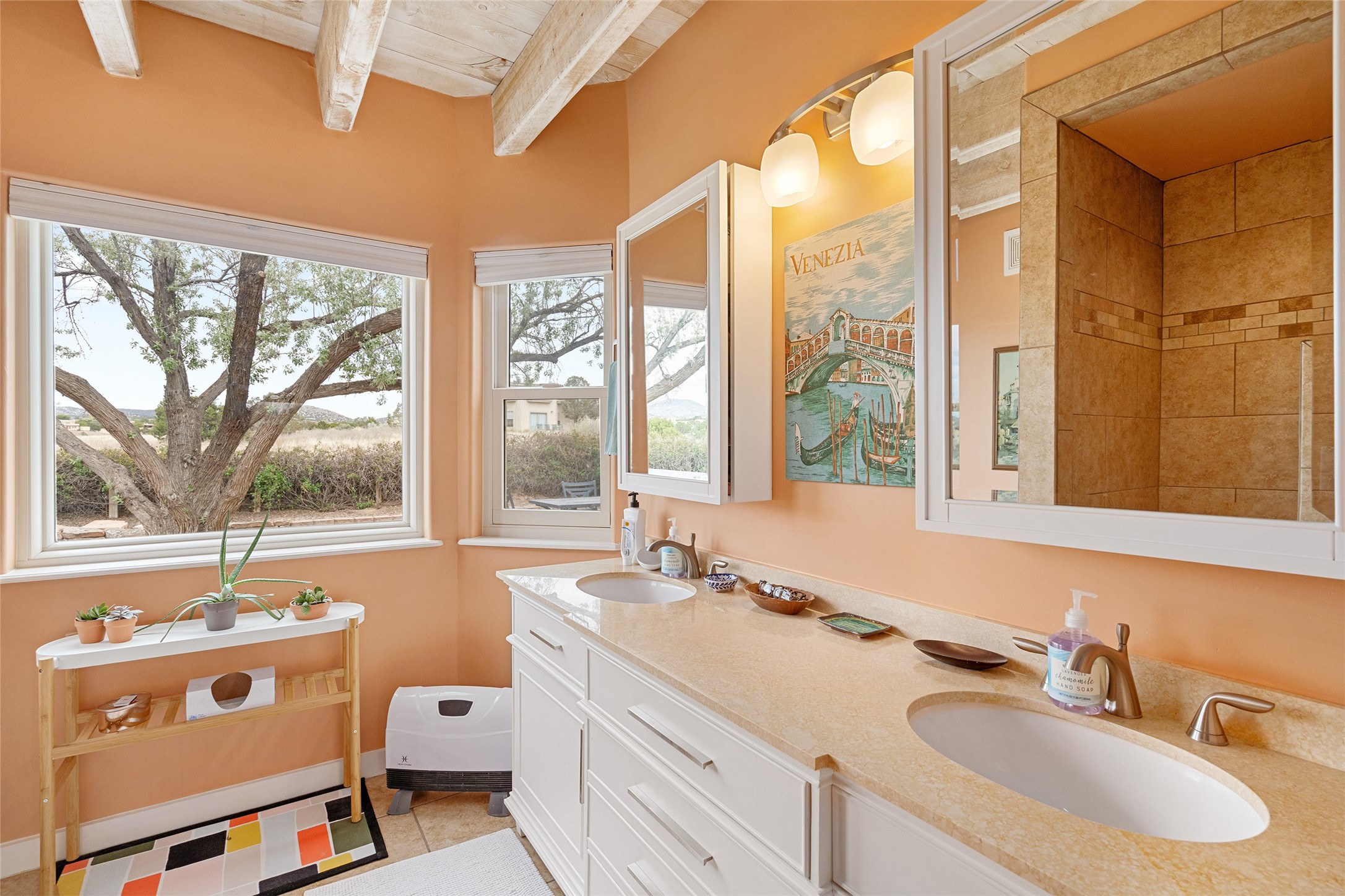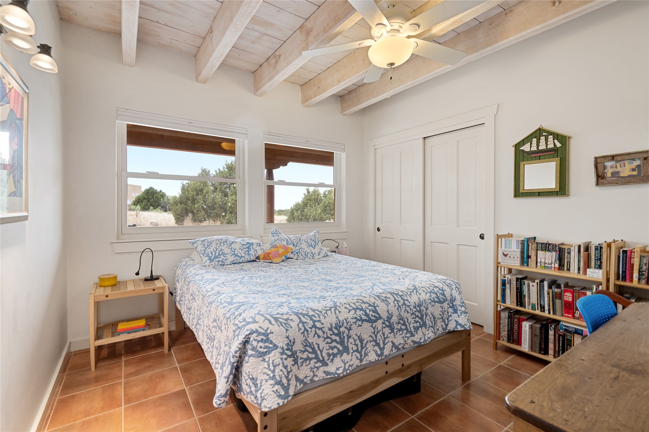 A Serene Eldorado Sanctuary with Southwestern Soul.Experience the authentic Northern New Mexico lifestyle in this charming 3-bedroom, 2-bath residence, nestled on a generous two-acre lot within the coveted community of Eldorado. Combining traditional Pueblo-style aesthetics with modern comforts, 20 Mariano Road offers a peaceful retreat just minutes from the vibrant culture of downtown Santa Fe.The Heart of the Home is anchored by an open-concept living, dining, and kitchen area designed with a modern take on classic Santa Fe style. A full chef's kitchen crowned by lofted ceilings, complete with ample workspace and updated appliances, boasts stunning views of the Sangre de Cristo Mountains. The living spaces are bathed in natural light and feature wood-beamed ceilings, while a traditional kiva fireplace and a wall of southwest-facing passive solar windows ensure the home remains warm and inviting year-round.The back patio is a true slice of serenity, offering sweeping mountain vistas centered around a majestic mature tree. The expansive lot slopes gently toward a protected greenbelt, providing an enhanced sense of privacy and a quiet connection to the natural landscape.The thoughtful floor plan provides excellent separation between living areas. The primary suite features bright windows, a full bathroom with dual sinks, and its own cozy kiva fireplace. Two additional bedrooms are located at the opposite end of the home; one includes a third kiva and a private exterior entrance, making it an ideal candidate for a secluded home office.A standout feature of the property is the marvelous free-standing studio. This heated creative space includes a sink and elegant double doors; currently utilized for music production, it could easily transition into a yoga studio, art space, or a future casita conversion.This home has been lovingly maintained, from the pristine stucco to the manicured native landscaping. Notable upgrades include: New insulated windows throughout, brand new washer and dryer, newer hot water heater and kitchen appliances, attached two-car garage with new garage door, saltwater conditioner.This property is in true move-in-ready condition and waiting for its next chapter.