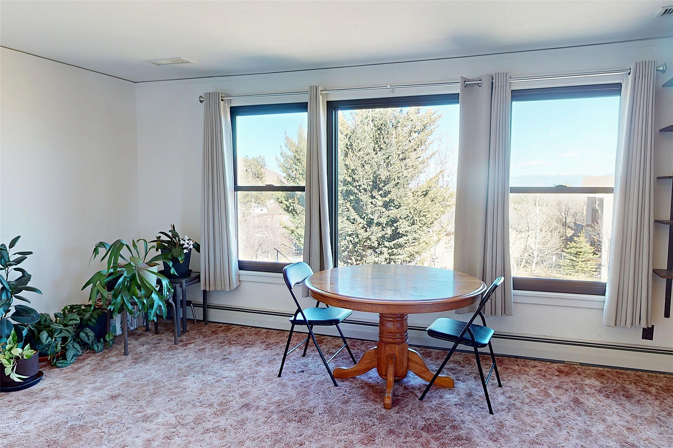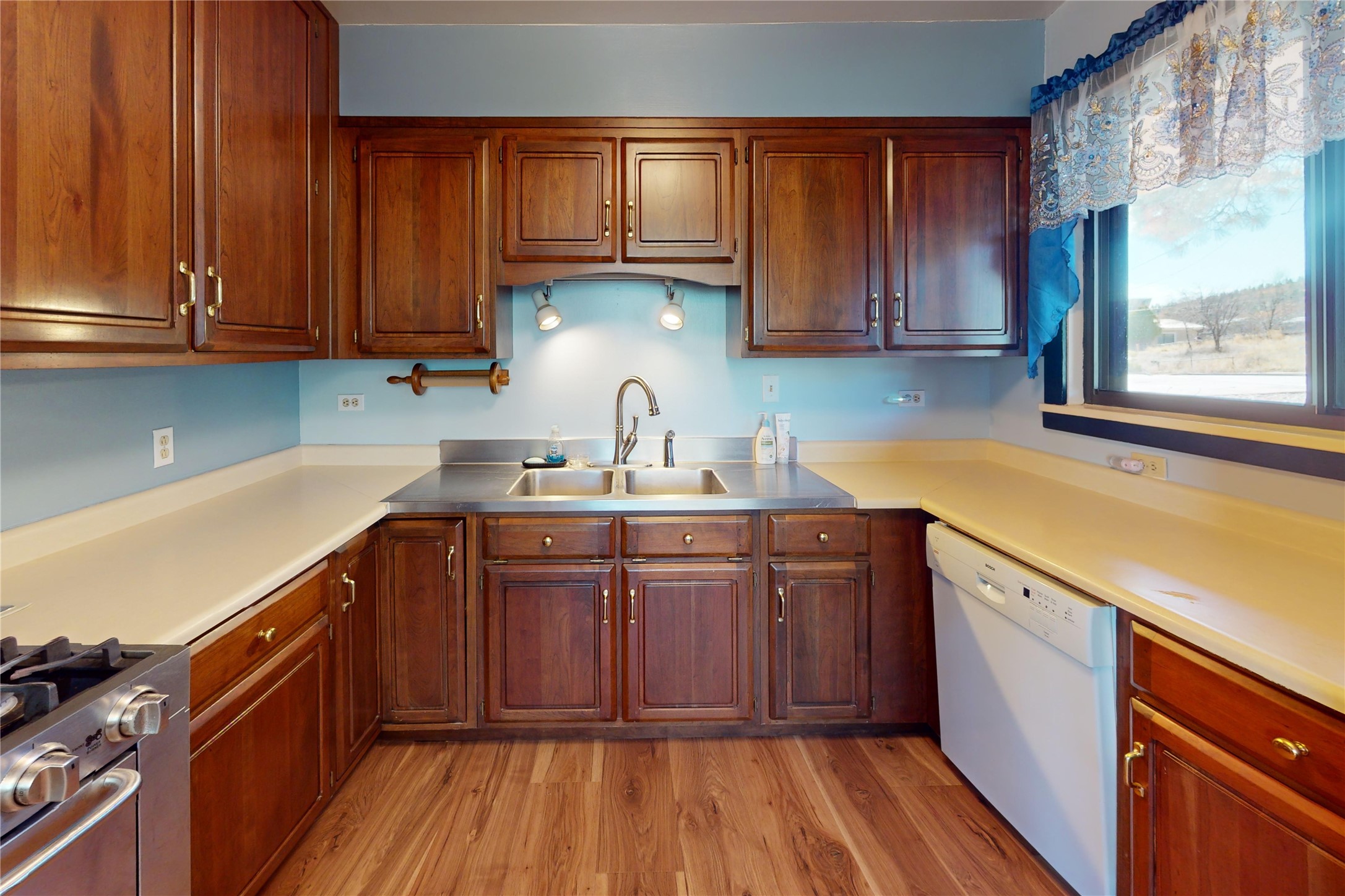 Located in an outstanding setting, this single-story home sits on an impressive 0.82-acre lot adjacent to county open space in a highly desirable neighborhood close to schools and scenic trails. With a huge yard and sweeping views of the Sangre de Cristo Mountains, this property offers both space and an exceptional location. Inside, the home features four bedrooms and a flexible layout designed for comfortable everyday living. Two distinct living areas provide wonderful options for gathering, entertaining, or relaxing. Large windows throughout the living spaces and bedrooms fill the home with natural light while capturing beautiful mountain views, creating a bright and airy atmosphere. The kitchen is equipped with rich wood cabinetry, modern appliances, and a double sink with drainboards, blending warmth and functionality. The interior showcases a mix of design elements, including warm wood paneling in select rooms, balanced by neutral tones throughout. An attached garage provides secure parking and additional storage. The expansive yard offers endless possibilities for outdoor enjoyment, gardening, or simply taking in the peaceful surroundings. Combining generous living spaces, practical amenities, and an unbeatable location, this home presents a wonderful opportunity in the Los Alamos area.