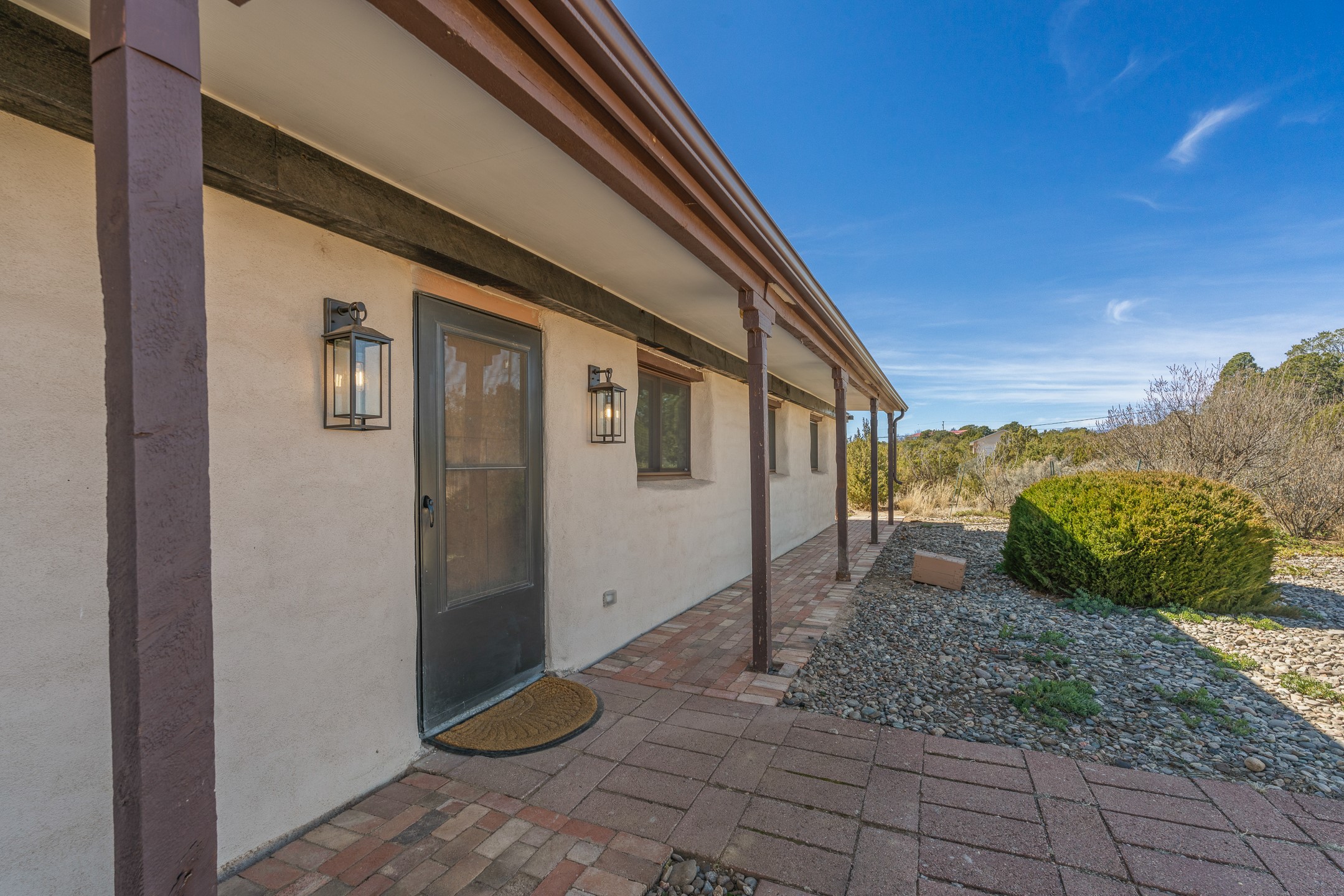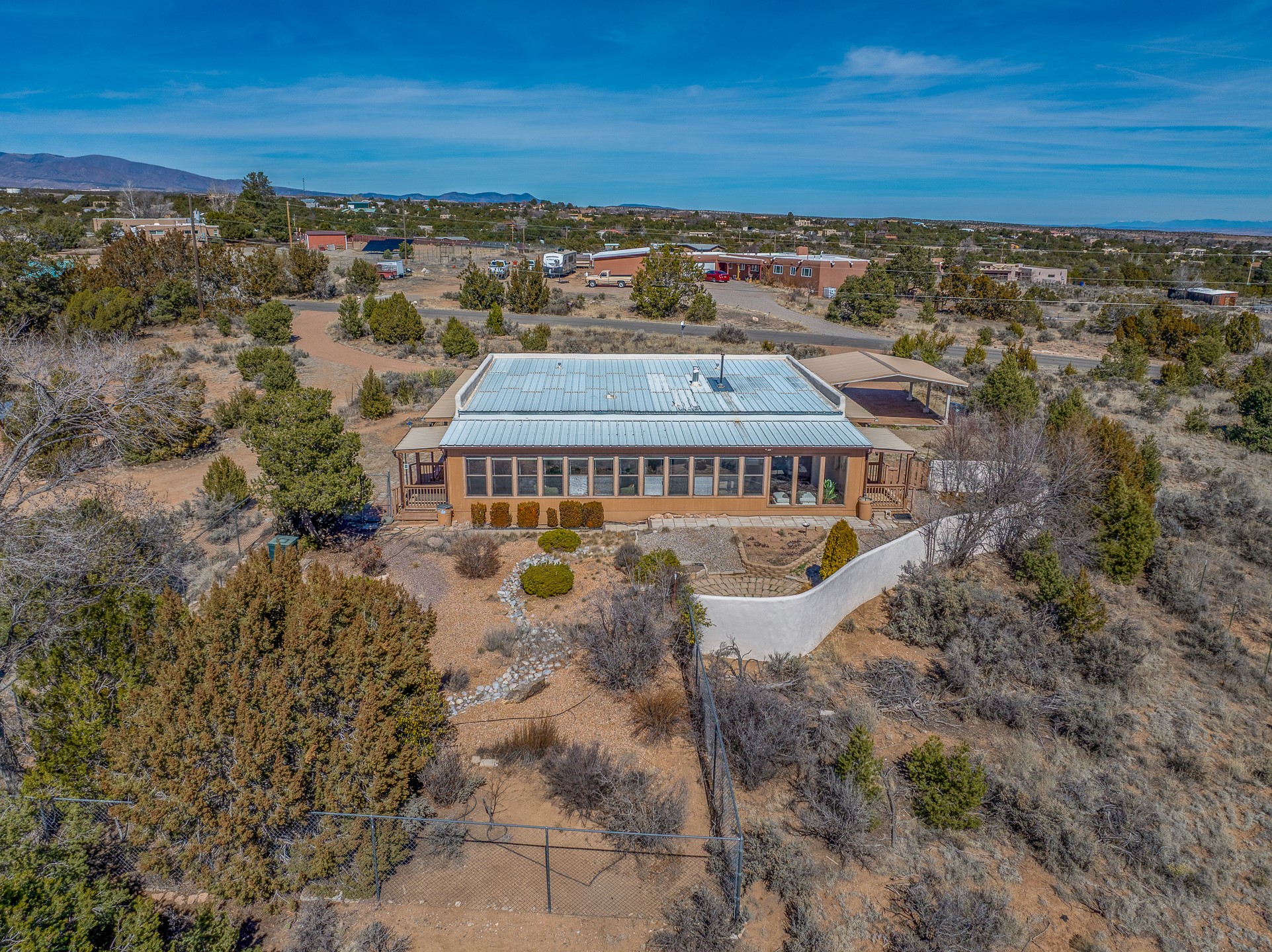 Set on just over 3 acres in the Pajarito Acres community of White Rock, this distinctive 4-bedroom, 2-bath adobe home blends timeless Southwestern character with thoughtful updates and rich architectural detail. The entry welcomes you with a beautiful stone wall and warm Saltillo tile floors, setting the tone for the craftsmanship found throughout. Exposed wood beams, natural wood ceilings, and handcrafted wood doors create a warm and inviting atmosphere. In the living area, a striking decorative breeze block wall adds architectural interest while subtly defining the space. A pellet stove provides warmth and ambiance during cooler months. The kitchen offers updated appliances, a beautiful stone backsplash, abundant cabinetry, and generous workspace, all opening seamlessly to the dining and living areas, ideal for everyday living and entertaining. Just beyond the sliding doors off the dining area, the sunroom adds approximately 550 square feet of additional heated living space (included in the total 2,350 sq ft). With brick flooring and walls of windows, this bright space offers the perfect place to relax or enjoy views of the surrounding landscape. Thick adobe walls provide natural insulation, keeping the home cool in summer while the sunroom captures passive solar warmth in winter for improved energy efficiency.The home offers four versatile bedrooms, each with durable Pergo flooring. The primary suite includes a walk-in closet and updated bathroom, while the second bath serves the additional bedrooms. One bedroom features built-in shelving, ideal for a home office. The 3+ acre property offers views to the South and East, space for gardening, recreation, or simply enjoying the peaceful surroundings. Two outbuildings provide additional storage, while a two-car carport and circular driveway offer convenient parking. Additional highlights include a tankless hot water heater, updated lighting, and updated windows throughout the main home. Located minutes from Los Alamos National Laboratory, scenic trails, and White Rock parks and amenities, this property offers a rare combination of space, character, and convenience. If you are looking for acreage and an authentic adobe character in Pajarito Acres, 3 Maya Lane is a truly special opportunity. Schedule a showing today!