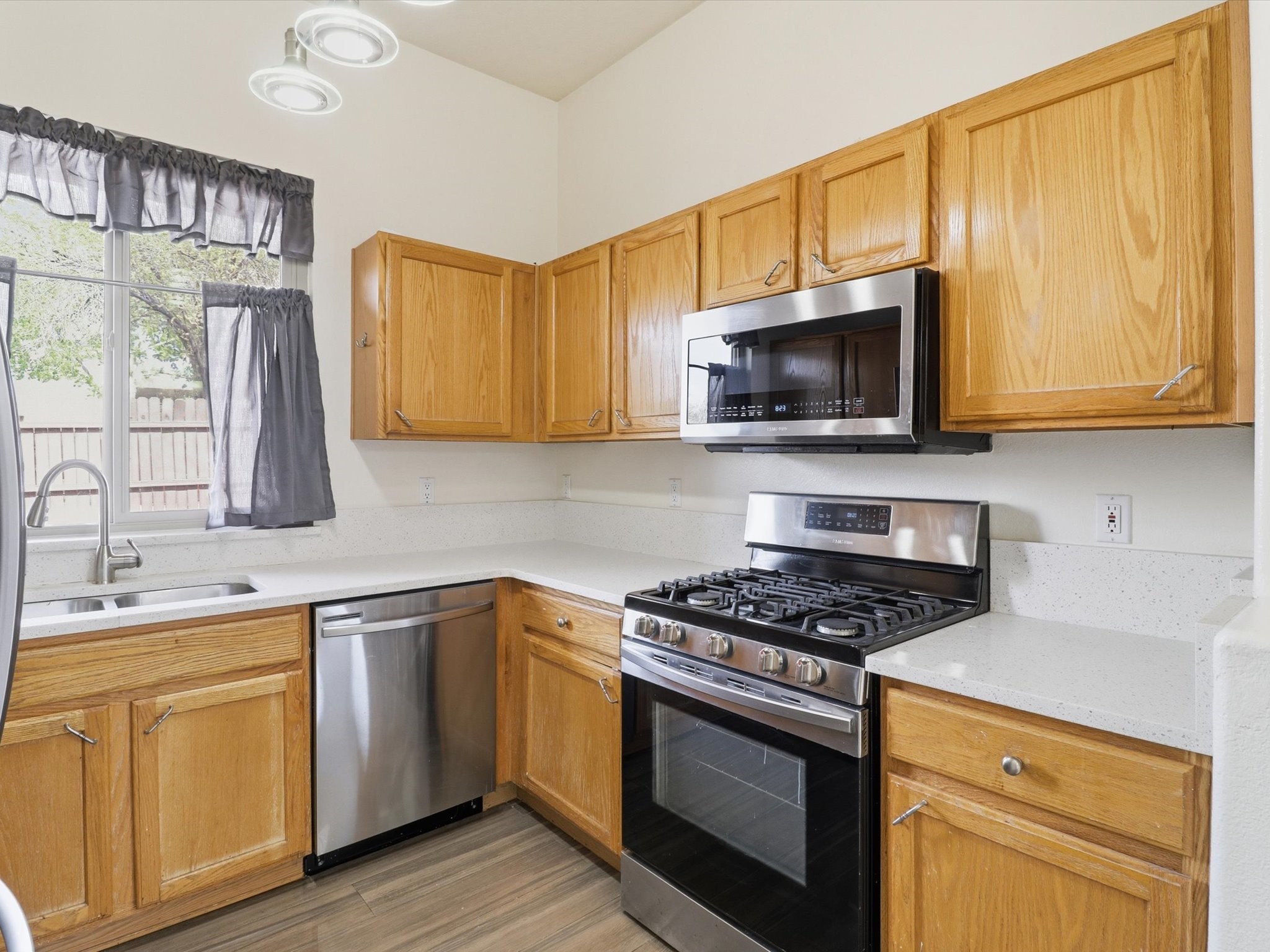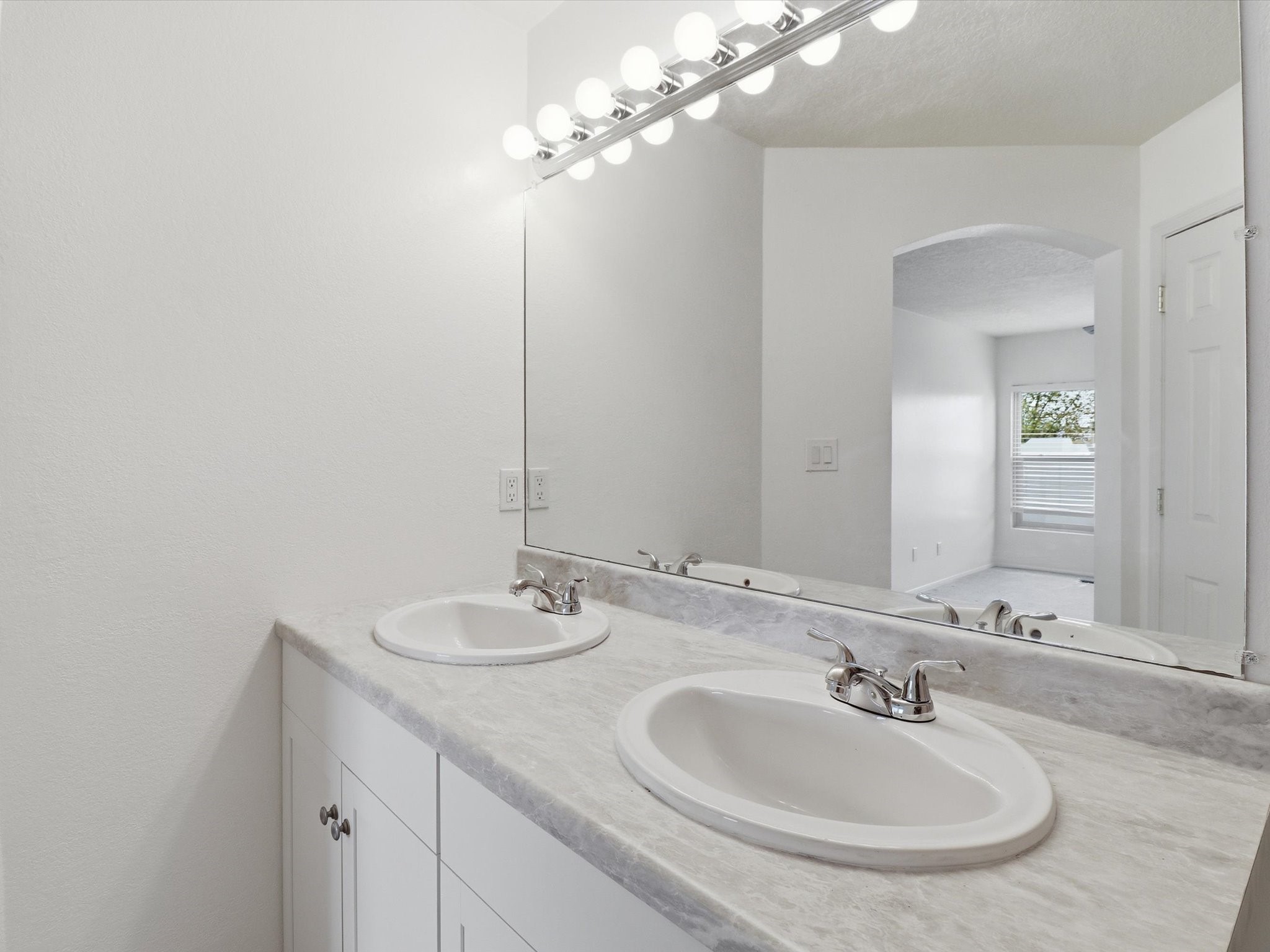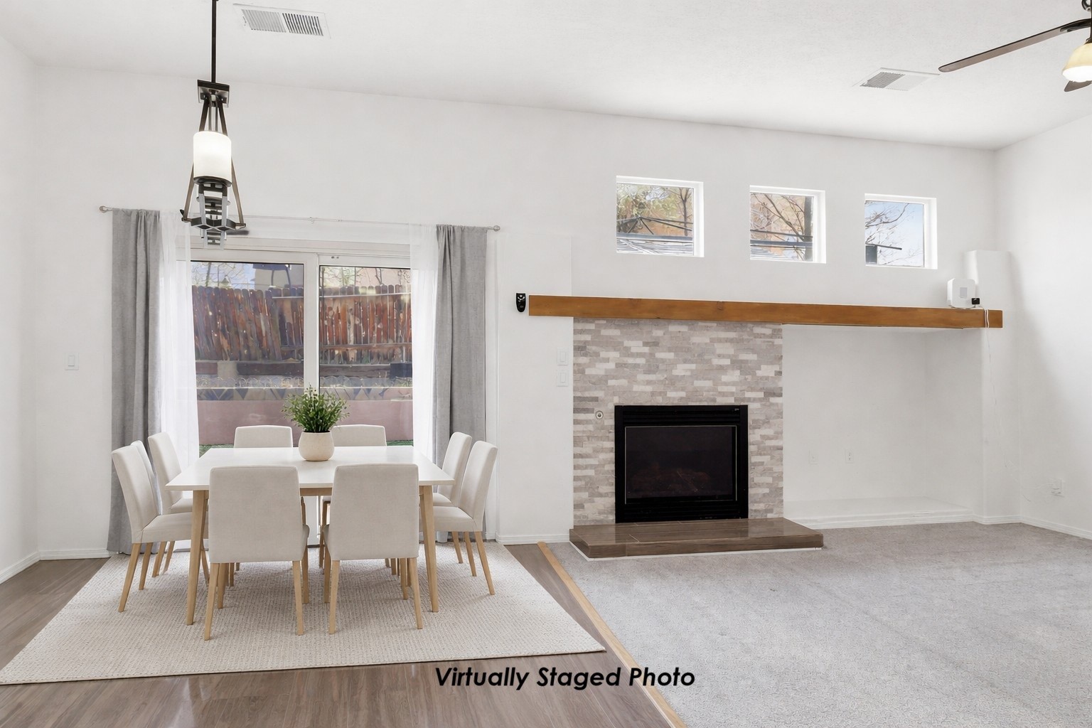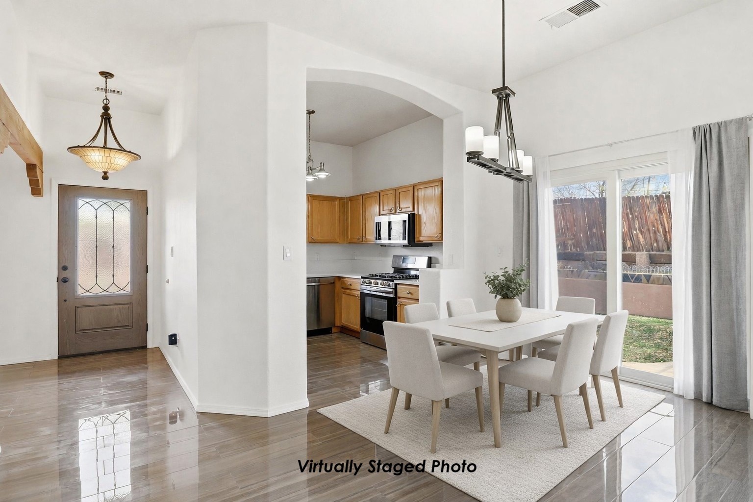 Nestled in a well-established section of Tierra Contenta, this inviting 4-bedroom, 3-bath, two-story home perfectly blends comfort, functionality, and charm. The primary bedroom is conveniently located upstairs with an attached bathroom featuring dual sinks, while the 3rd bathroom serves the 3rd and 4th bedrooms, offering thoughtful convenience for family living.Step inside to a spacious floorplan that balances privacy and shared spaces. The enclosed kitchen flows straight into the open dining and living areas, which connect seamlessly to the backyard through full glass doors--ideal for indoor-outdoor living. Upstairs, a hallway with a cozy sitting space by an open window creates a peaceful retreat for reading or relaxing.Outside, the property features a fenced front yard with a covered portal, plus ample front and backyard space with endless potential to personalize--whether you envision a playground, landscaped garden, or lanai. Patio improvements provide additional outdoor entertaining options, making this a perfect spot to enjoy Santa Fe's beautiful climate.Located near schools, the public library, and the Plaza Contenta Commercial Center, this home combines convenience with a warm, welcoming community feel. Whether you're seeking a family-friendly residence or a smart investment, this property offers exceptional value in a highly desirable Santa Fe location.