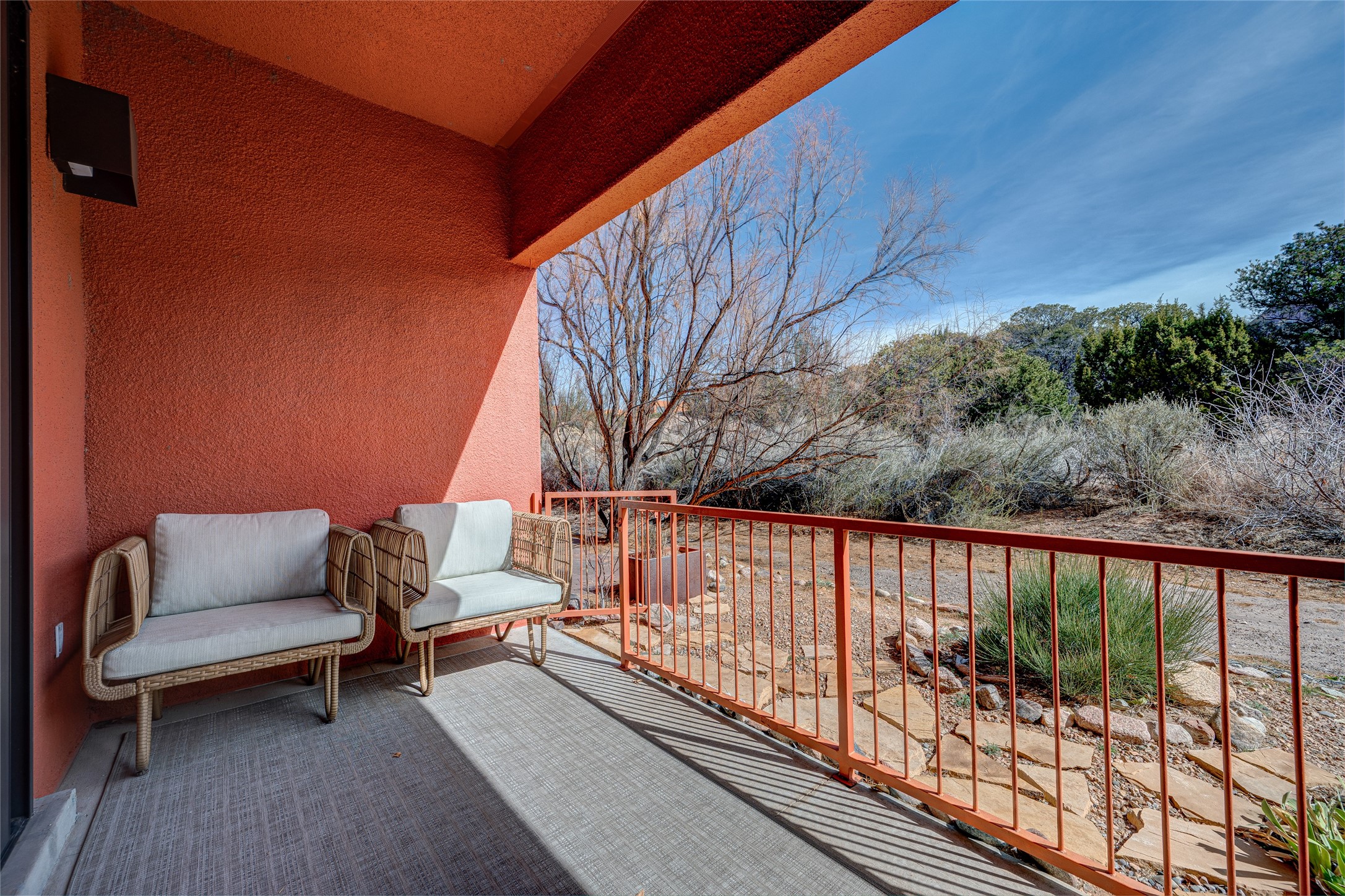 Situated within the architecturally celebrated Zocalo community, this refined ground-floor residence embodies the bold Mexican-modern aesthetic that defines one of Santa Fe's most distinctive neighborhoods. Clean lines, polished concrete floors, high ceilings, and walls of natural light create a sophisticated yet welcoming atmosphere.Morning sun pours into the living spaces, highlighting the home's open-concept design and seamless indoor-outdoor flow. The thoughtfully curated 1,039 square-foot floor plan offers effortless single-level living, enhanced by central air conditioning, travertine tile bathroom, quartz kitchen countertop, stainless steel appliances, laundry, and one-car garage with generous storage -- a rare and valuable amenity.Step outside to your private patio, an intimate setting for morning coffee or evening wine beneath the Santa Fe sky. Just beyond your door, scenic hiking trails connect you to nature, while a pedestrian and bike path provides easy access toward downtown.Zocalo residents enjoy resort-style amenities including a clubhouse, pool, spa, bbq grills, and two fitness facilities - all within a community known for its architectural integrity and strong sense of place.Ideally located near the Santa Fe Plaza, Los Alamos, Santa Fe Opera, premier shopping, and the Santa Fe Airport, this residence offers accessibility.For the discerning buyer seeking design, convenience, and a lock-and-leave lifestyle in one of Santa Fe's iconic communities, this is an exceptional opportunity.