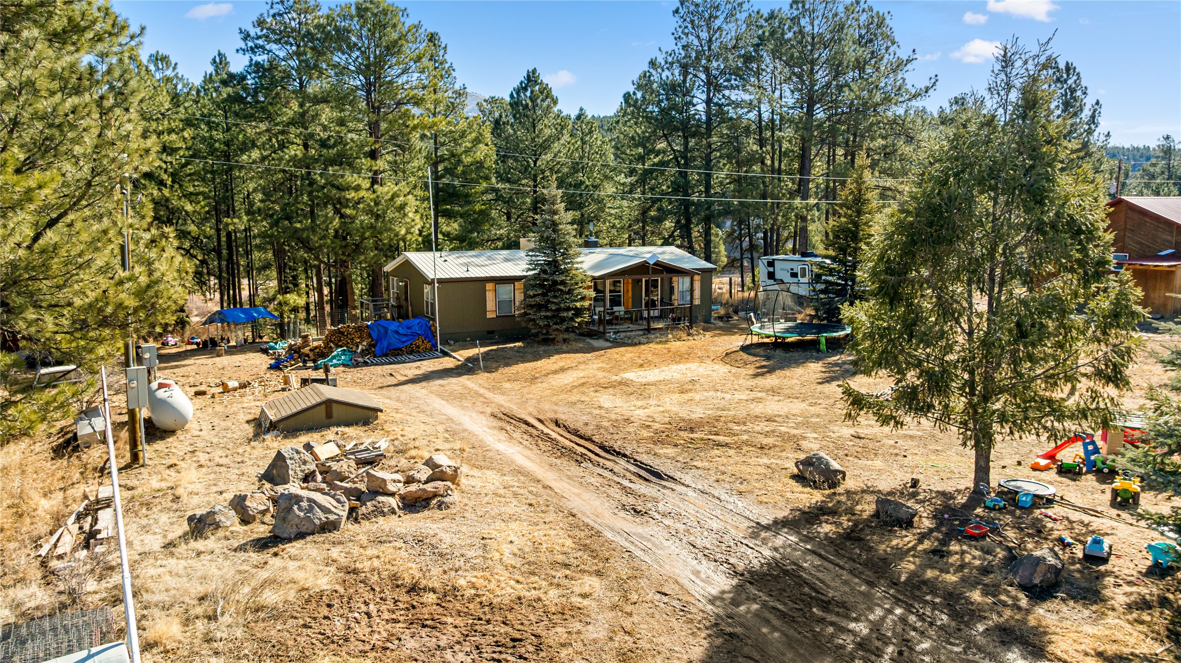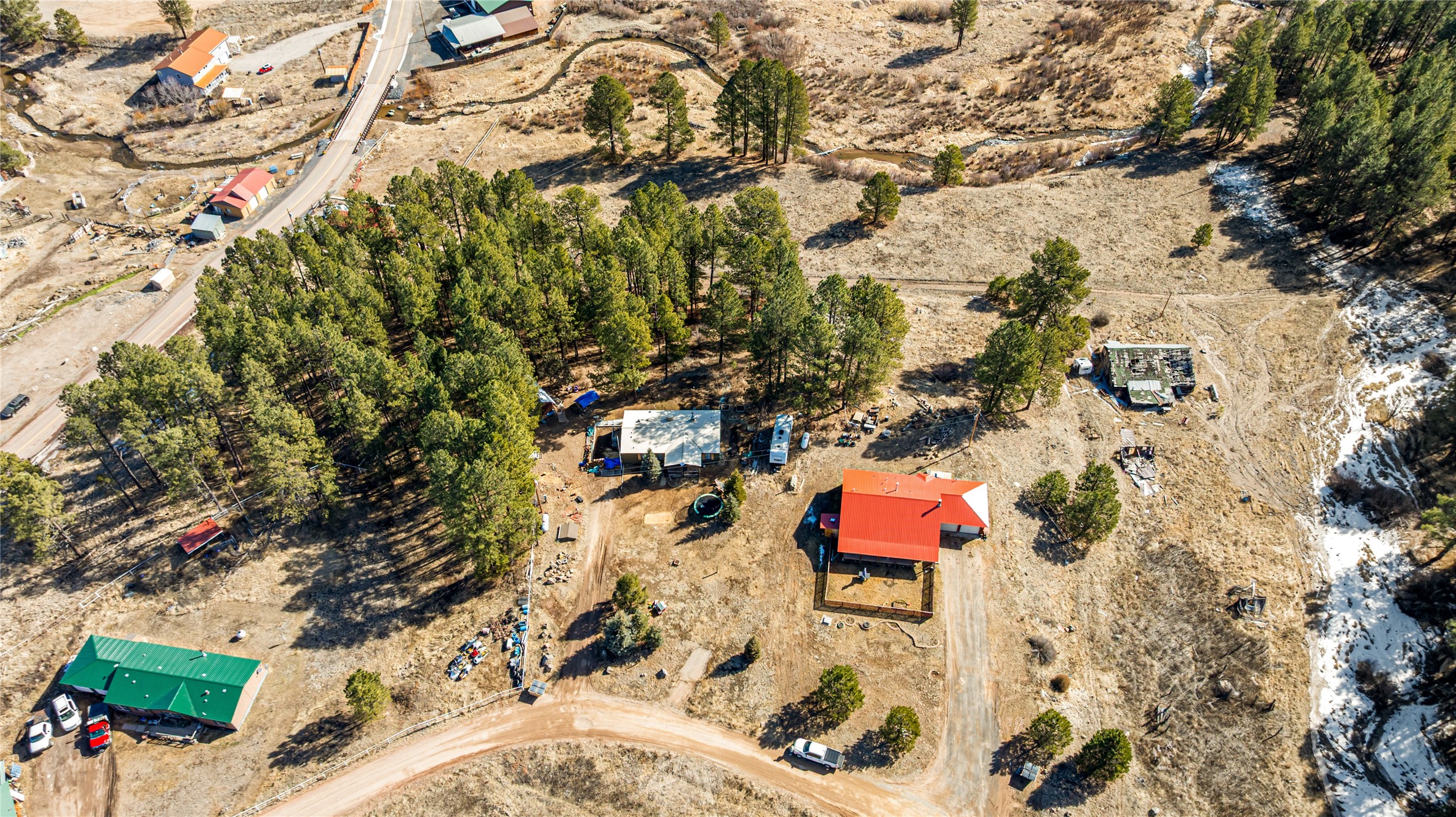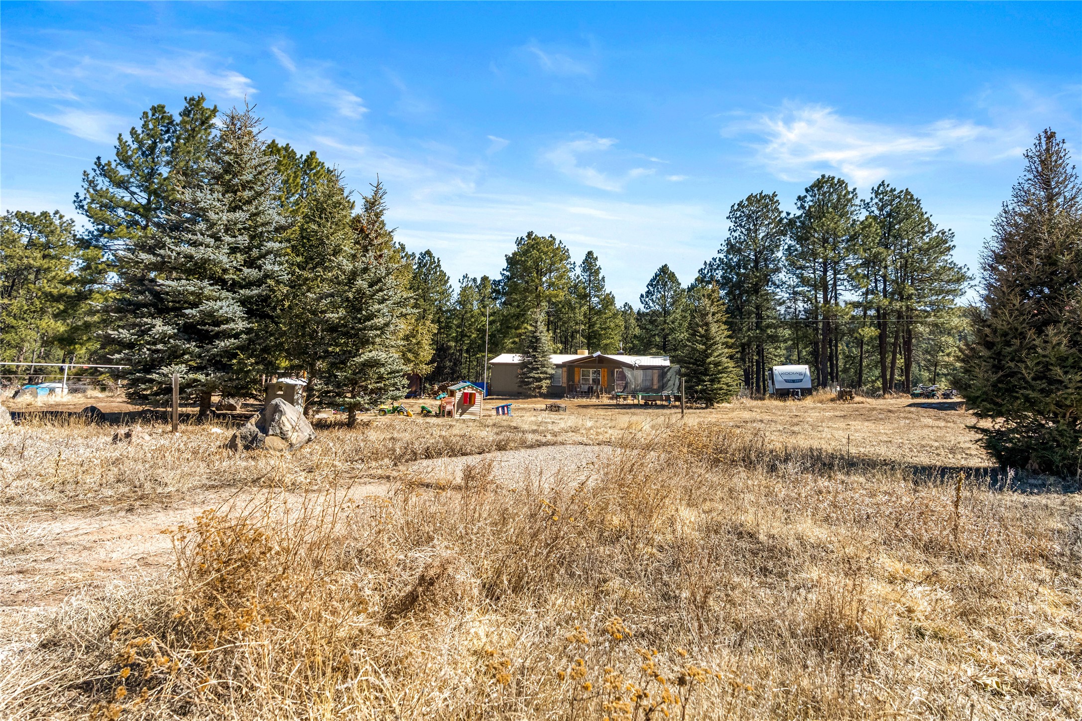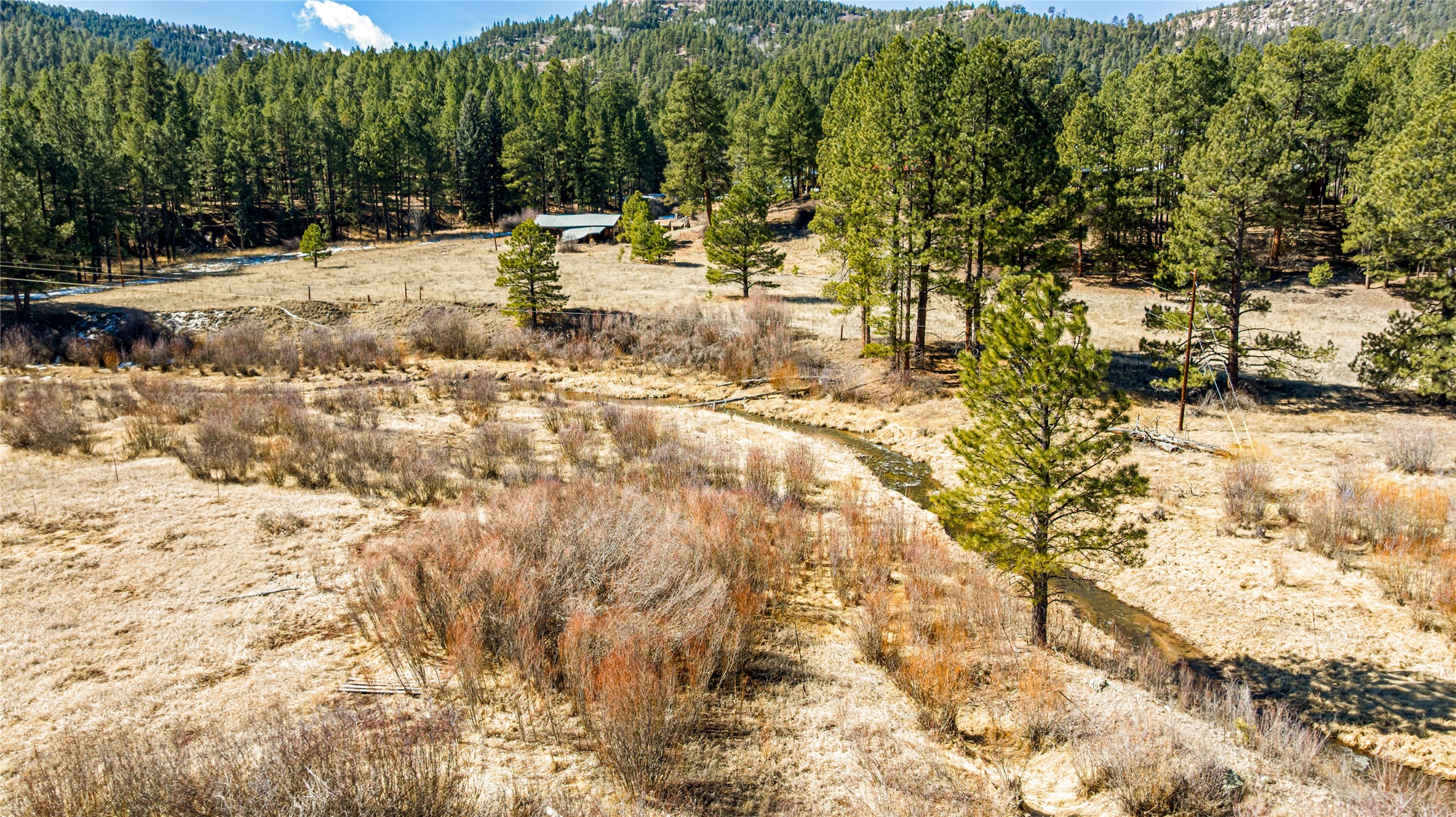Fabulous Views, Easy Access, and a Great Location! Nestled in the tight-knit community of La Cueva, this home sits on a .84-acre lot overlooking the San Antonio Creek, surrounded by pine trees and nature. The east side of the property backs National Forest. The master bedroom is situated on one side of the home, with two additional bedrooms on the opposite end. Two full baths, including a relaxing garden tub. Open concept living with an efficient fireplace for cozy evenings at home. Country kitchen with plenty of counter space and an attached laundry room/pantry. Fishing and hiking right out your back door! Easy year-round access on a county-maintained road and a reasonable 40-minute commute to Los Alamos.