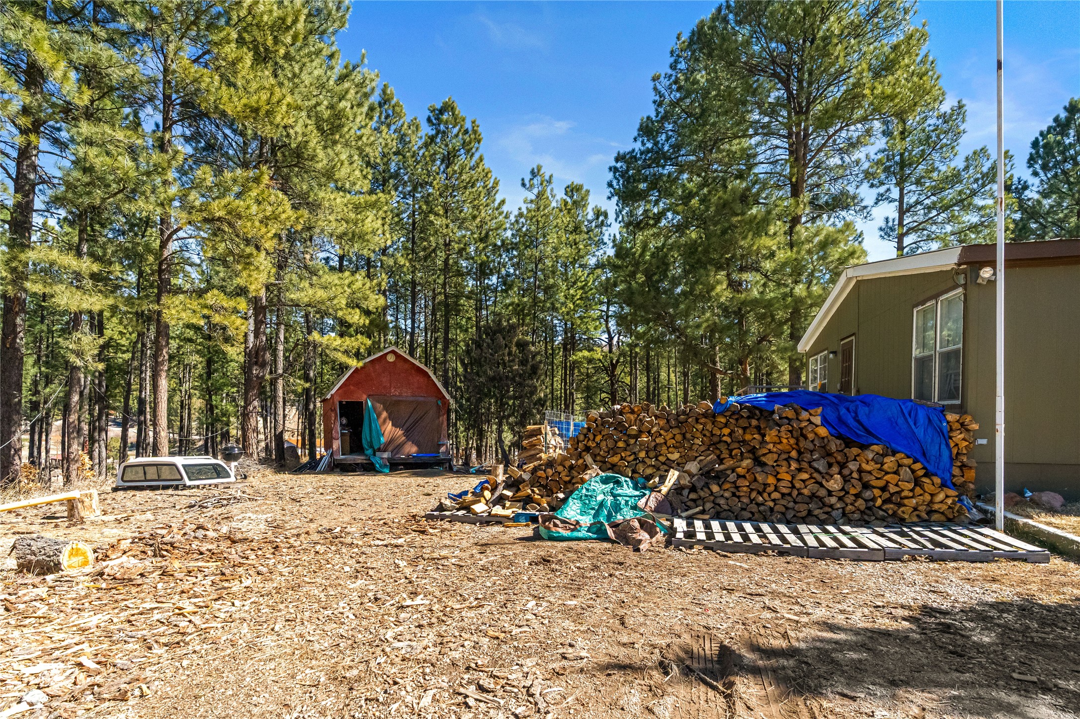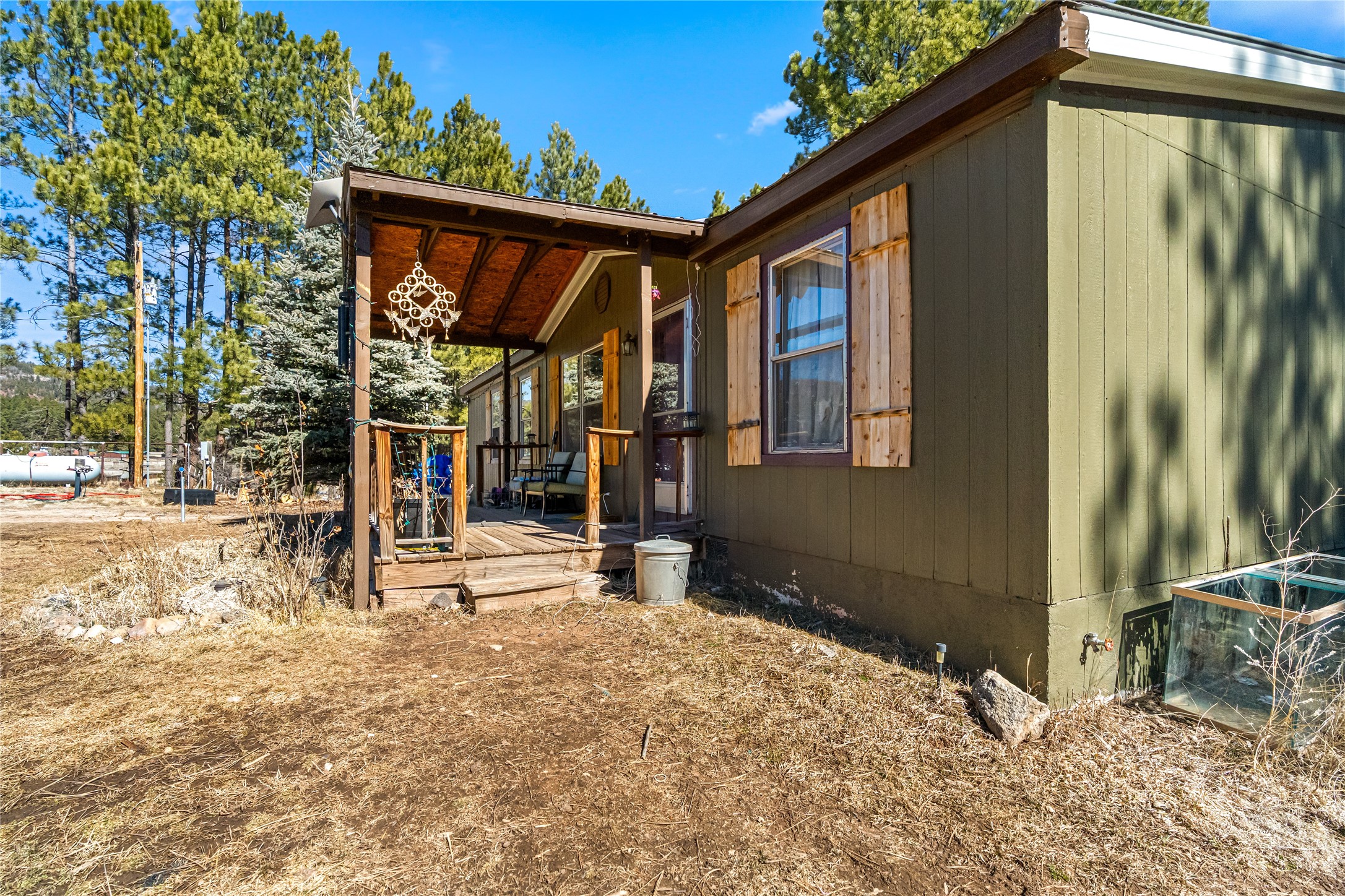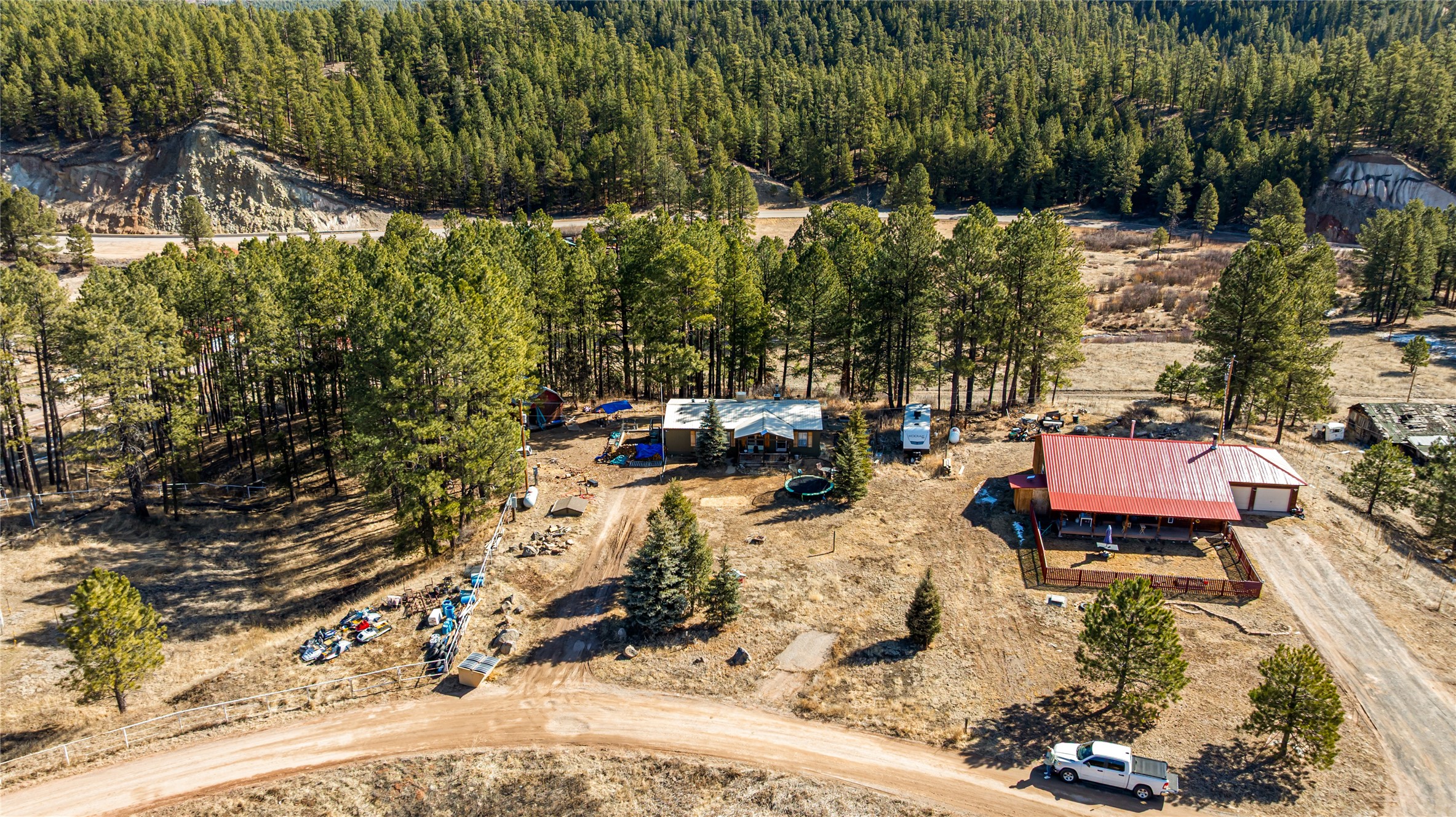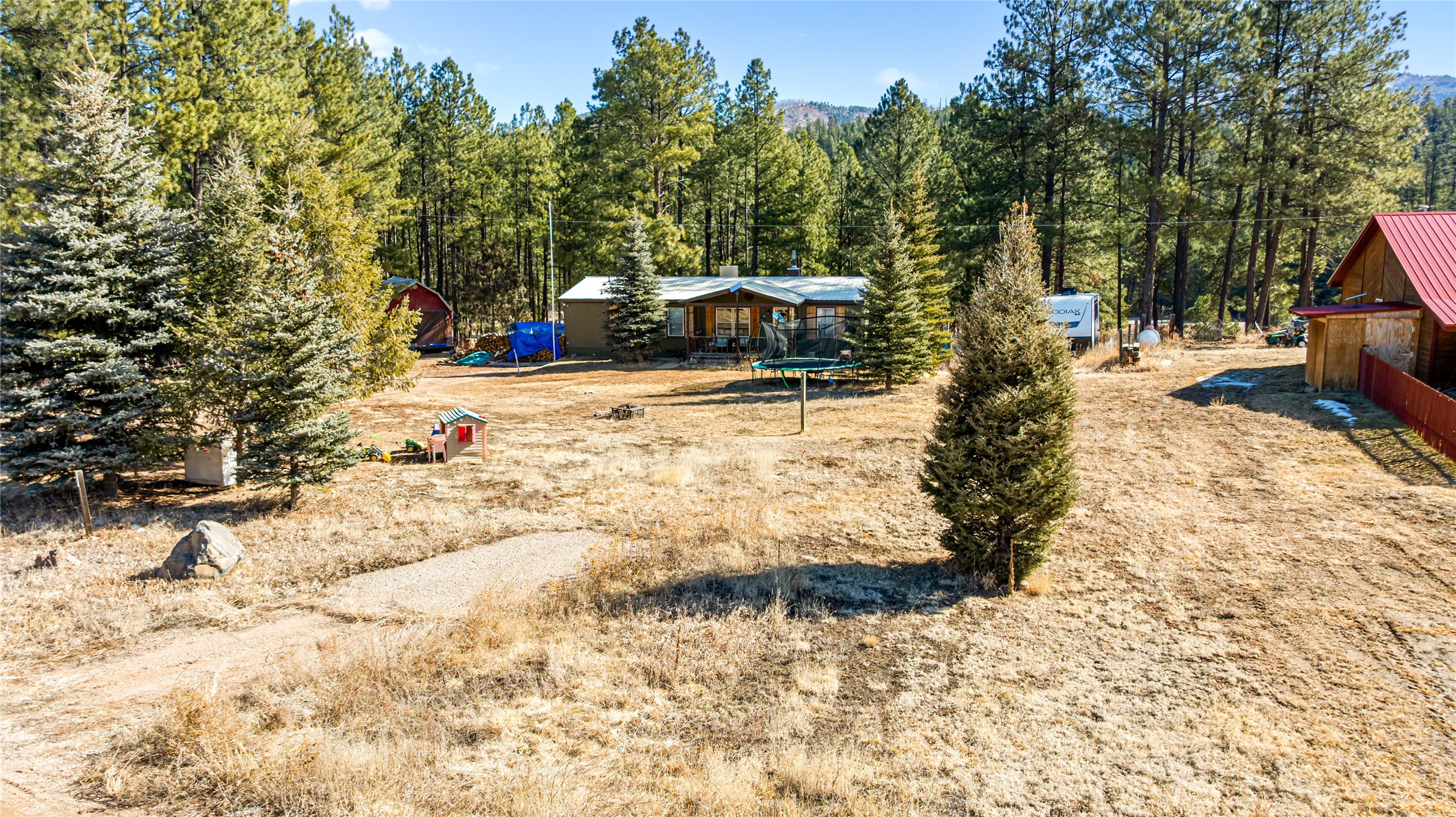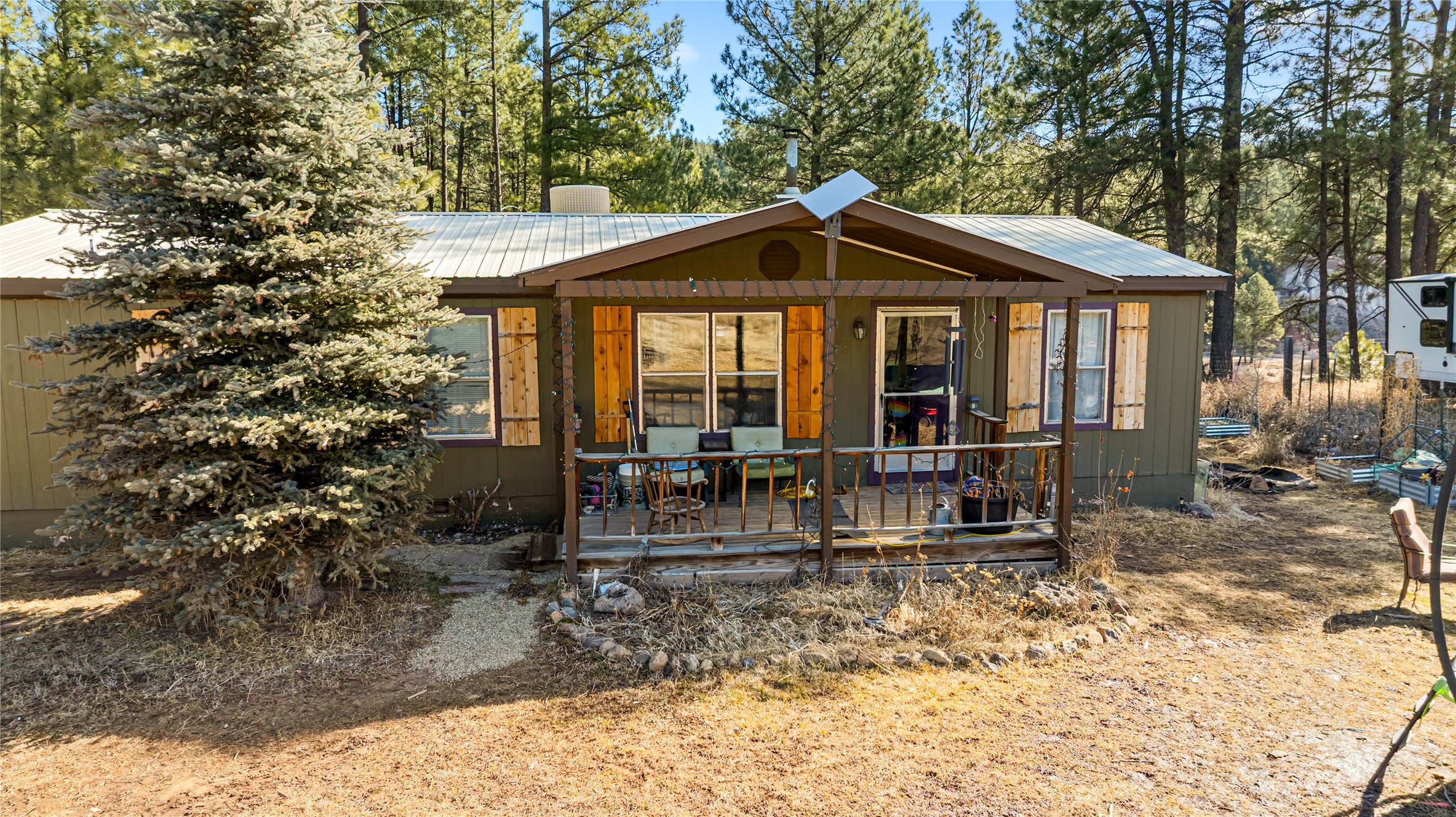 Fabulous Views, Easy Access, and a Great Location! Nestled in the tight-knit community of La Cueva, this home sits on a .84-acre lot overlooking the San Antonio Creek, surrounded by pine trees and nature. The east side of the property backs National Forest. The master bedroom is situated on one side of the home, with two additional bedrooms on the opposite end. Two full baths, including a relaxing garden tub. Open concept living with an efficient fireplace for cozy evenings at home. Country kitchen with plenty of counter space and an attached laundry room/pantry. Fishing and hiking right out your back door! Easy year-round access on a county-maintained road and a reasonable 40-minute commute to Los Alamos.
