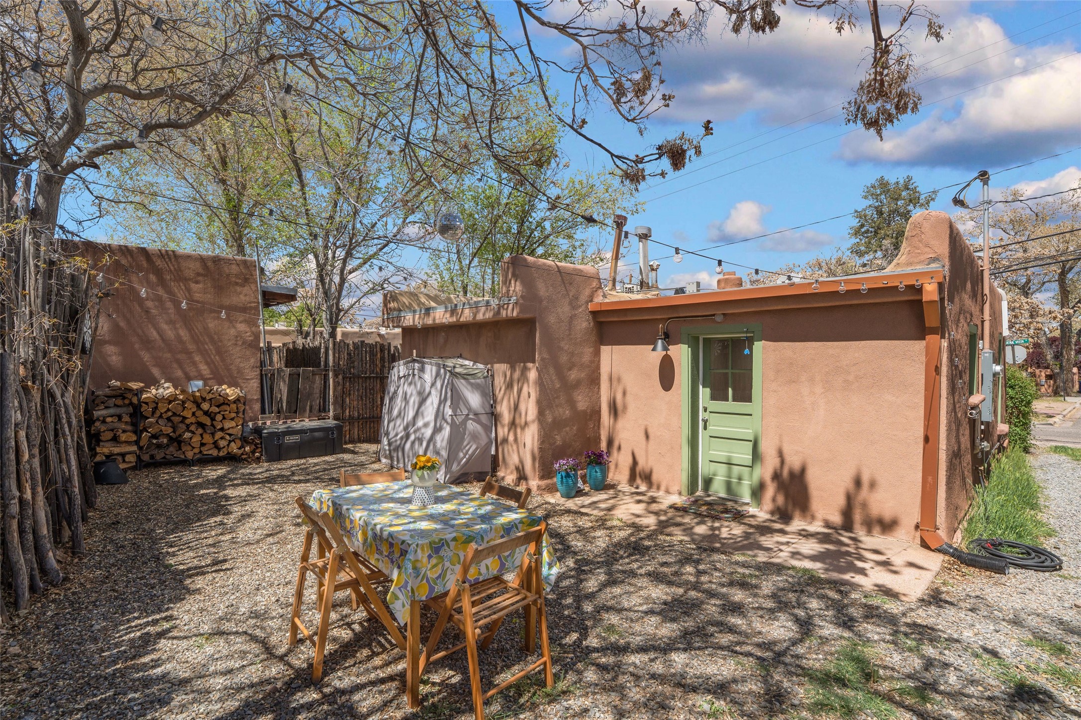 South Capital 1-bedroom, 1-bath historic home with 2 designated parking spaces and a spacious back yard. Single story; no interior steps. Iconic Santa Fe design features such as wood floors, hard trowel smooth finish plaster walls, kiva fireplace, and exposed vigas with herringbone latillas. Cute kitchen with washer/dryer and informal dining area with built-in banco. Custom bathroom with decorative tiles. In addition to the primary bedroom, there is a flex space which can be utilized as a studio/office or second bedroom. Plentiful outdoor areas for al fresco dining, gardening or neighborhood parties. Upgrades include newer mini-splits, electric, main sewer line, and on-demand hot water heater. Potential for investment rental income with proper City permits. Home is currently located within the Wood-Gormley Elementary School Attendance Zone Map. Super convenient location close to the Railyard and downtown Santa Fe.