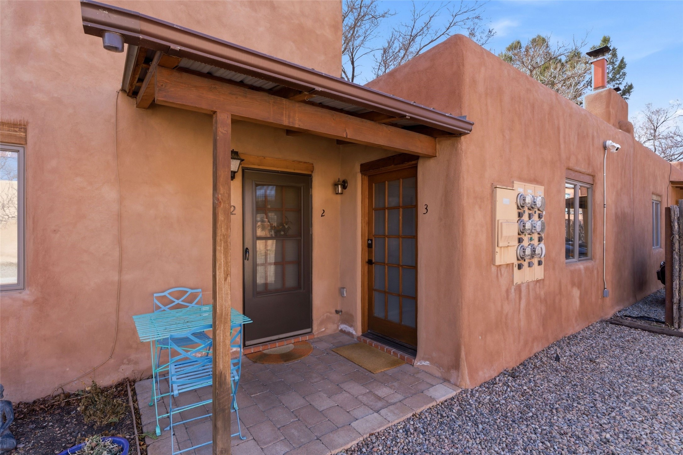 Cheerful, updated South Capitol 1-bedroom, 1-bath condo with a private, shaded courtyard. Whether as a primary residence, a stylish pied--terre, or a potential investment in a sought-after central district, this property represents an opportunity to enjoy the Santa Fe lifestyle. Single level; no interior steps. Iconic Santa Fe touches with wood beamed ceilings, kiva fireplace, and brick floors. Newly renovated kitchen with stainless steel appliances. Bonuses are one designated parking space, deluxe washer/dryer, and a Samsung Frame TV that transforms into a digital art display. Perfect location, close proximity to everything including the Railyard, Canyon Road and the Plaza.