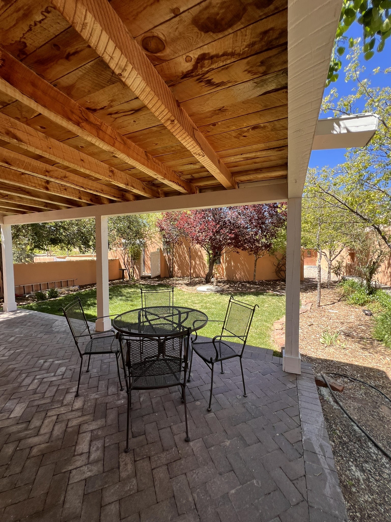 Charming Historic Adobe Home in Santa Fe's East Side Nestled in the heart of Santa Fe's coveted historic Eastside, this classic territorial style, all-adobe home, built in the 1900s, offers timeless character and exceptional location. Just a short stroll from iconic Canyon Road, this unique property includes a beautifully maintained main residence and a detached casita, large basement with bathroom and 5 parking spaces. Coming back on market Feb 2026. Main house is two bedrooms, 2 baths with kiva fireplace, original wood floors, plaster walls and traditional viga ceilings that exudes Santa Fe style. The brick-floored portal and multiple patios with adobe walls offer lovely options for outdoor living areas. Main house also features an 885 sq ft basement with separate exterior entrance, bathroom and multiple rooms for added possibilities for studio, office or remodel into living space. Property also includes a detached two-bedroom, one-bath casita--perfect for guests or as a proven income-producing rental - with a remodeled contemporary kitchen and utilities separately metered. This rare find blends convenience with traditional Southwestern charm and is a truly special opportunity to own a piece of Santa Fe history with strong rental potential and unbeatable walkability. Price subject to existing lienholder for short sale.