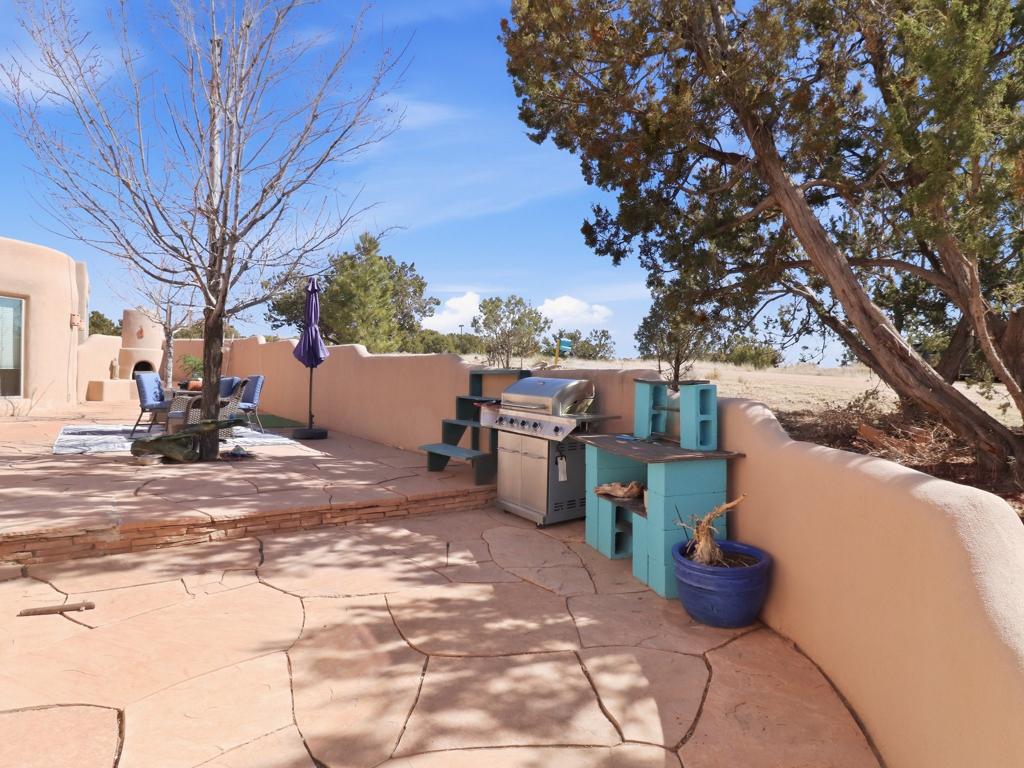 Set within the highly desirable Eldorado community just minutes from the cultural heart of Santa Fe, 16 Jornada Place presents a rare opportunity to own a classic Northern New Mexico residence on an expansive 1.30-acre cul-de-sac lot. This thoughtfully designed 3 bedroom, 2-bath, home offers approximately 2,515 square feet of living space and blends timeless Southwestern architecture with warmth, comfort, and privacy. Originally built in 1990 and lovingly maintained by its second owner, the property reflects a sense of authenticity and enduring quality that is increasingly hard to find. Upon entering the home, you are welcomed by an inviting open floor plan filled with natural light and traditional Santa Fe character. Rich Saltillo tile flows throughout the residence, complemented by striking vigas and wood beam ceilings that create a warm, architectural presence in the main living spaces. Large windows frame the surrounding landscape while filling the home with sunlight, enhancing the connection between the interior living areas and the beauty of the high desert beyond. 1 wood-burning stove, 1 fire place, and a classic kiva fireplace provide cozy gathering spaces and add to the authentic Southwestern ambiance. The layout offers both comfort and functionality, with a private primary suite positioned to capture peaceful views and direct patio access, perfect for morning coffee or quiet evenings under Santa Fe's renowned sunsets. Two additional bedrooms sit on the opposite side of the home, offering flexibility for guests, while a possible 4th bedroom, office space or studio compliments the floor plan. The single-level design enhances ease of living, while the detached garage and additional parking provide convenience and storage for vehicles, hobbies, or outdoor gear. Situated on over an acre of land, the property provides ample space to enjoy the serenity of Eldorado's wide-open landscapes while still being just a short drive from the restaurants, galleries, and culture of downtown Santa Fe. Residents of Eldorado enjoy access to community amenities including tennis courts, extensive walking and hiking trails, equestrian facilities, a clubhouse, and a popular community center that fosters a vibrant neighborhood lifestyle. Offered at $800,000, this distinctive property combines classic Santa Fe architecture, generous acreage, and the sought-after lifestyle of Eldorado, making it an exceptional opportunity for those seeking space, character, and proximity to one of the Southwest's most celebrated cities.