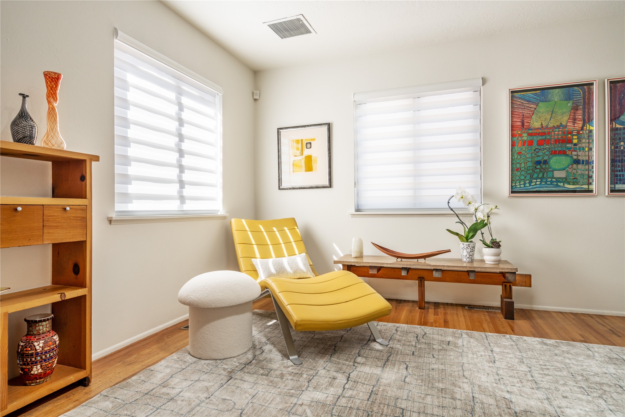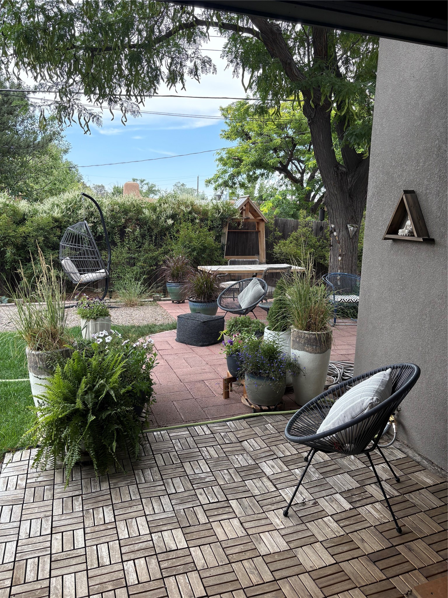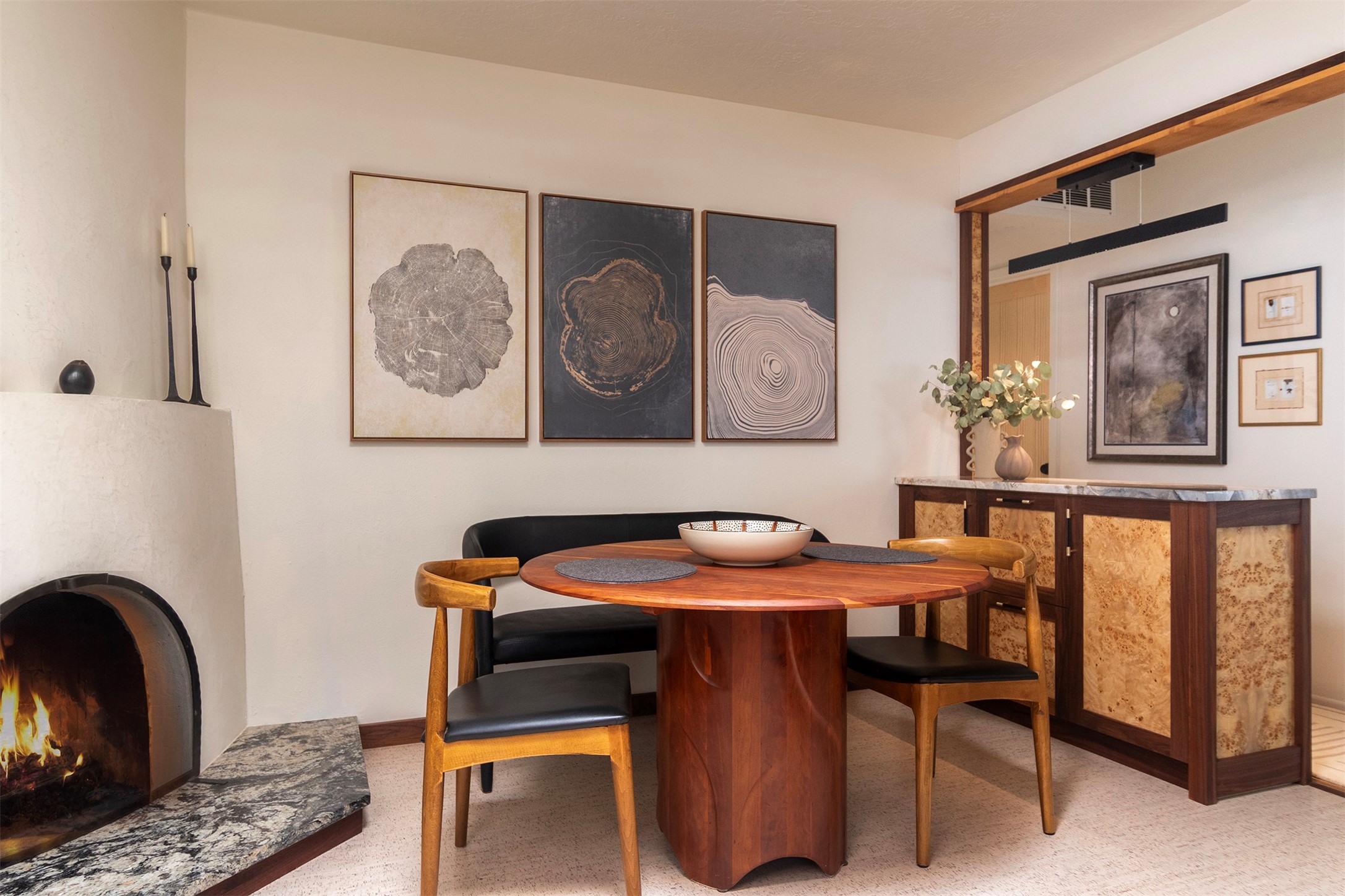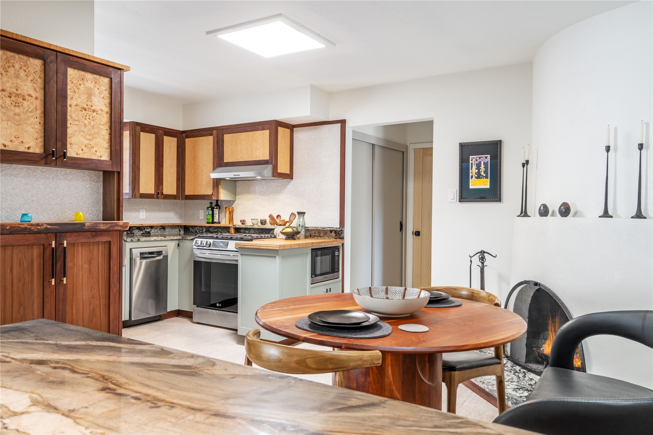 Beautifully renovated Stamm home in Los Cedros, thoughtfully transformed into a high-quality residence with custom craftsmanship and major system upgrades throughout. This 3 bedroom, 2 bath home blends classic Santa Fe character with modern comfort and design. The redesigned kitchen features hand-crafted walnut and maple cabinetry built by a professional woodworker, granite and quartz countertops, a reworked layout, new appliances, cork flooring, updated lighting, and a granite hearth. Both bathrooms have been fully remodeled. The primary suite includes a spa-inspired wet-room design with extensive custom cabinetry and bidet. Significant infrastructure improvements include a new silicone roof with warranty, new windows with lifetime warranty, new 200-amp electrical panel, new furnace with central air, two mini-splits, on-demand hot water heater, new switches and outlets throughout, new interior wood doors, and fresh interior paint. Exterior upgrades include new elastomeric stucco finish, fully xeriscaped landscaping with drip irrigation, a year-round grow box, and an oversized shed. A kiva fireplace, an attached two-car garage, and original hardwood floors complete the package. Ideally located just minutes from the rapidly transforming Santa Fe Midtown Redevelopment District, offering new restaurants, tech maker spaces, retail, residential housing, art groups, film production facilities, and the Sky Cinema theater. Enjoy the convenience of being near one of the city's most dynamic emerging live-work-play hubs while still tucked into a quiet U-shaped street near schools and shopping. This is a rare opportunity to own a fully upgraded Stamm home with quality materials and modern systems already in place.