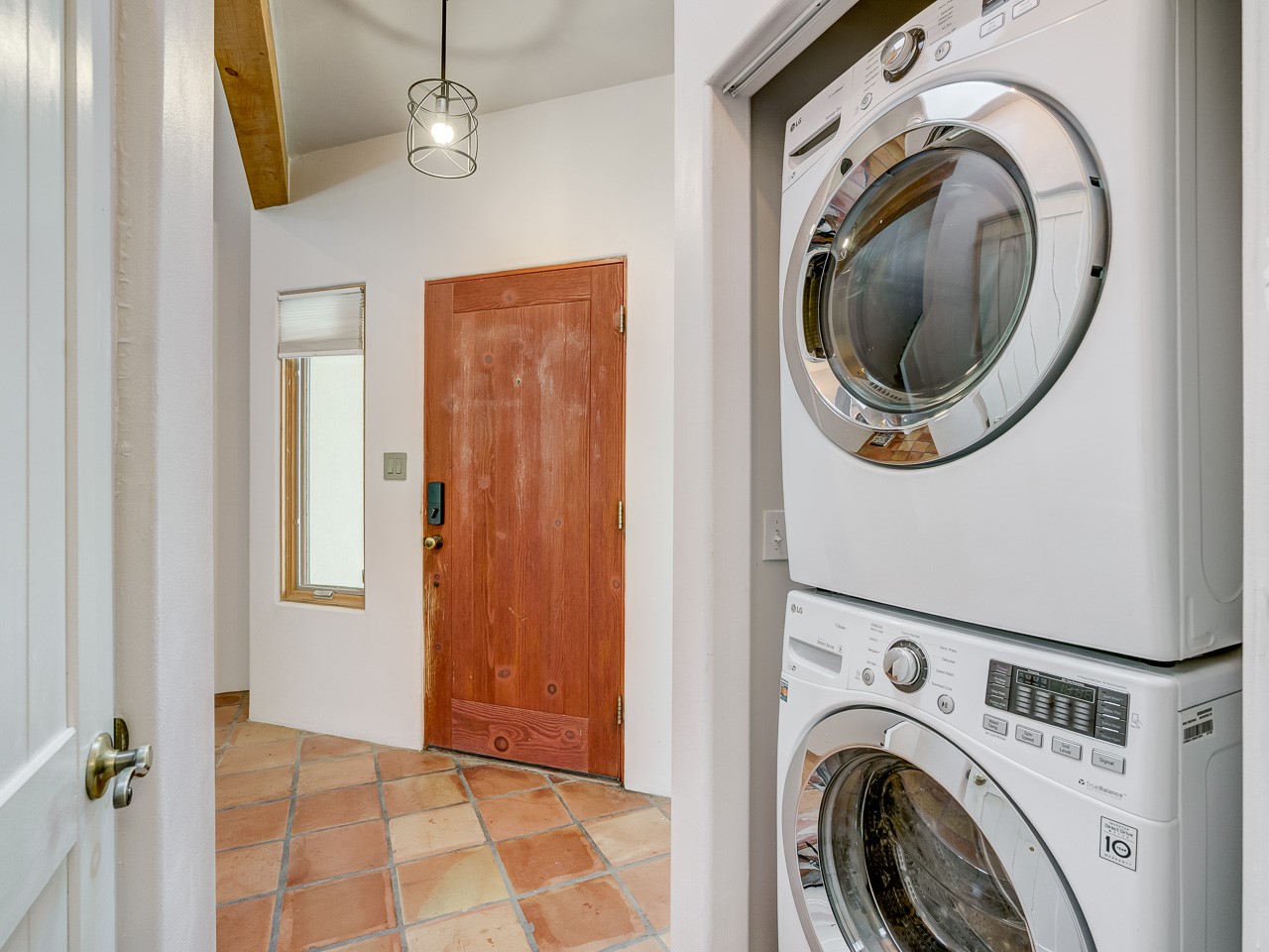 Experience the quintessential Santa Fe lifestyle in this light-filled condo, nestled in the peaceful and centrally located Villa de la Paz neighborhood. Step inside to discover a beautiful, open-concept living space with soaring ceilings, classic Saltillo tile floors, and a stunning kiva fireplace--perfect for cozy evenings. The charming kitchen and dining area flow seamlessly to a private courtyard, offering a tranquil outdoor retreat for al fresco dining or morning coffee. The main level also features a convenient powder room, stacked washer and dryer, and ample storage. Upstairs, the airy loft bedroom is a serene sanctuary, bathed in natural light and featuring a full en-suite bathroom, a generous walk-in closet, and a sweet balcony overlooking the courtyard and open space. This 1,206 sq ft home, built in 2002, embodies the best of Northern New Mexico style with its multi-level design and beamed ceilings. It also includes a private carport and access to the community's well-maintained common areas and trails. With its desirable location, you will be just moments from shopping, dining, and all the cultural amenities Santa Fe has to offer. This is a rare opportunity to own a piece of Santa Fe magic.