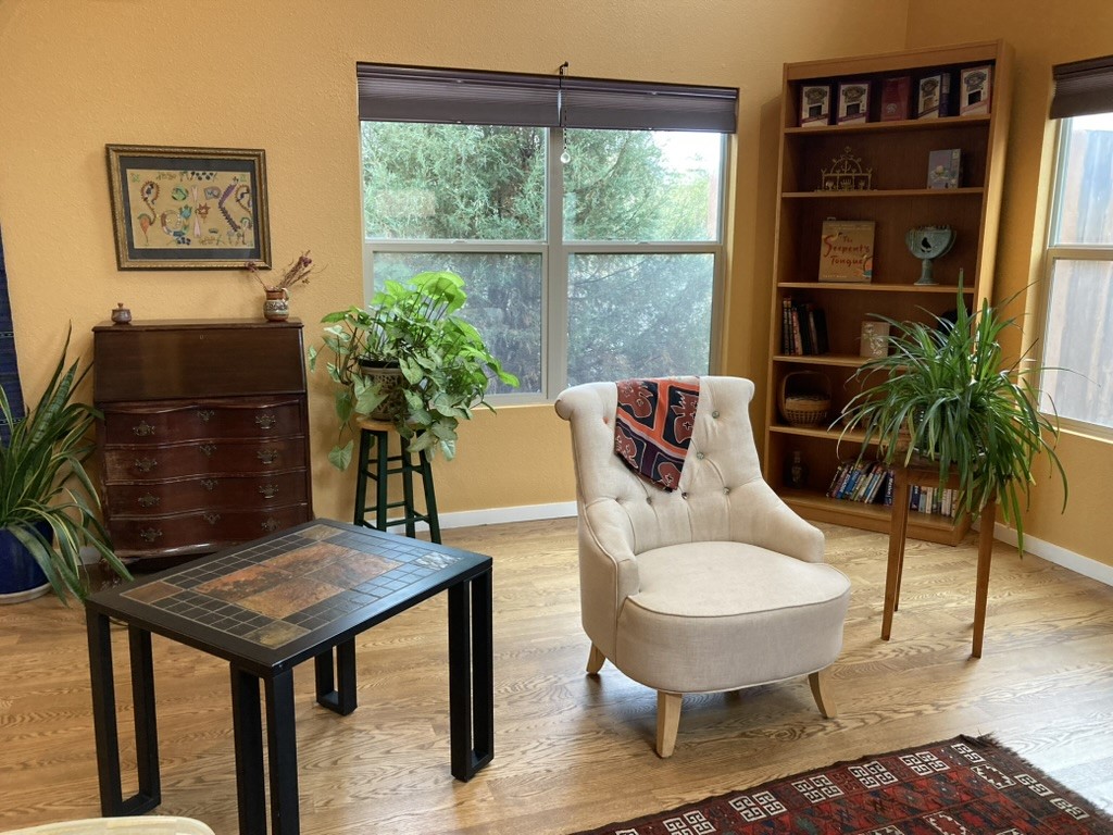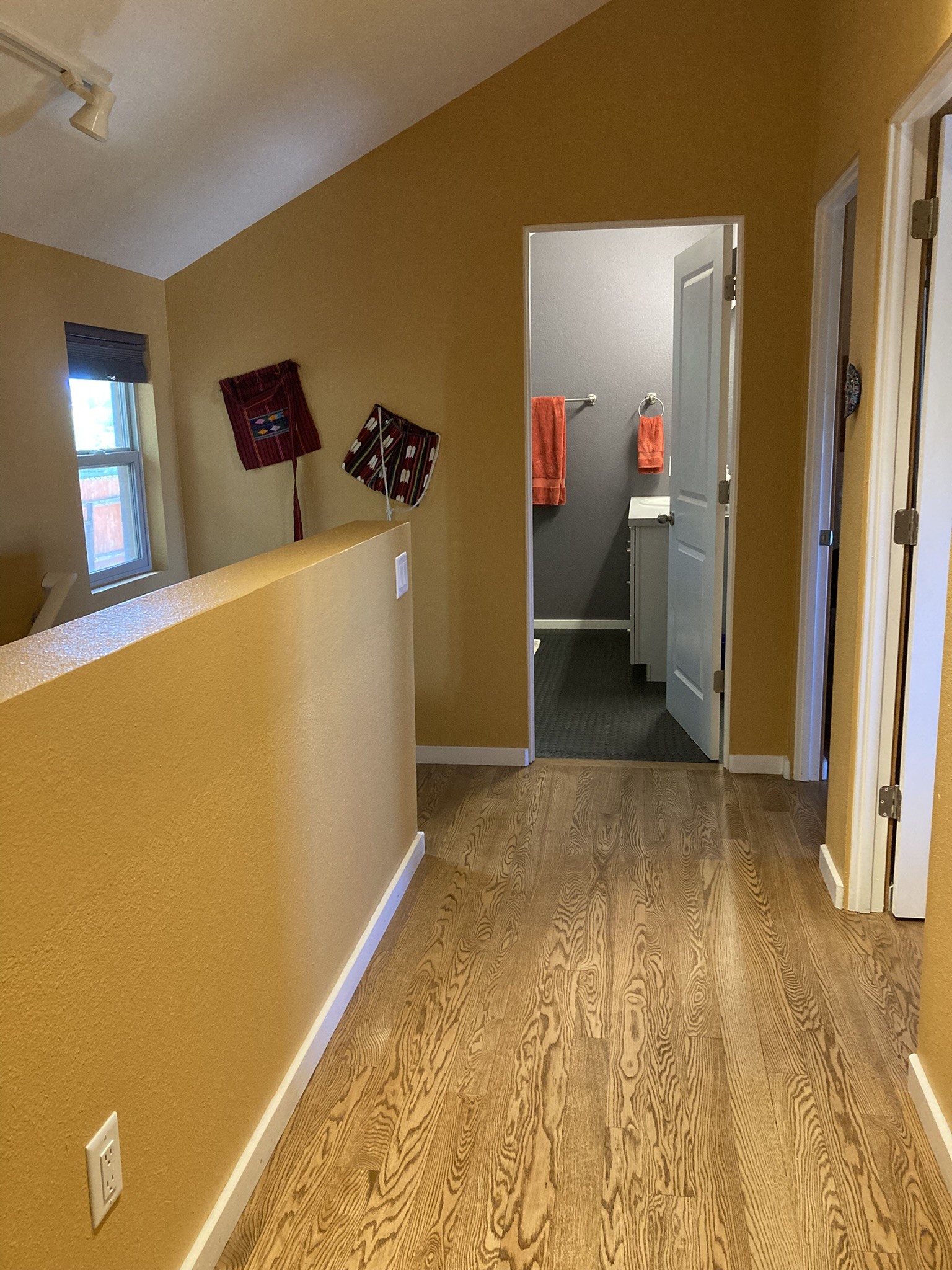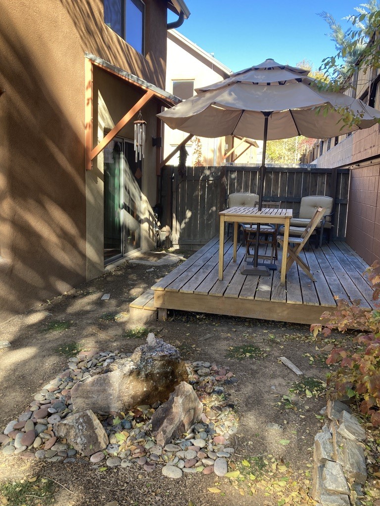 Discover an exceptional blend of comfort, style, and location at this beautifully upgraded 4 bed, 2 bath residence in River Trail Lofts. With direct access to the Santa Fe River Trail from your front door, this lightly used 1,877+/- sq ft home offers bright, inviting living spaces and a thoughtful two-story layout. Interior features include radiant heat, real red oak flooring, high and vaulted ceilings, deep closets, upgraded kitchen appliances, ceiling fans, and top down bottom up cellular blinds throughout. The kitchen and baths feature padded gym flooring for added comfort, with tile in the laundry room. The private backyard has been transformed into a serene outdoor retreat with a custom hardwood deck, fountain, custom storage shed, flower beds, new ground coverings, shrubs, and automated irrigation. It feels like a true extension of the living space and works well for quiet enjoyment or outdoor dining. Ample parking adds to the convenience. River Trail Lofts is tucked below Alameda with no through street, offering a peaceful setting with minimal traffic while still being minutes from downtown, the Railyard, shopping, and the airport.