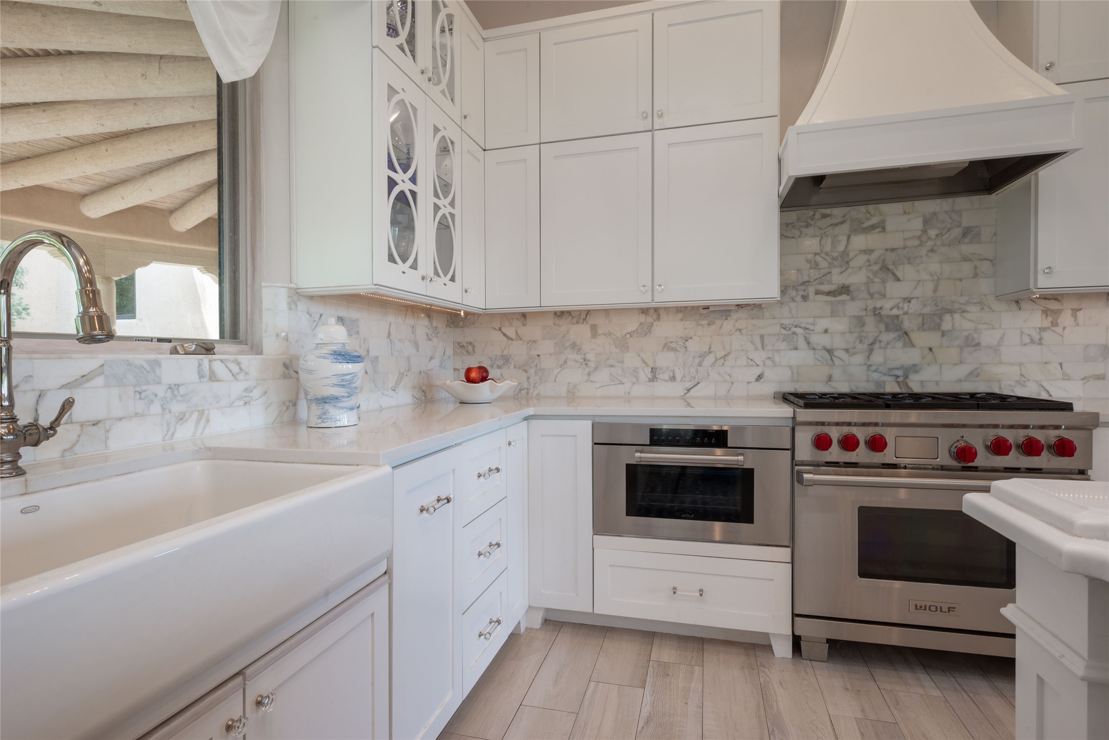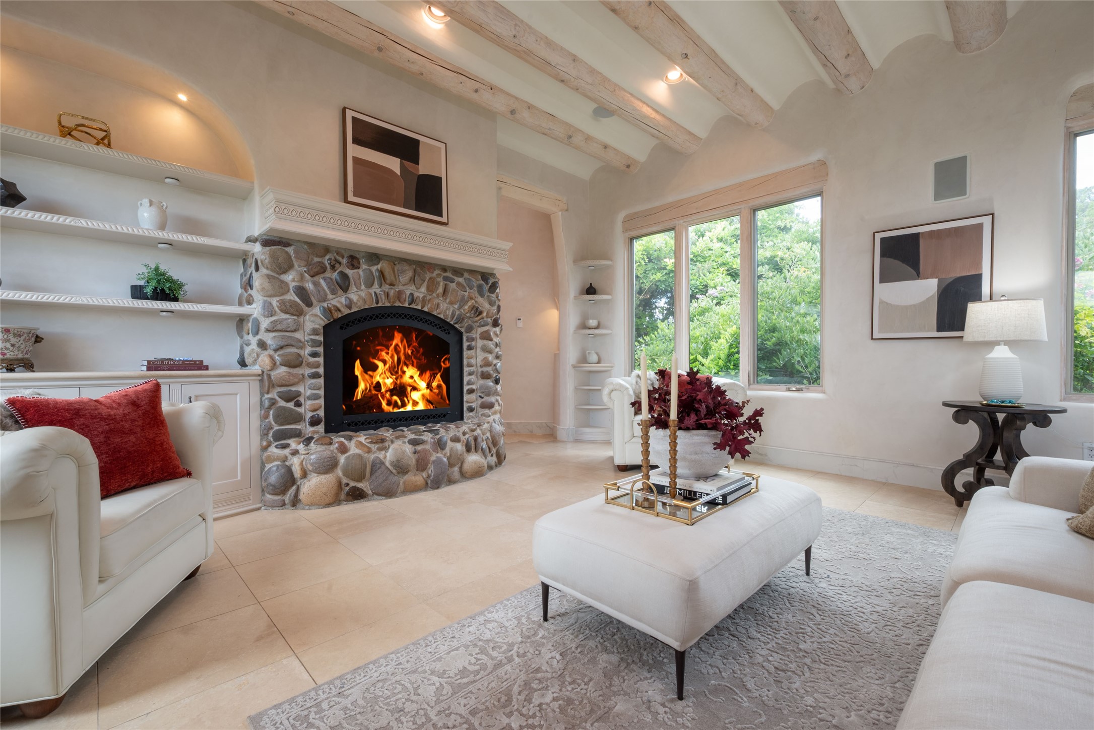 Grand Hacienda Winner and the unrivaled Belle of Tano Road redefines the essence of luxury living. Nestled behind exquisite handcrafted wrought iron gates, you are transported to a serene desert oasis, embraced by the splendor of nature, offering unparalleled privacy and sanctuary from the world. As you enter through handcrafted mahogany and wrought iron doors, the soaring ceilings and diamond plaster walls create an atmosphere of grandeur, while the Italian porcelain floors reflect a commitment to the highest standards of luxury and craftsmanship. Every detail has been meticulously curated for you. The great room, with its endless windows, invites you to bask in the breathtaking views of the sweeping mountains and the enchanting cityscape below, perfectly positioned above the exclusive enclave of Santa Fe. The sprawling estate houses two exquisite primary suites, each featuring spa-like bathrooms with soaking tubs, emperor showers, and ample space to have a powder room lounge, a meditation space, or a fitness area. Each of the four bedrooms is its own sanctuary, complete with fireplace and en-suite facilities, ensuring every guest feels like royalty and that their comfort and privacy are paramount. The gourmet kitchen is a culinary dream featuring custom cabinetry, Wolf range with double ovens and a warming drawer, Sub-Zero refrigerator, and a massive island seamlessly connecting to the outdoor cooking and dining spaces for effortless entertaining. Expansive grounds, nearly three lush acres, adorned with manicured lawns, vibrant rose gardens, and fruit trees, offer an idyllic setting for outdoor gatherings. These luxurious spaces provide not just comfort, but a lifestyle of sophistication. Immaculately maintained and thoughtfully expanded, this sprawling 6,700sq.ft estate is a testament to refined living. This is more than just a home - it is a lifestyle drenched in luxury and elegance. Design that speaks to the most discerning tastes and coveted desires. *Video*