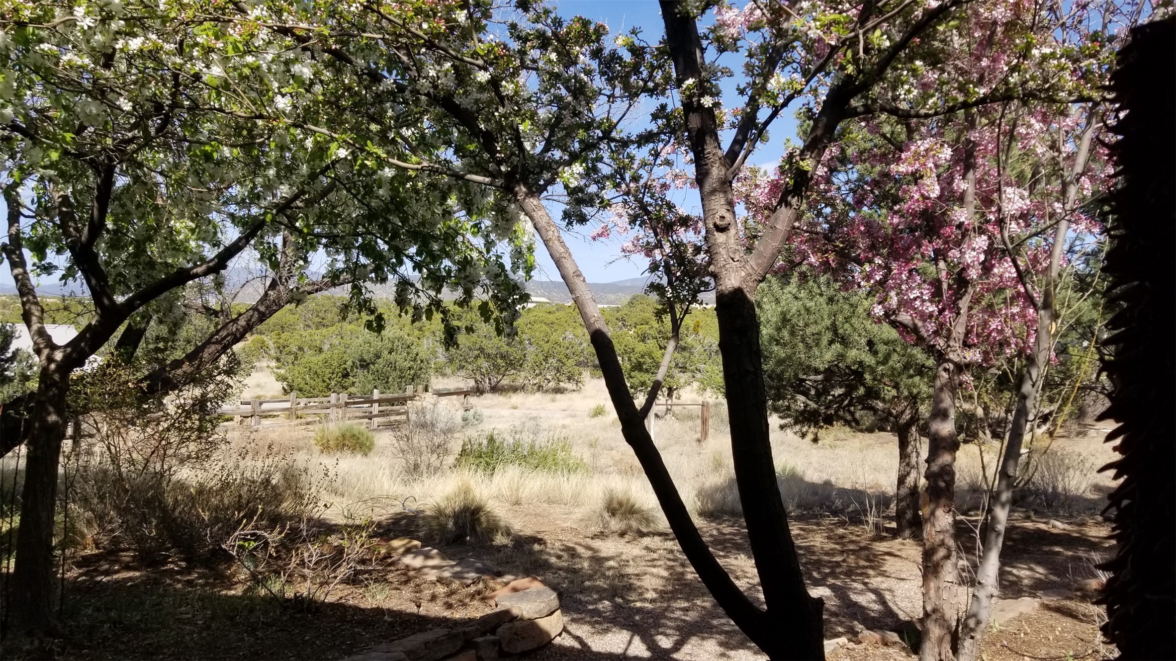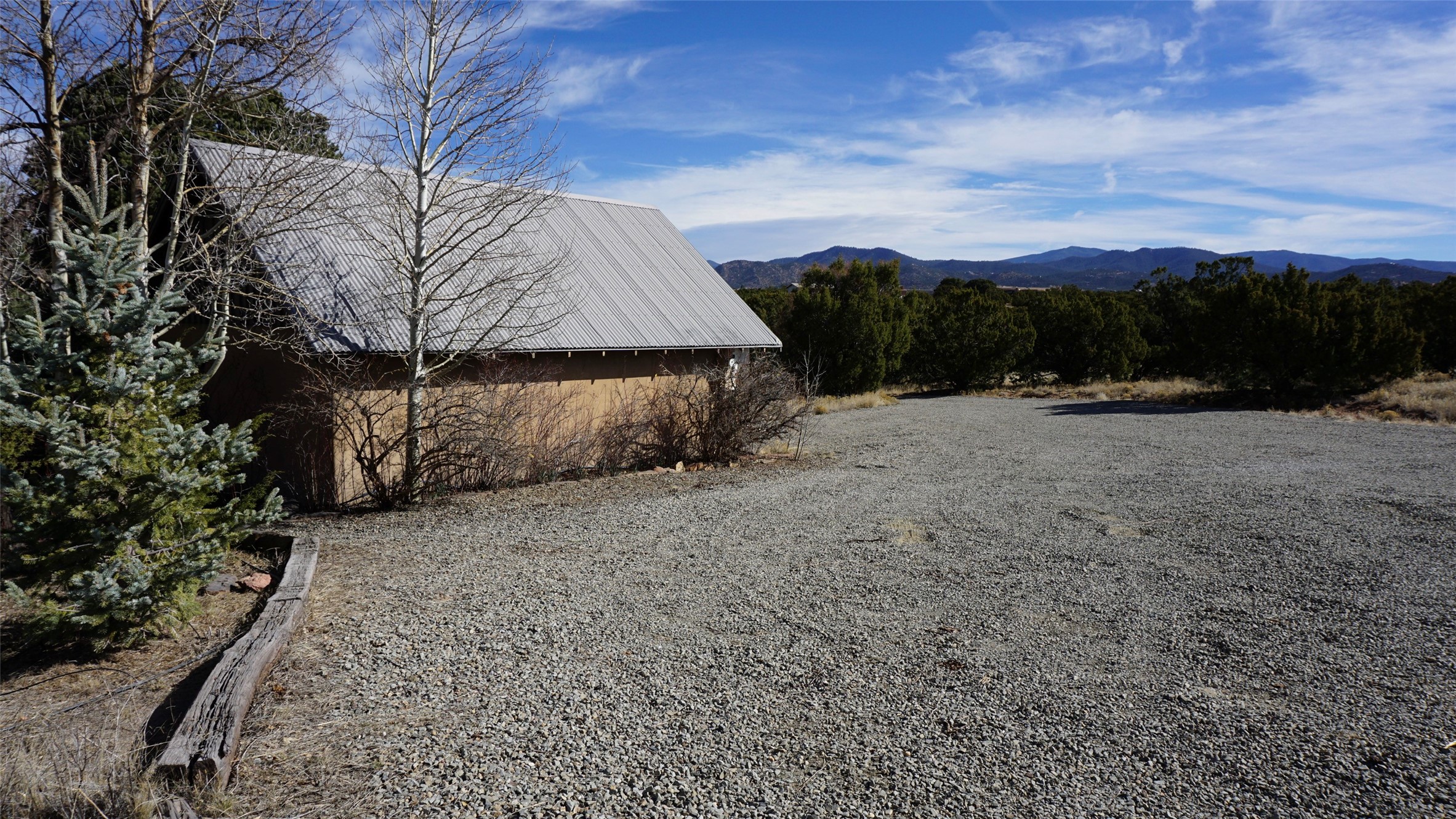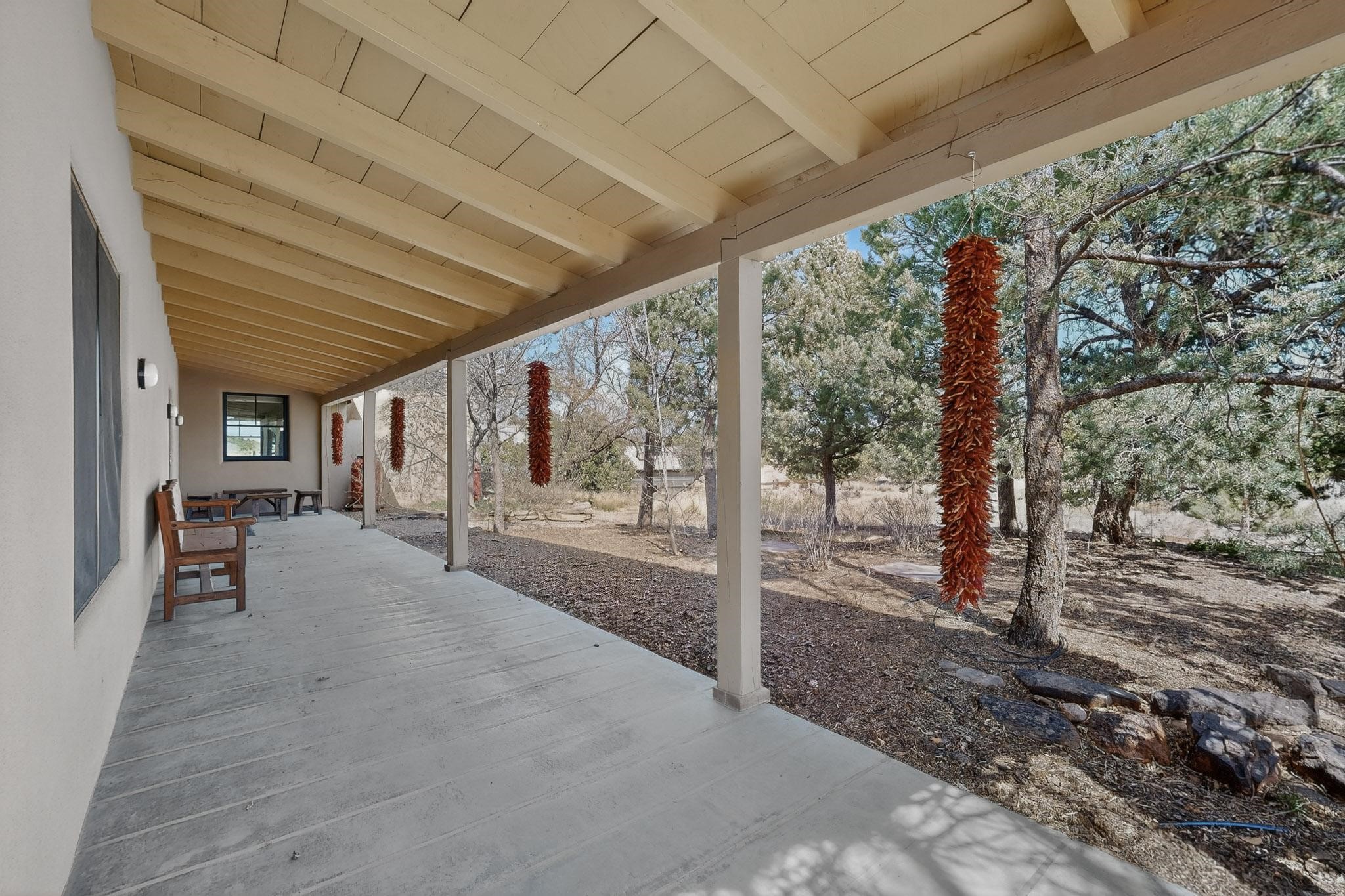 Private country retreat, easy drive to town, a find. This Northern New Mexico sweetheart house on exquisite land has mountain views, a well-kept open barn and corrals and pens. No horses? Park your RV securely in the spacious newly sided barn with heavy-duty remote-operated metal doors or set it up for wonderfully lit workshop space. Got dogs? Lots of room to run in extensive fenced areas. Love to hike? Great adjacent trails - including the Rail Trail and Arroyo Hondo Open Space trails, no driving necessary. Dining out? Nearby options and just a 15-minute hop to all downtown Santa Fe offers. Love the cathedral ceiling with beams (yes, living room), remodeled bathrooms with custom tiles and sinks, covered porches front-and-back. Fresh paint throughout, custom recessed lighting, new on-demand water heater, mini-splits, upgraded driveway and irrigation systems are just some of the improvements made by current owners that you will appreciate. This property is country living with the flare of style and oozes potential for the existing structures. See for yourself and fall in love.