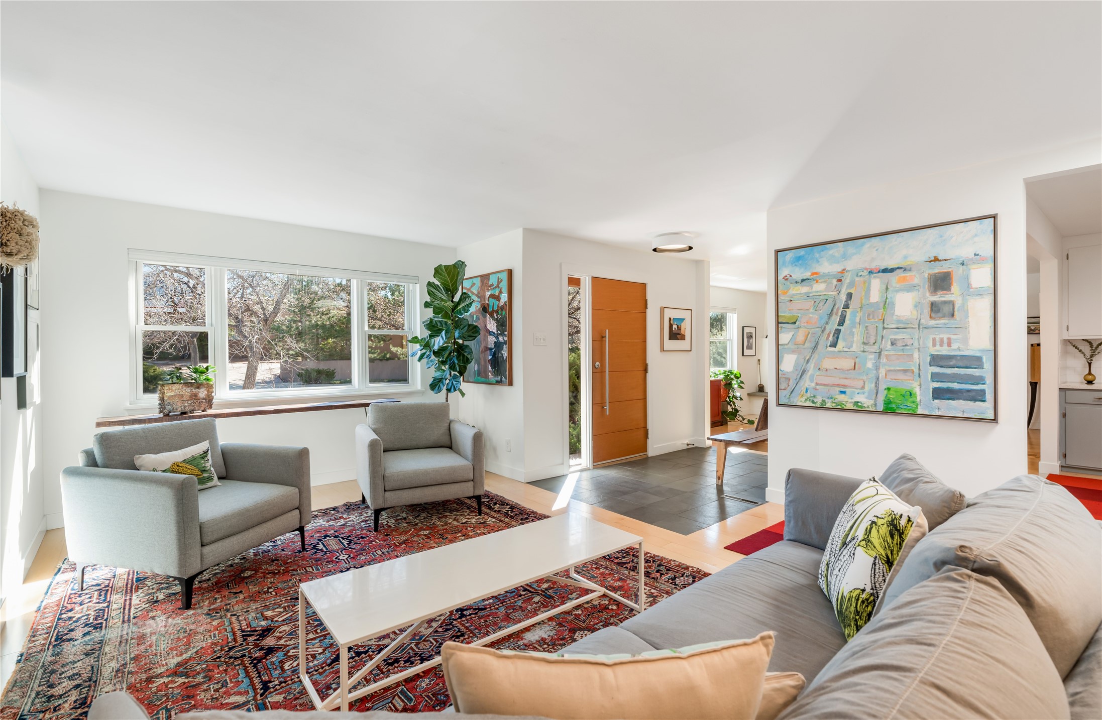 Beautifully remodeled home with conscientious design choices, in the desirable DEVARGAS HEIGHTS neighborhood, just a short stroll to Museum Hill. Located within the sought-after WOOD GORMLEY SCHOOL DISTRICT on a quiet street, this property offers convenient single-level living plus a versatile lower level--perfect for guests, a home office, additional thoughtfully renovated living space for family, recreation or converting into a rental unit. This home has been remodeled with numerous recent upgrades, including ROOF, HEATING and COOLING, SEWER line, STUCCO, WINDOWS, and SOLAR system. Interior improvements feature RENOVATED BATHROOMS and UPDATED KITCHEN, FLOORING, PAINT, BUILT IN ORGANIZATION SYSTEMS and many more. The exterior gardens are perfect for entertaining and have been enhanced with professional landscaping, lighting, a drip irrigation system, and a new custom storage shed. A great home in an ideal location with walking trails nearby, only a five minute drive to the plaza and easy access to the foothills trails, I-25, shopping and Christus St. Vincent Hospital. 4 BEDROOMS 3 BATHROOMS 2 CAR GARAGE