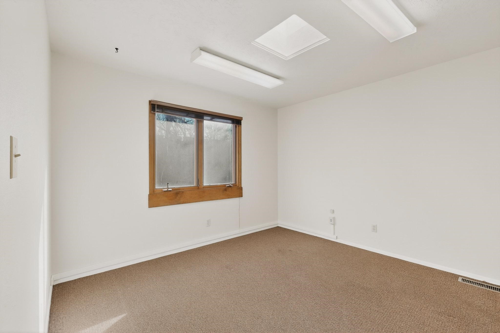 Excellent opportunity to purchase flexible office space in St. Francis Professional Center. Well located in the complex with great visibility, the space had been configured as two separate suites, which provided excellent flexibility. There are a total of 7 private offices, 2 bathrooms, 1 kitchenette, 2 large storage rooms, and 2 waiting areas. Great layout for wellness practitioners or professional offices (legal, accounting, etc). The section that was used as the larger suite has offices on two floors, a kitchenette, bathroom, waiting area and a very large multi-use space for storage, open concept workspace etc.