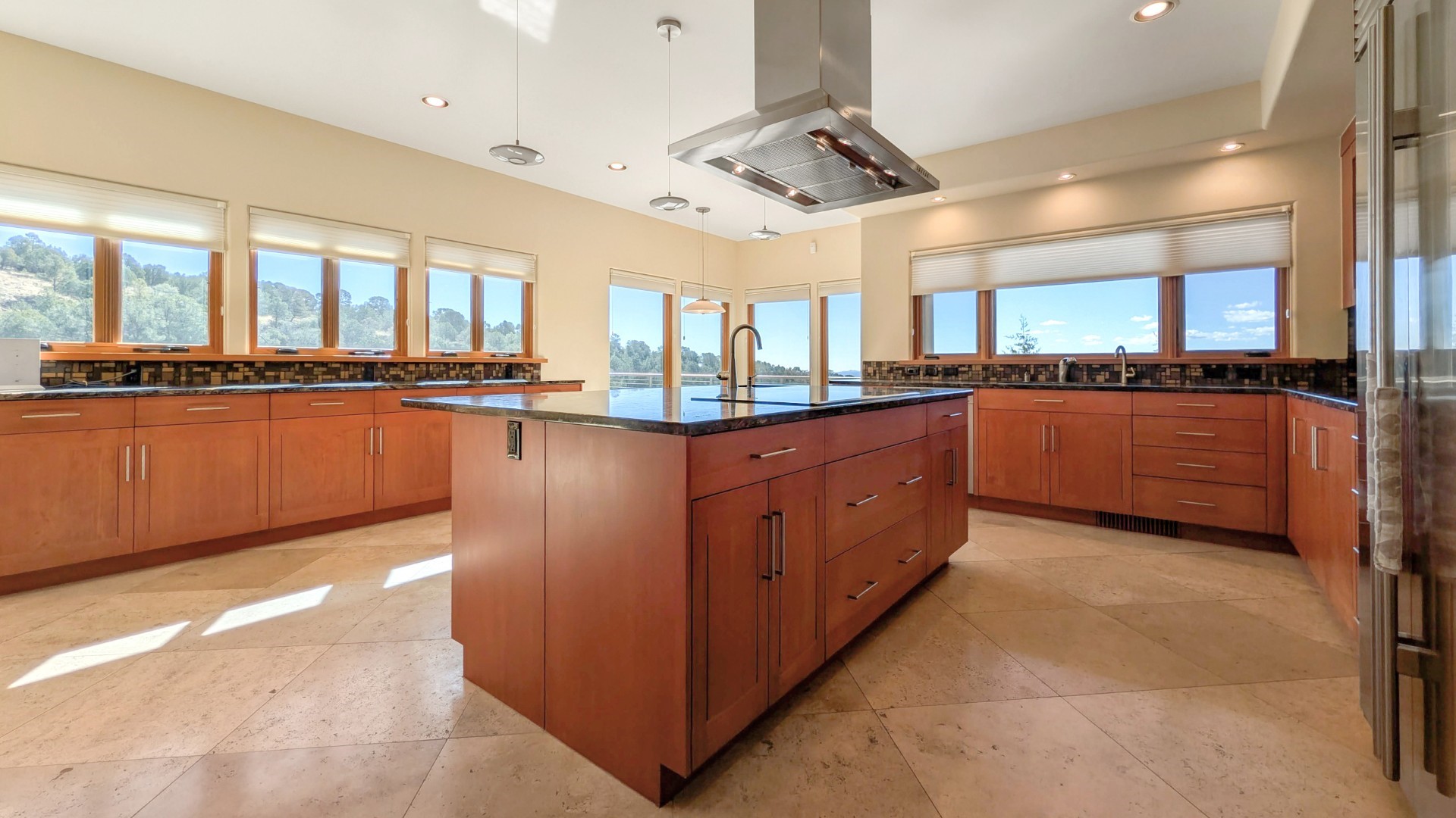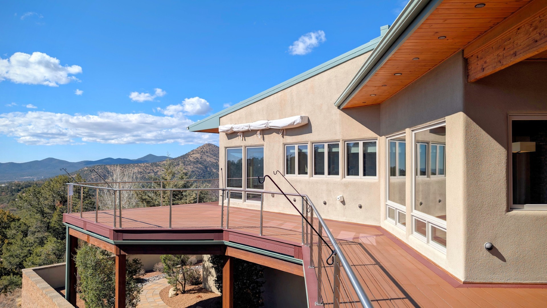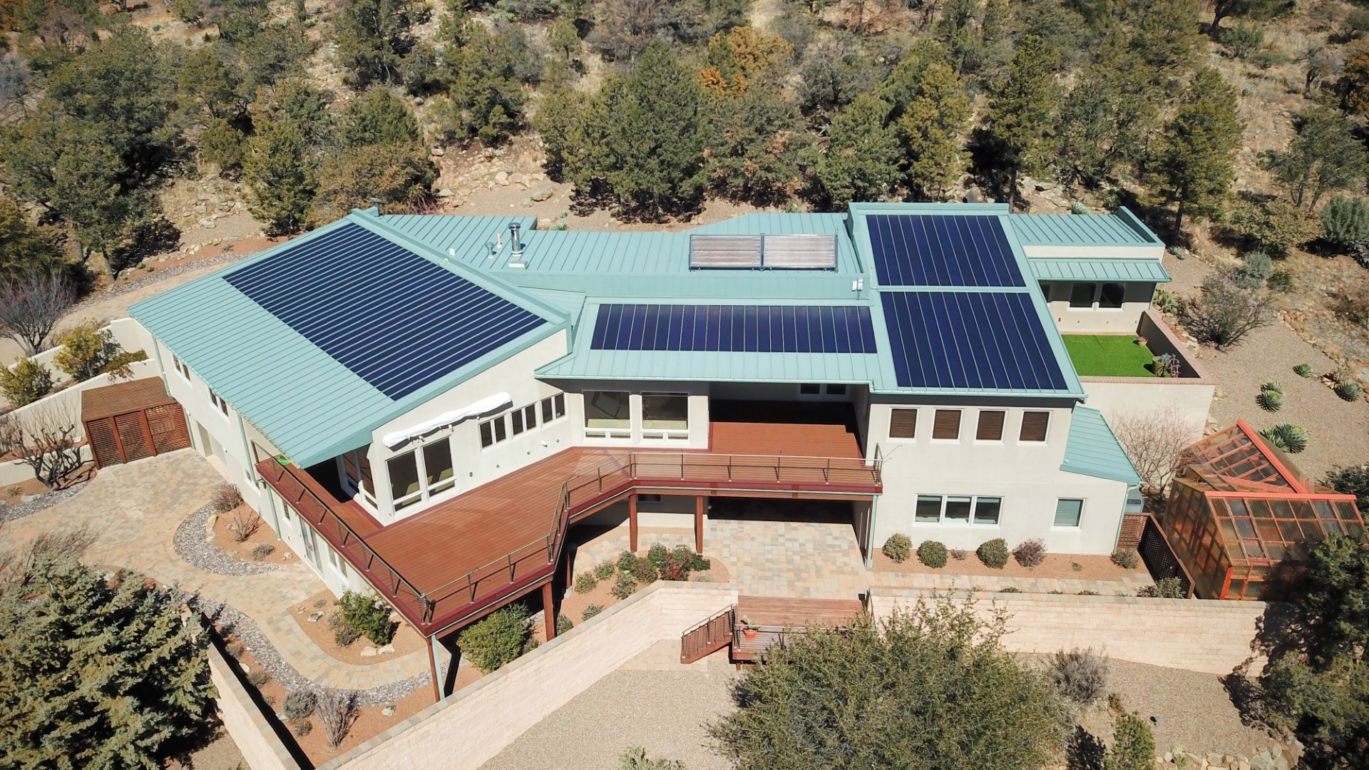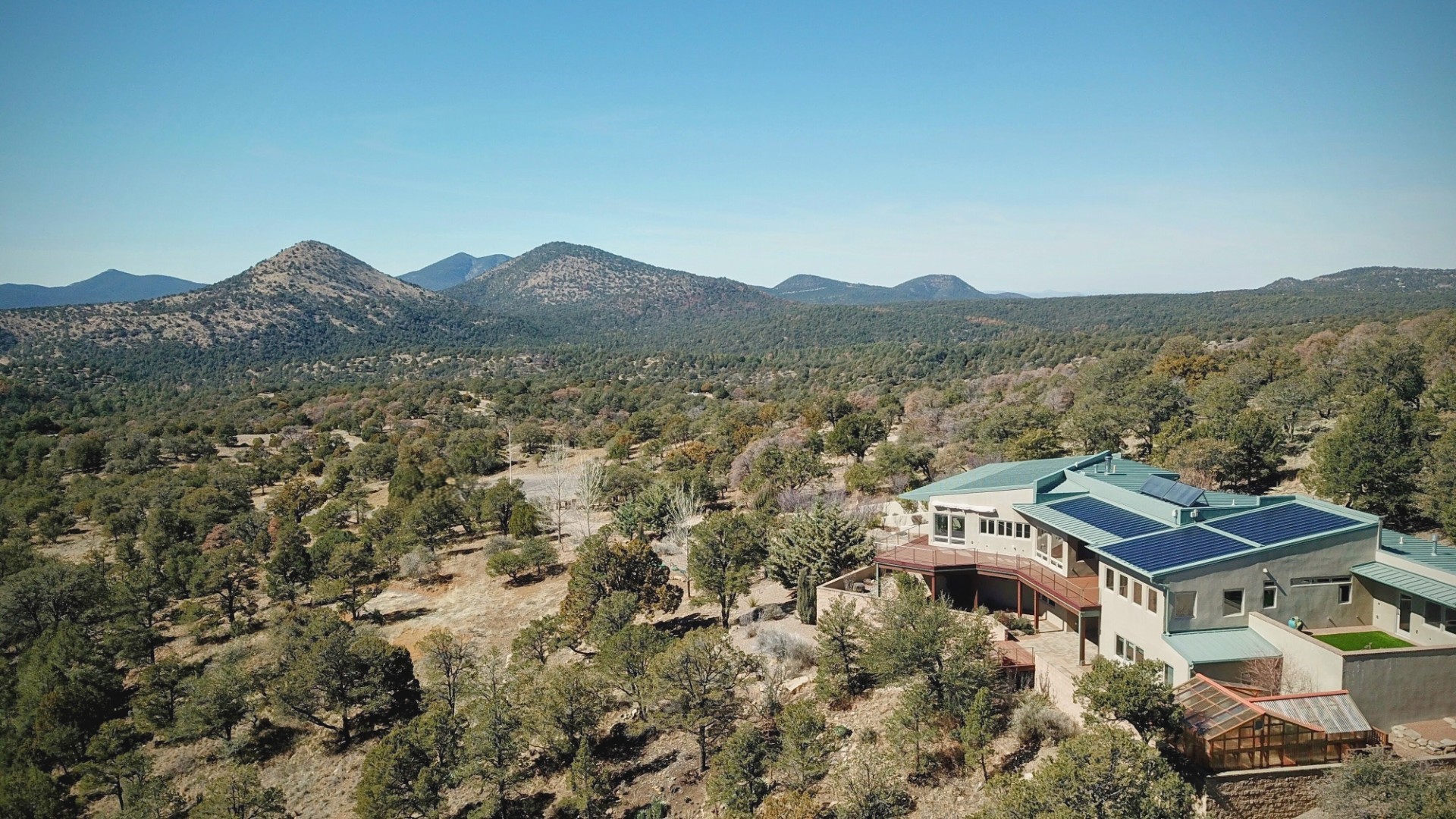 This luxury home will exceed your every expectation; the main level features single floor living with a spacious living room (the earth tone travertine stone provides a timeless elegance), dining room, kitchen, powder room, laundry, office (with two work stations) and primary suite boasting two private baths with dressing area and each with walk in closets, gas fireplace, and a private patio. The lower level (great southern exposure and natural light) is serviced by a hotel-quality elevator. The lower level has a sauna, fitness center, woodworking shop/studio, two separate guest suites with private bathrooms and ample storage. There are several decks on both levels to enjoy the stunning mountain views. The 9.5 kW solar PV system will handle all your electric, heating, and cooling needs. Beautiful mountain views, adjacent to green space, quiet and secluded and only a few miles from town.