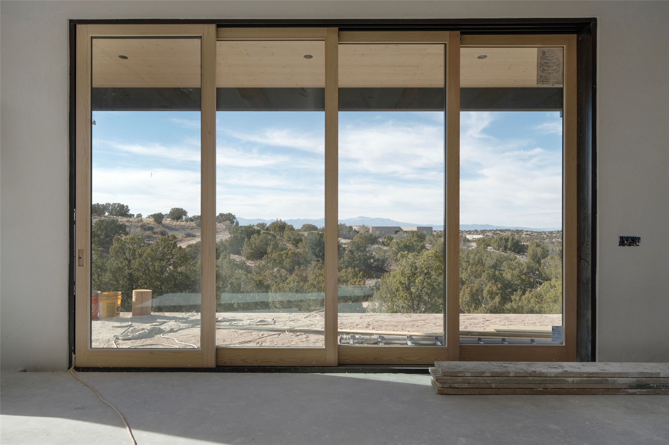 This stunning, soon to be completed, 3-bedroom 3.5 bath single-level Contemporary home by award-winning Montoya Custom Builders is located in the exclusive Las Cordilleras community, offering sweeping views of the Jemez Mountains. Set on 2.9+ acres, the home is elevated to maximize panoramic vistas and provide an ideal balance of privacy and modern luxury. The open-concept living area is flooded with natural light and features warm wood flooring, exposed beams, and smooth plaster walls that blend contemporary style with timeless charm. The chef's kitchen will be appointed with top-tier Wolf and Sub-Zero appliances, perfect for culinary creations. Featuring 3 spacious bedrooms, each with its own en-suite bath, the home is designed for both comfort and privacy. The primary suite is a true sanctuary, complete with a gas fireplace insert, a soaking tub with mountain views, and radiant floor heating. The thoughtfully designed floor plan separates the owner's suite from the guest bedrooms, ensuring a peaceful, private retreat. The home is equipped with radiant floor heating, forced air cooling, and a gas fireplace inserts to ensure year-round comfort. An enclosed courtyard provides a peaceful outdoor escape, while the elevated positioning of the home offers unmatched vistas. Located just 15 minutes from Santa Fe, this property combines the tranquility of rural living with easy access to city amenities. A new septic system, shared well, and a two-car garage add to the home's convenience and sustainability. This exceptional new build is the perfect blend of modern luxury and natural beauty.