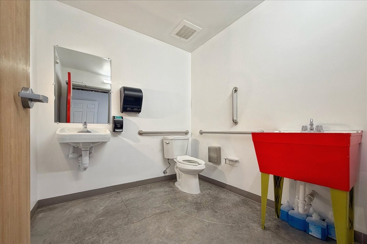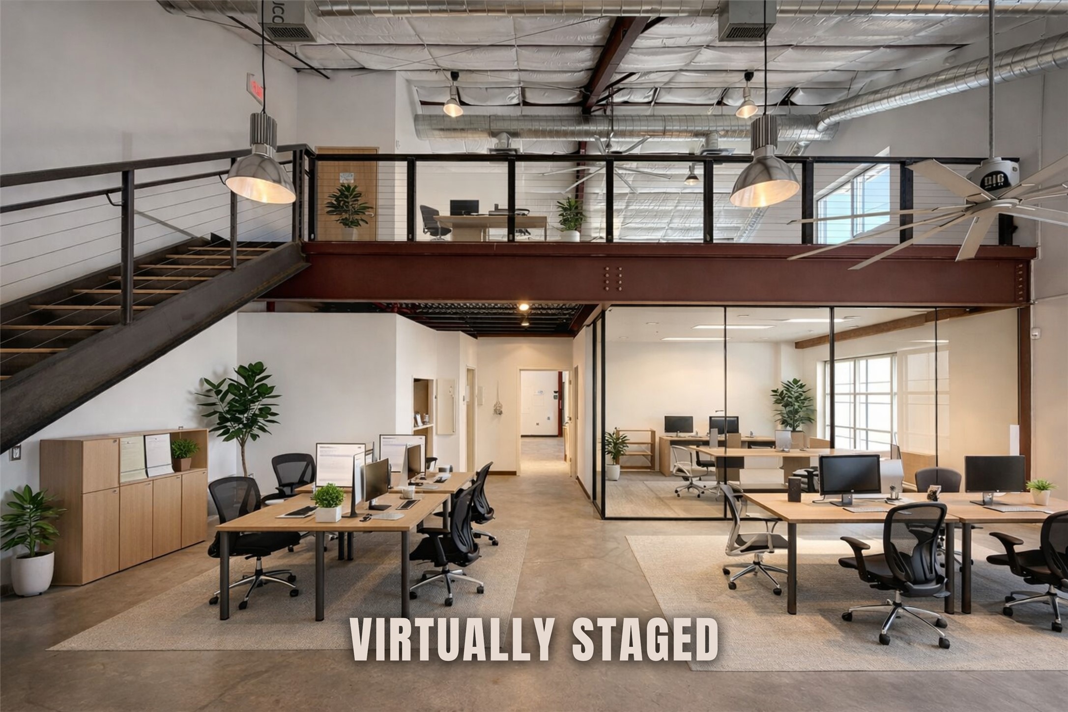Corner unit filled with natural light and full street visibility. This architecturally striking commercial space, zoned I-2, offers flexible potential--think showroom, gallery, fitness studio, caf, or wine bar (subject to zoning). The interior features soaring ceilings with exposed steel, expansive storefront windows, a glass roll-up door, and hard-troweled concrete floors. Two large bathrooms and a reliable heating and cooling system ensure comfort and functionality. Ideal for artists or makers who need space for large-scale installations, it's located on a prominent corner near Second Street Brewery and Meow Wolf--where creativity, visibility, and opportunity meet. If the space feels larger than you need, consider subletting a portion to generate income and offset your mortgage!