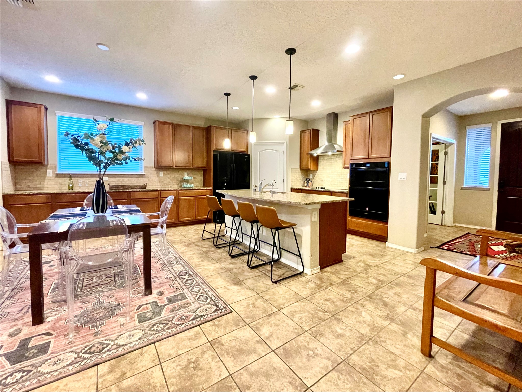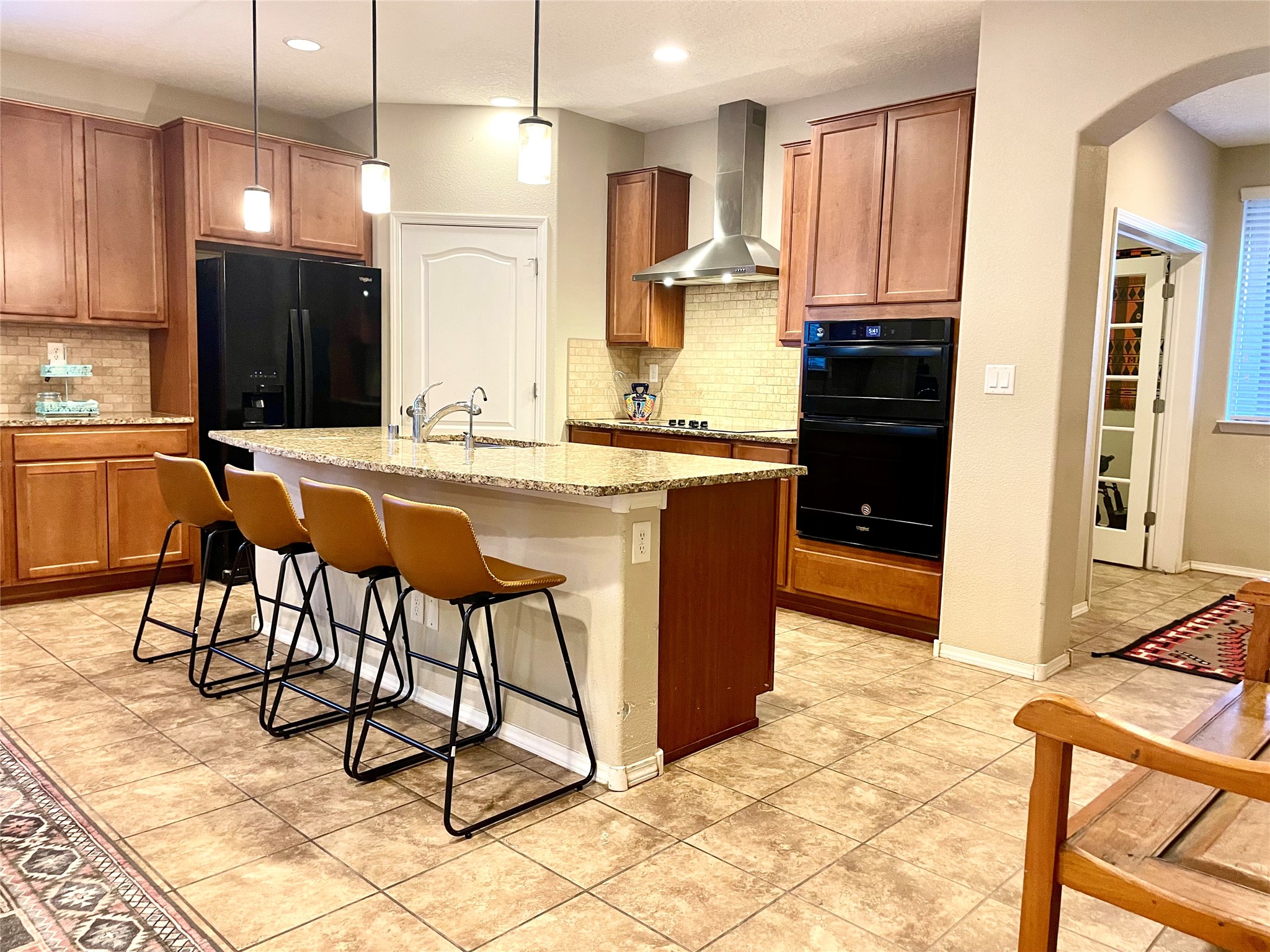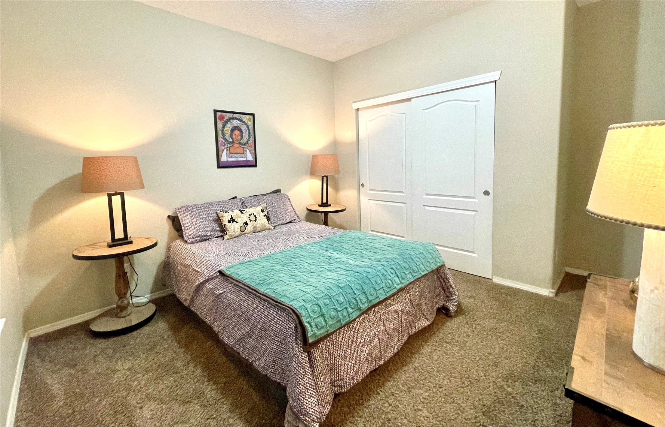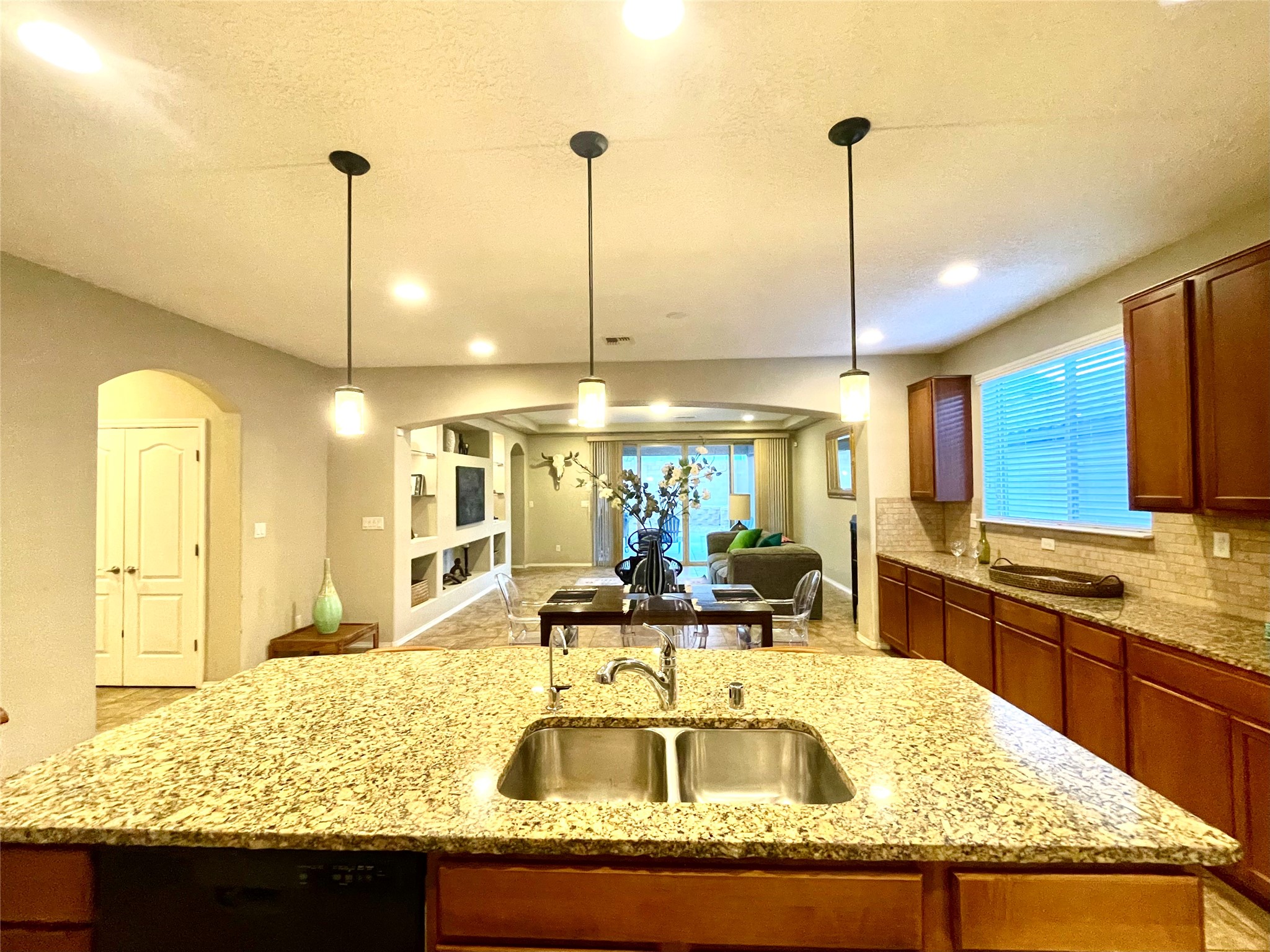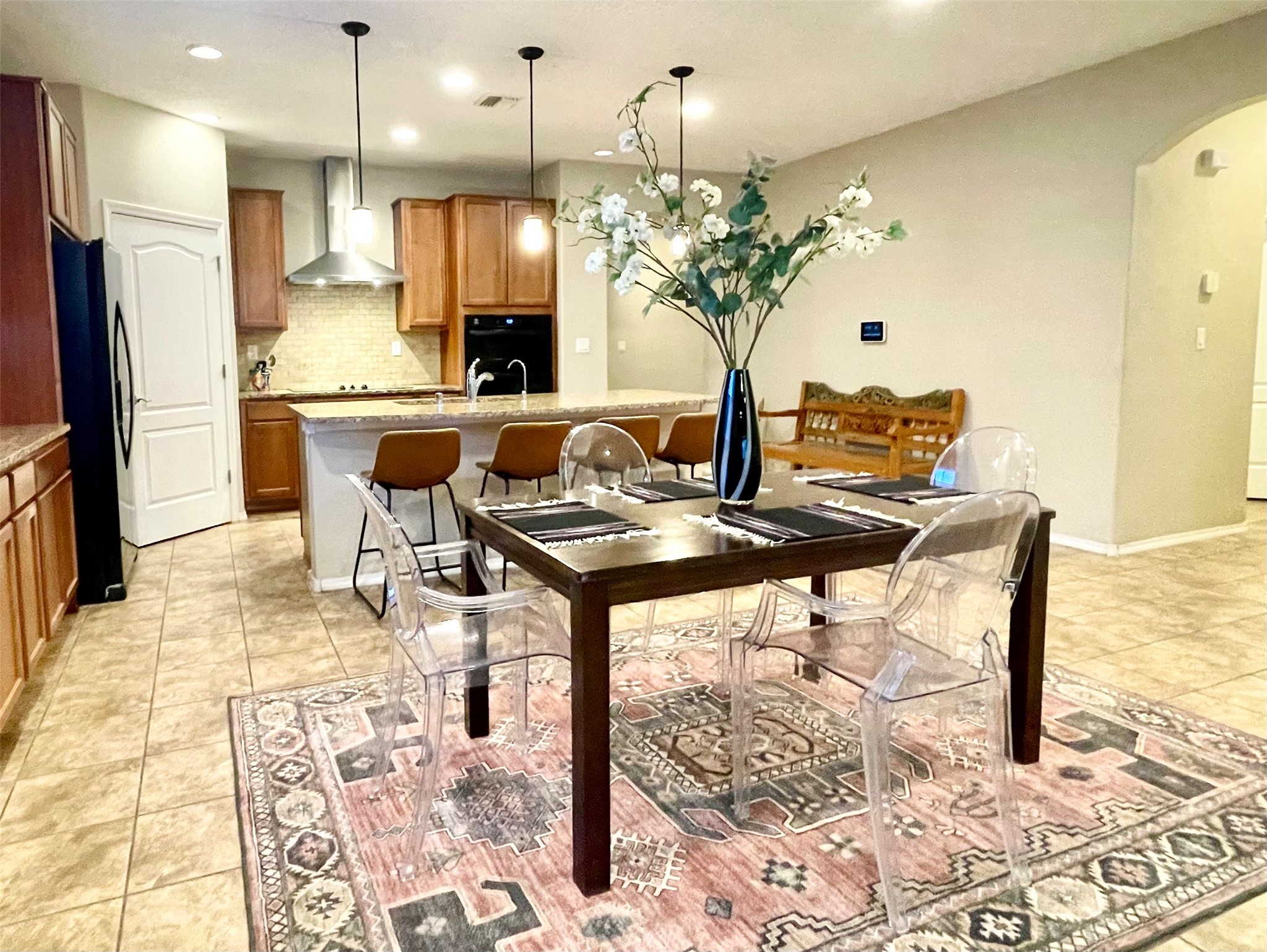 This well appointed single level light filled home in the desirable Lomas Encantadas neighborhood in Rio Rancho is ready to enjoy. Spacious 4 bedrooms, 2 bathrooms, plus den/office, open concept living room, dining room, kitchen, 2 car garage, fenced yard, and large laundry room. Primary suite is located away from the other 3 bedrooms for privacy, and has a large walk in closet and en suite bathroom. Elegance and sophistication abounds with arched doorways, high ceilings, recessed lighting, tray ceilings, French doors, custom wood window blinds, and artistic Norteo mosaic tile floor in the main bedroom suite. The kitchen has a large island with stylish pendant lighting and plenty of seating, as well as a walk in pantry. So many spaces for entertaining! Drip irrigation and xeriscaped yard means you can spend more time barbecuing on the large covered patio. Backyard storage shed for toys, brand new on demand hot water heater, granite counters, reverse osmosis water, ADA compliant throughout with large doorways and no steps at all. Parks, trails, schools and shopping all nearby. Click on video link for tour.