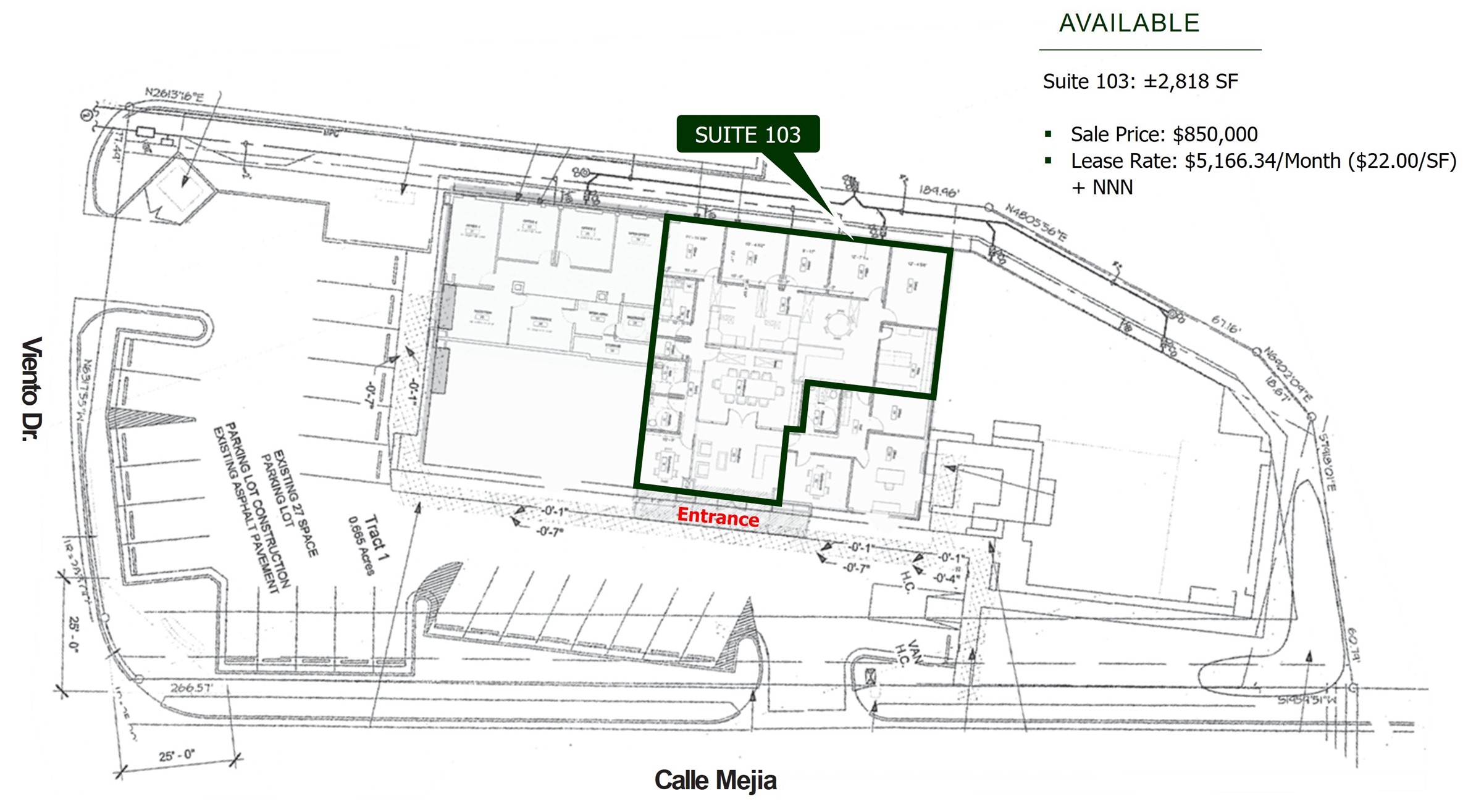 AVAILABLE: Suite 103: 2,818 SF | SALE PRICE: $850,000 | LEASE RATE: $5,166.34/Month ($22.00/SF) + NNN | ZONING: C-1 | Office & Related Commercial | HIGHLIGHTS: Located at 810 Plaza in the north side of Santa Fe - Close to Downtown & DeVargas Center, High quality finishes - Class A Office, High-speed internet capacity, Adequate parking (first come, first serve), Monument signage available, Sound-proof individual offices, Neighboring tenants include Edward Jones, Zia Insurance, Insurance del Norte, LAI Professional Insurance Programs, Shunay Skin